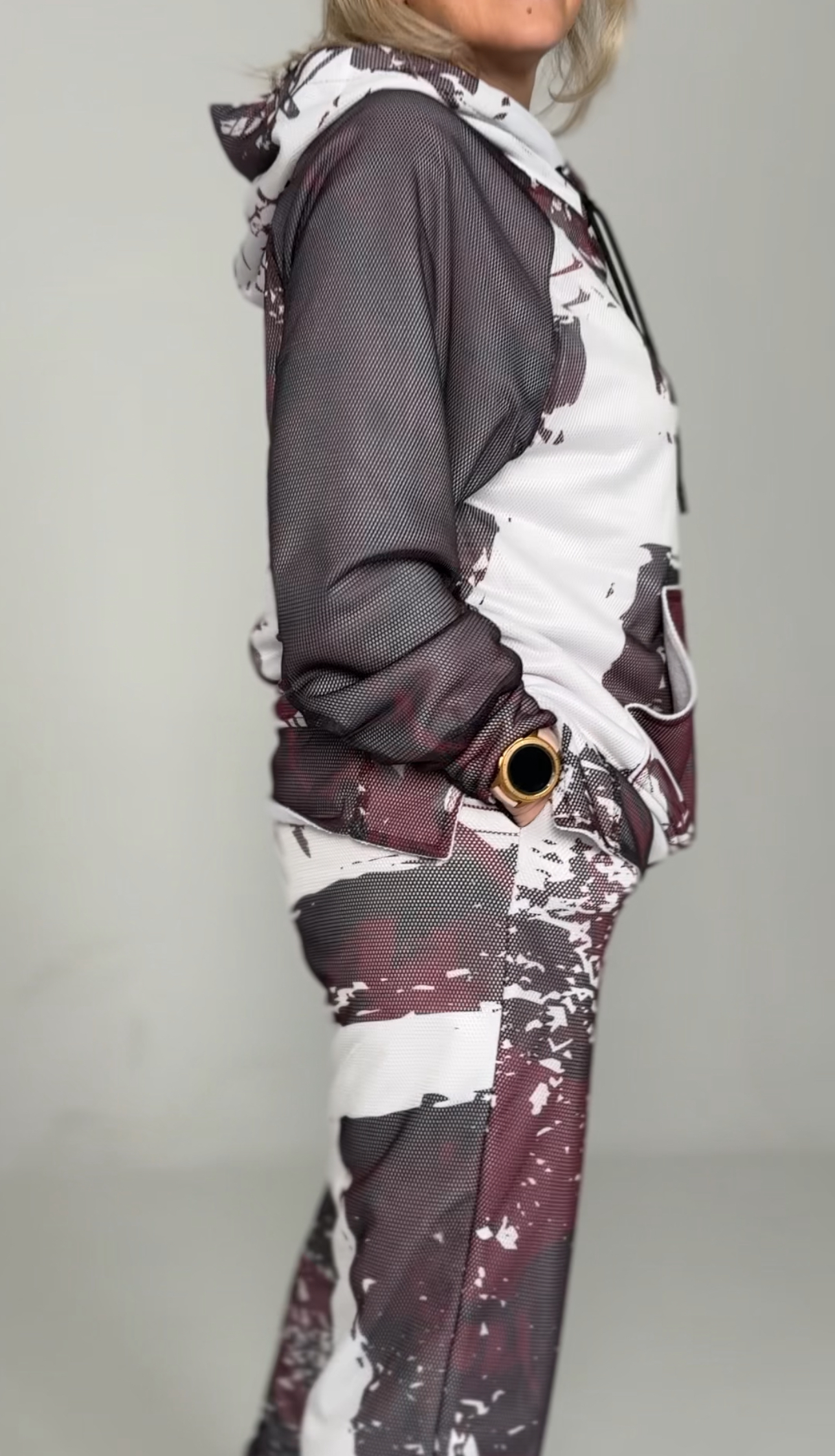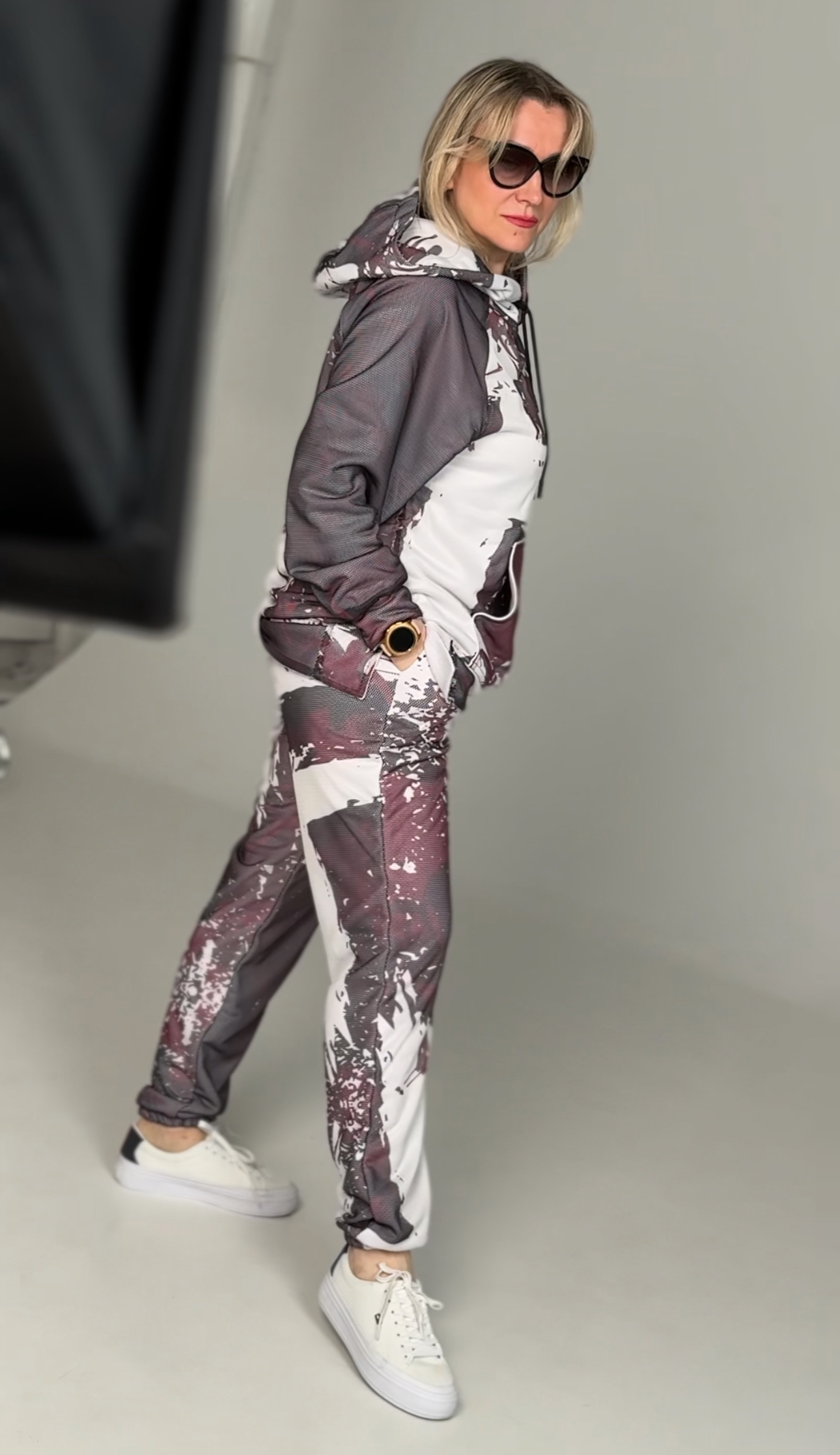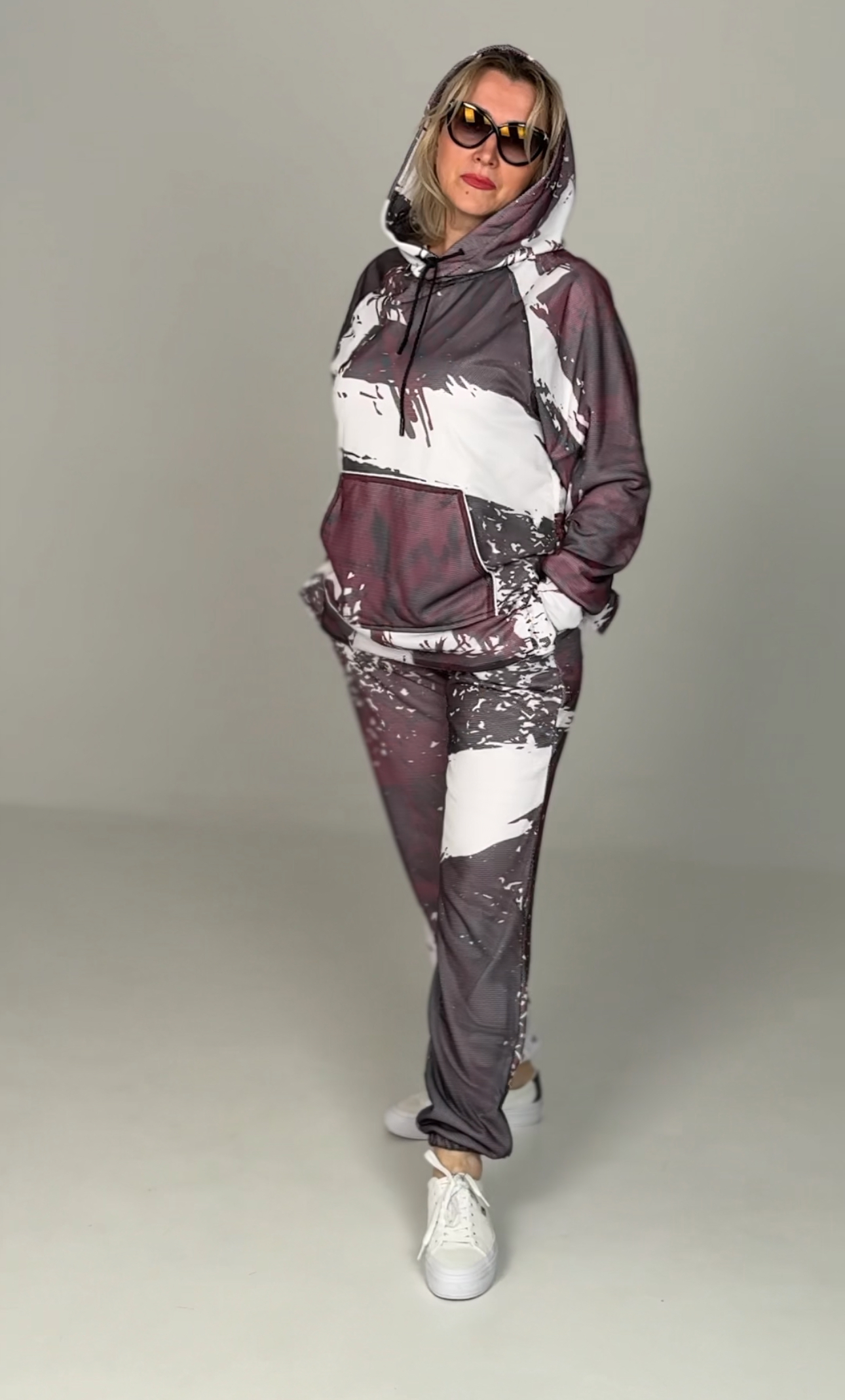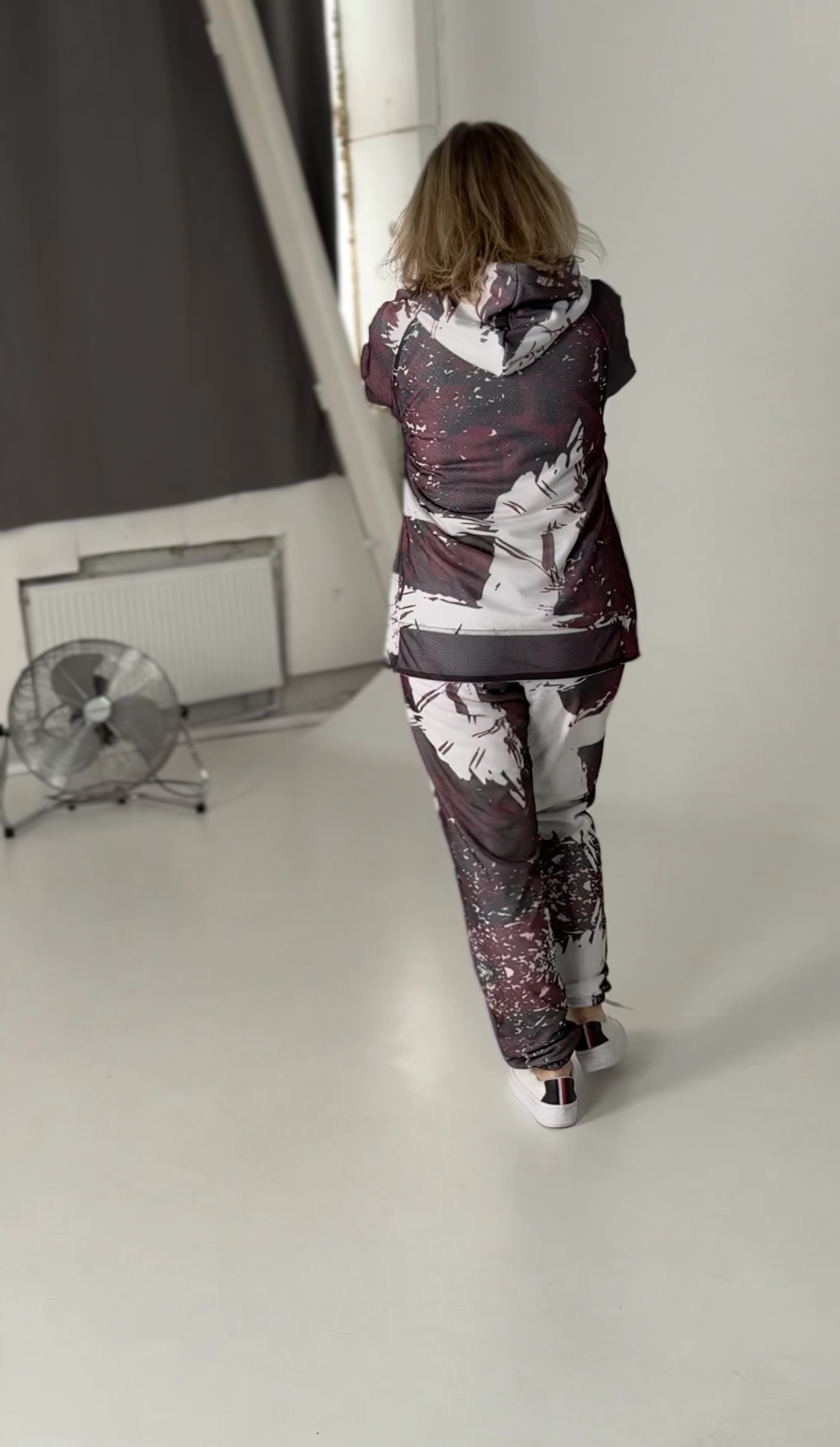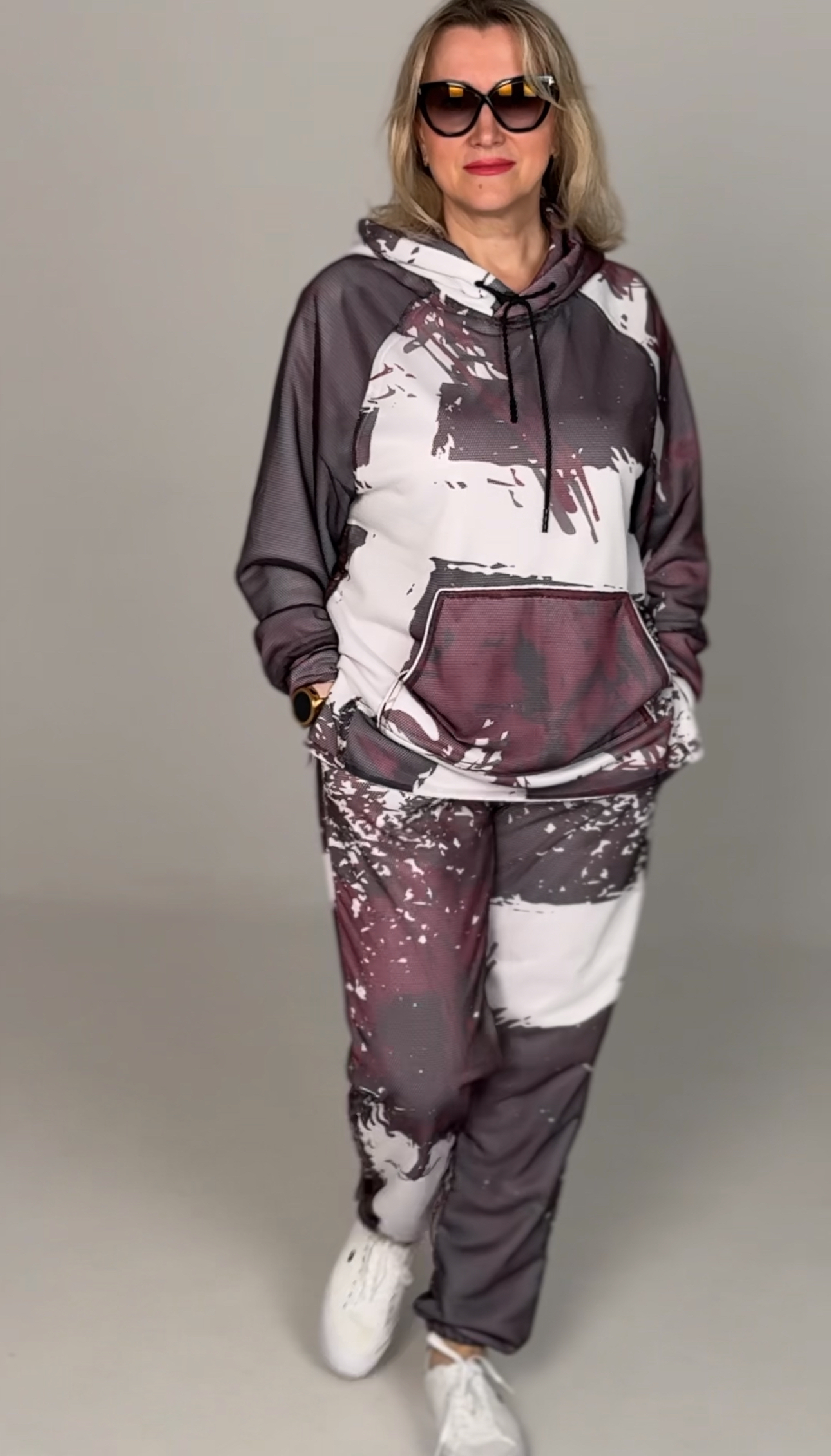 Perhaps you are looking for: cotton suit, natural fabric suit, tracksuit, women’s suit with a hood, suit with author’s print, velor suit, home suit, comfortable clothes, breathable fabric, suit for every day