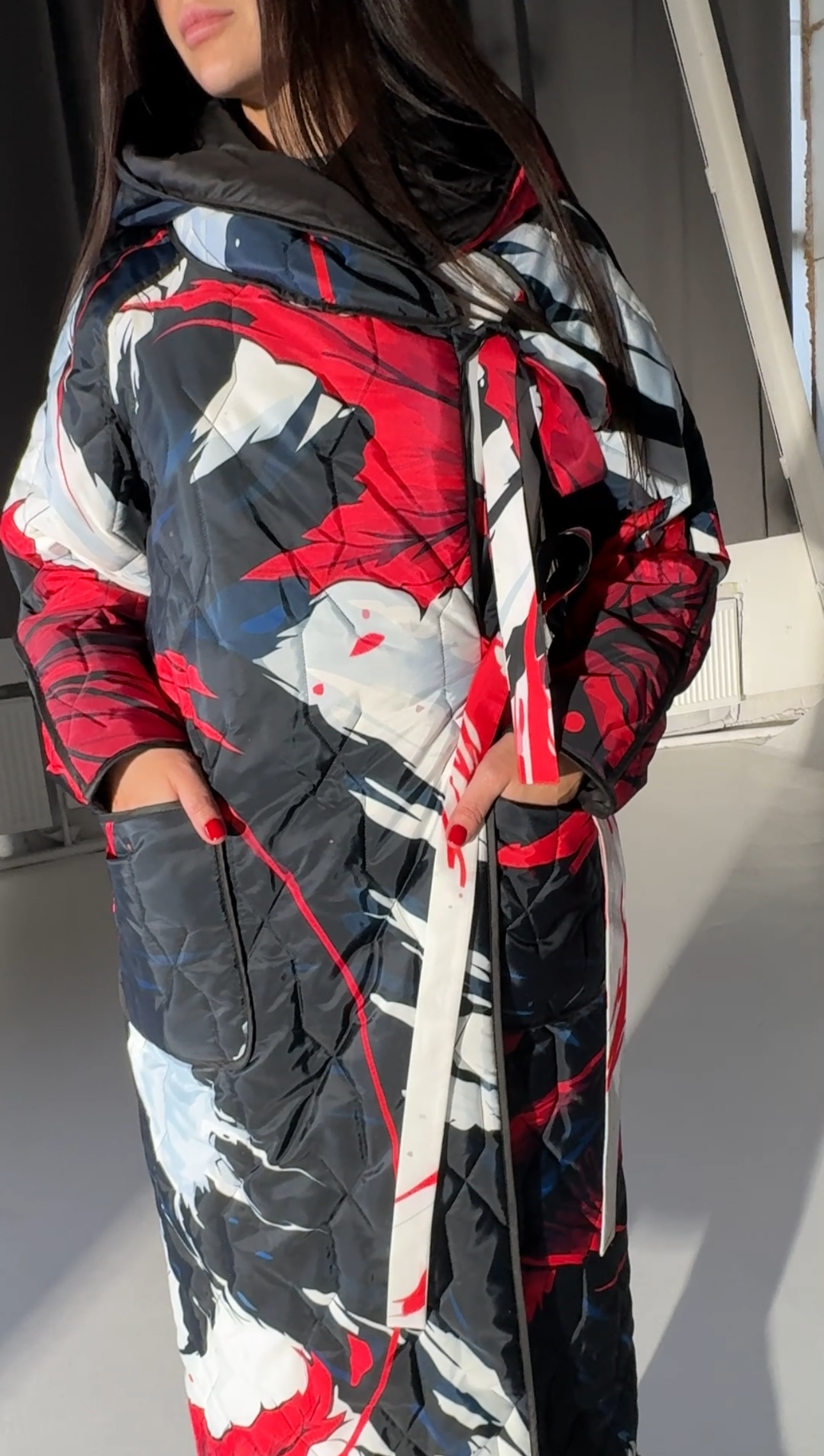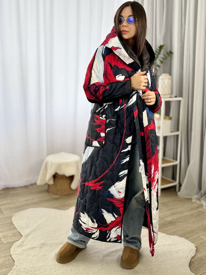 Perhaps you are looking for: double-sided coat, quilted coat, winter coat with a hood, coat with author’s print, insulated coat, women’s coat up to -10, designer coat, raincoat, stylish coat for winter, transformer coat