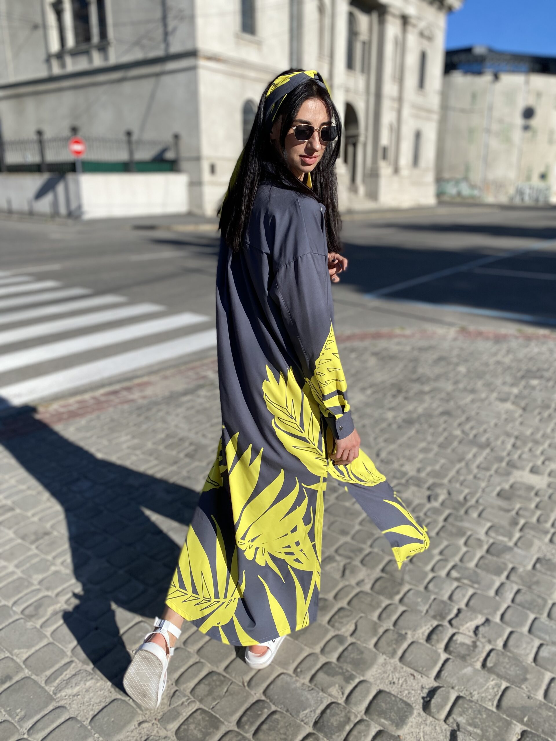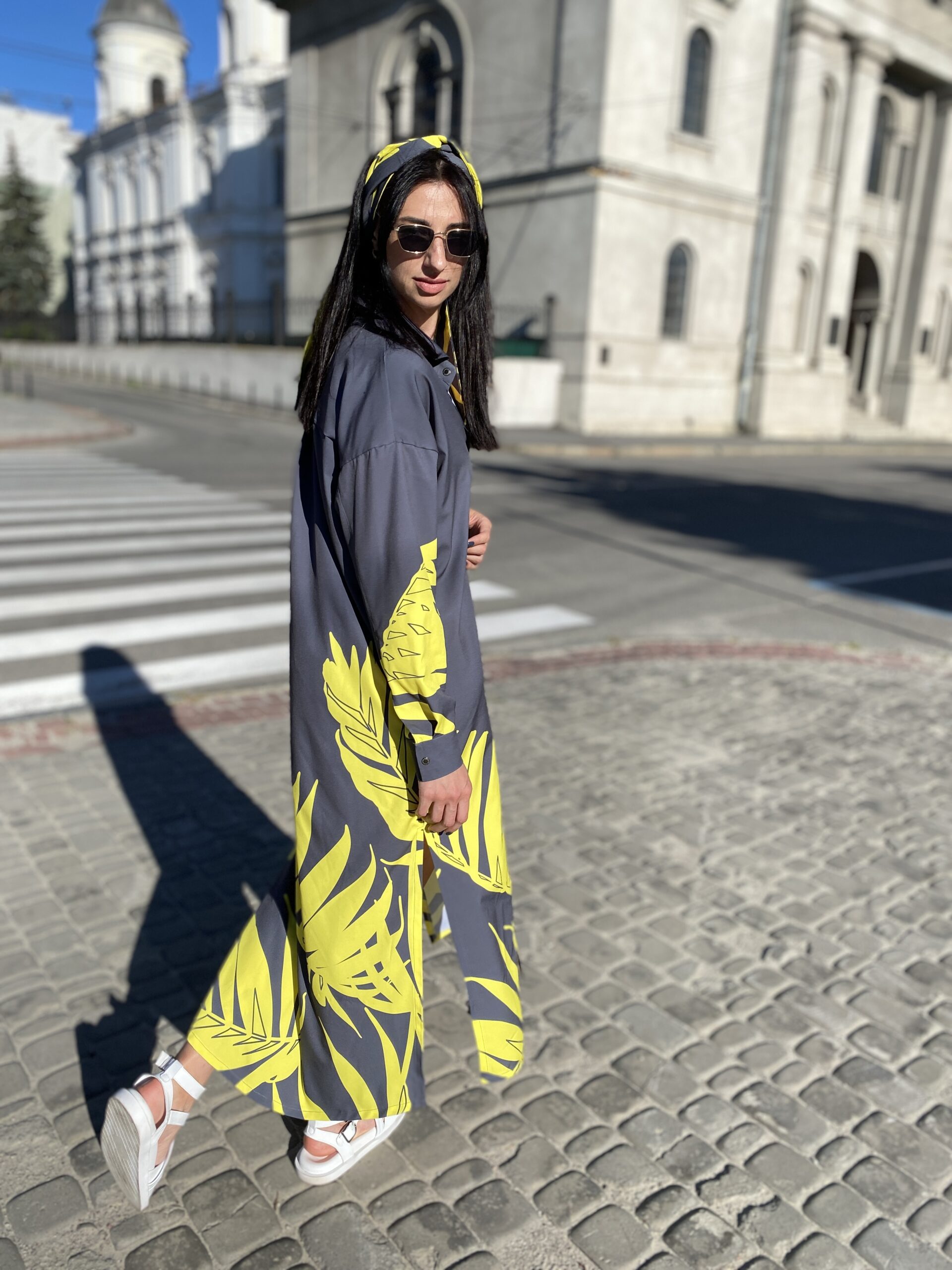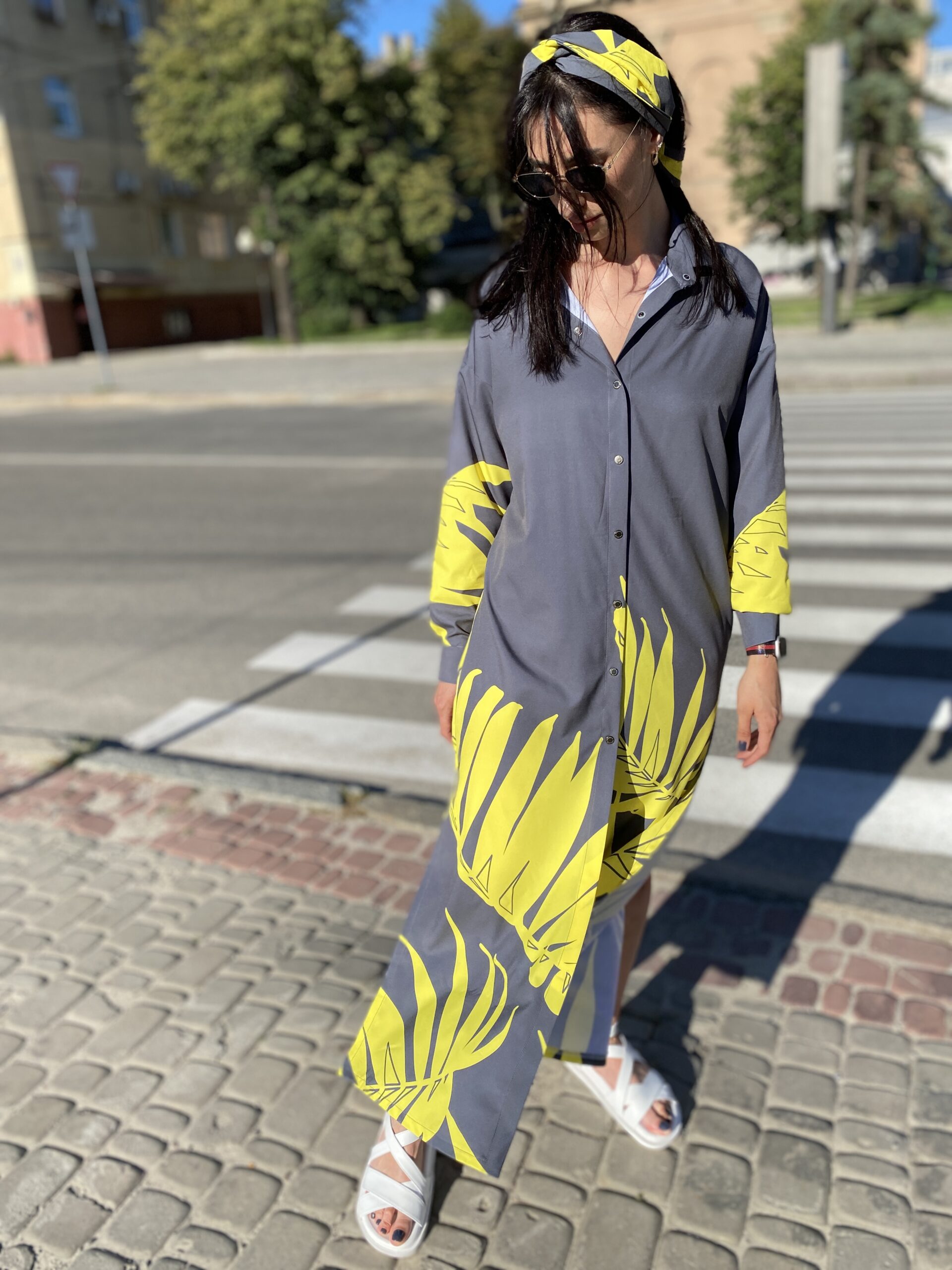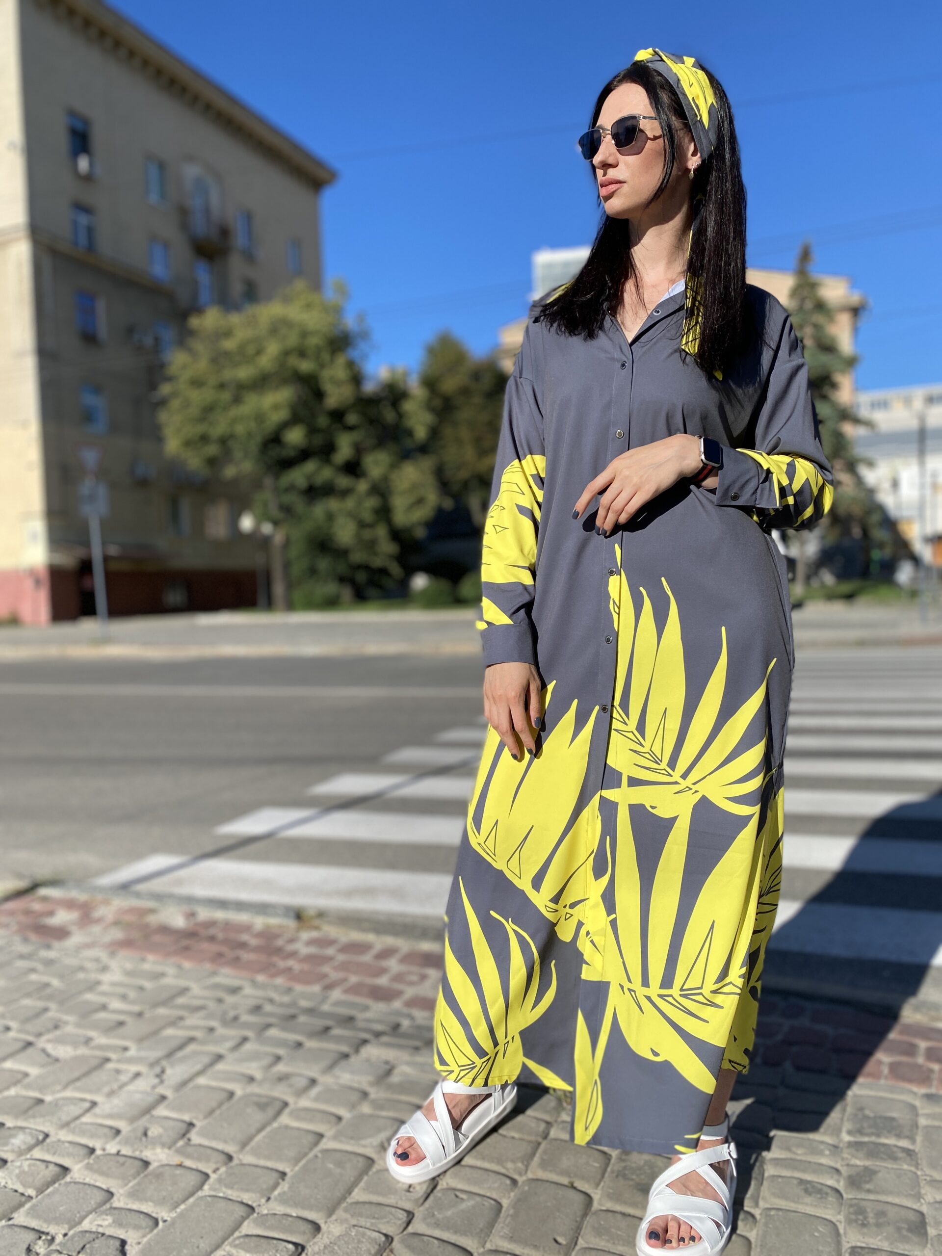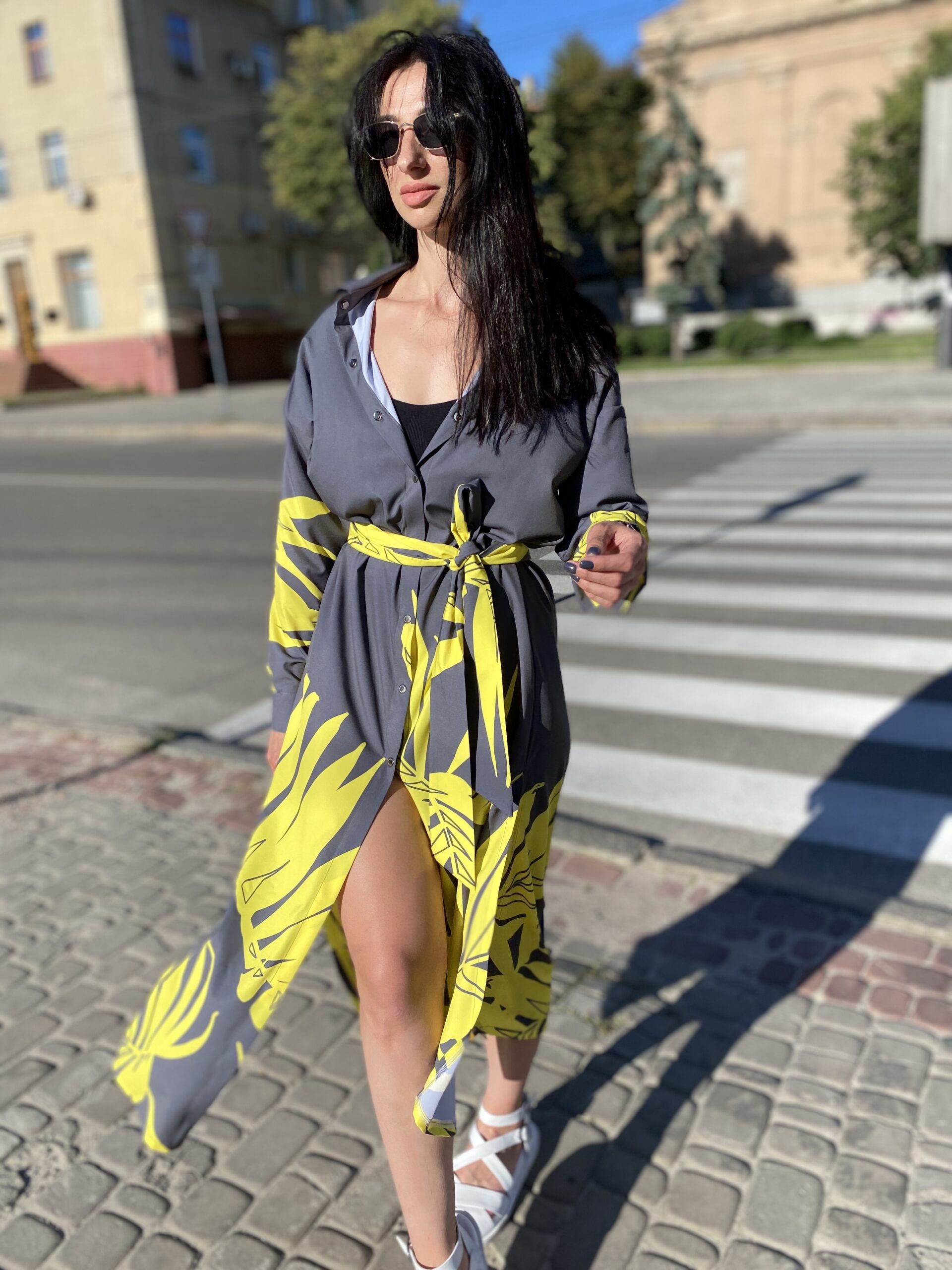 A maxi-length shirt dress is ideal for those who value comfort, style and versatility in one product. It gently emphasizes the figure thanks to the loose fit and belt included, and the lowered shoulder adds relaxation and femininity to the image.
