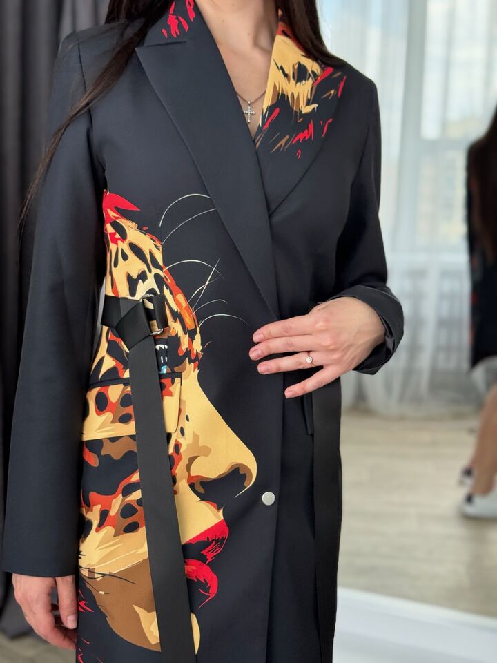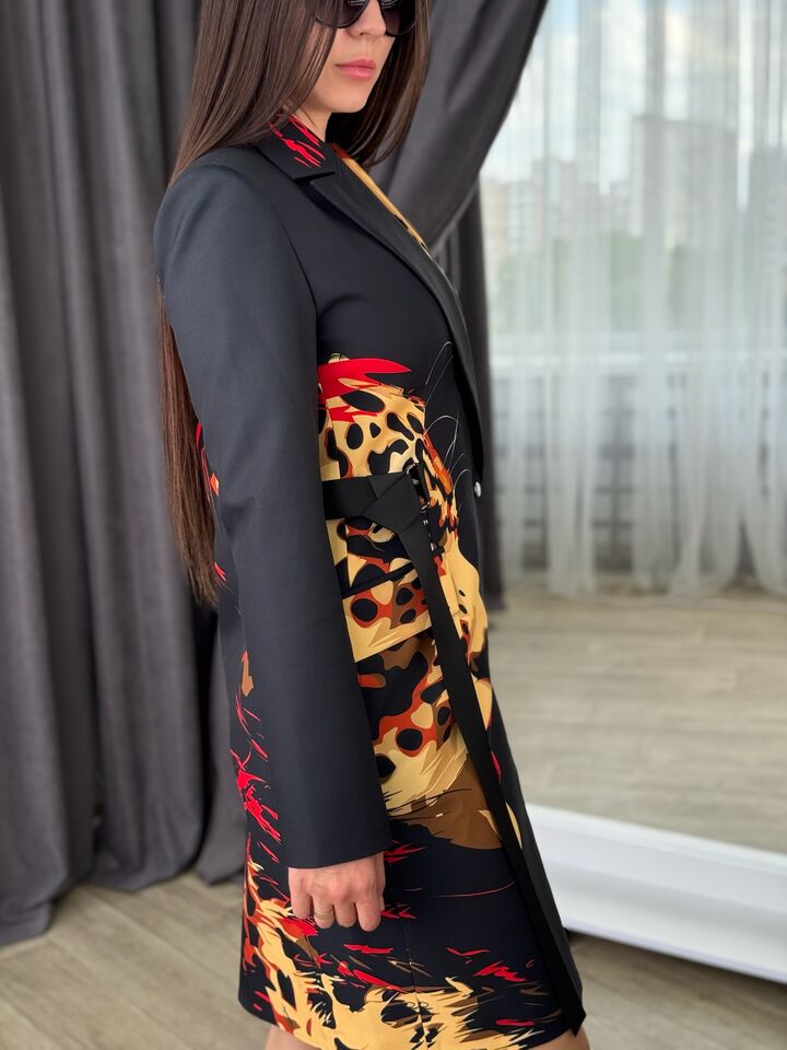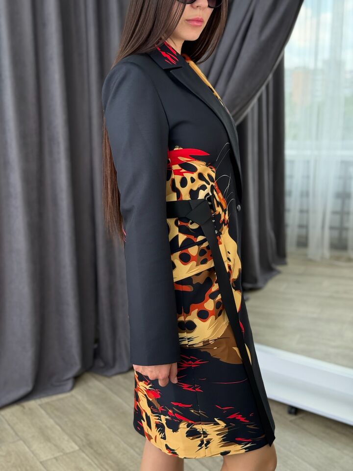 Jacket dress, fitted, black with leopard print
