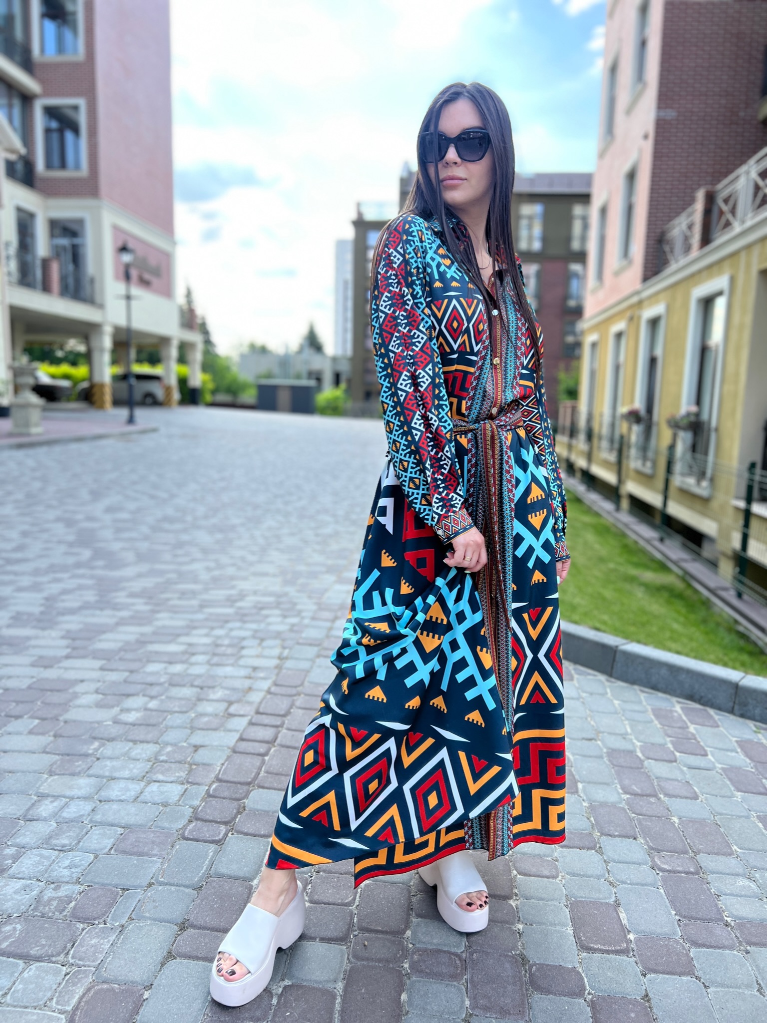 Prawdopodobnie szukasz: długa sukienka, sukienka z trenem, letnia sukienka maxi, elegancka sukienka, sukienka z paskiem, lekka sukienka, sukienka designerska, sukienka damska z rękawami, sukienka z oryginalnym nadrukiem, sukienka na spacery i imprezy