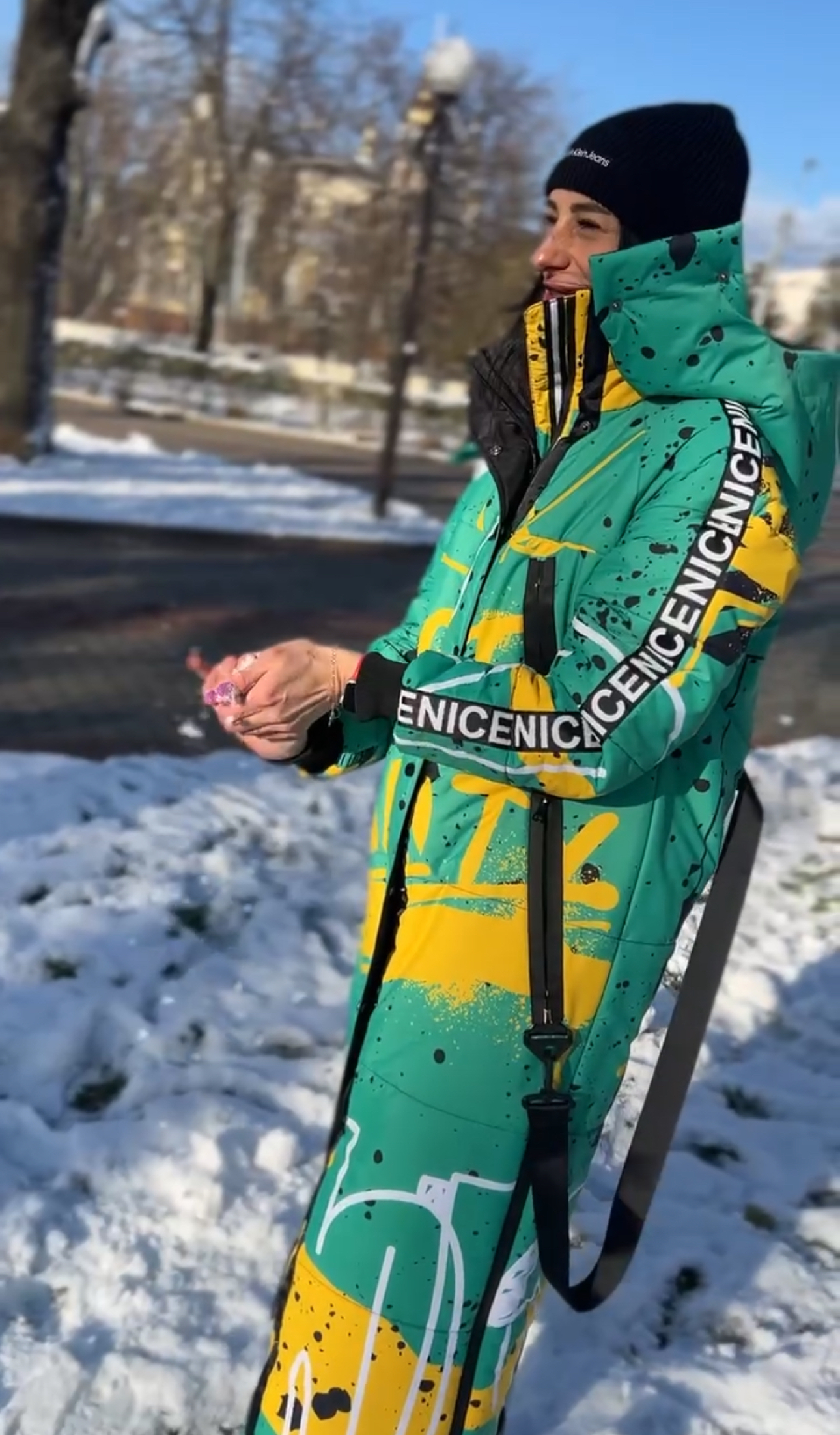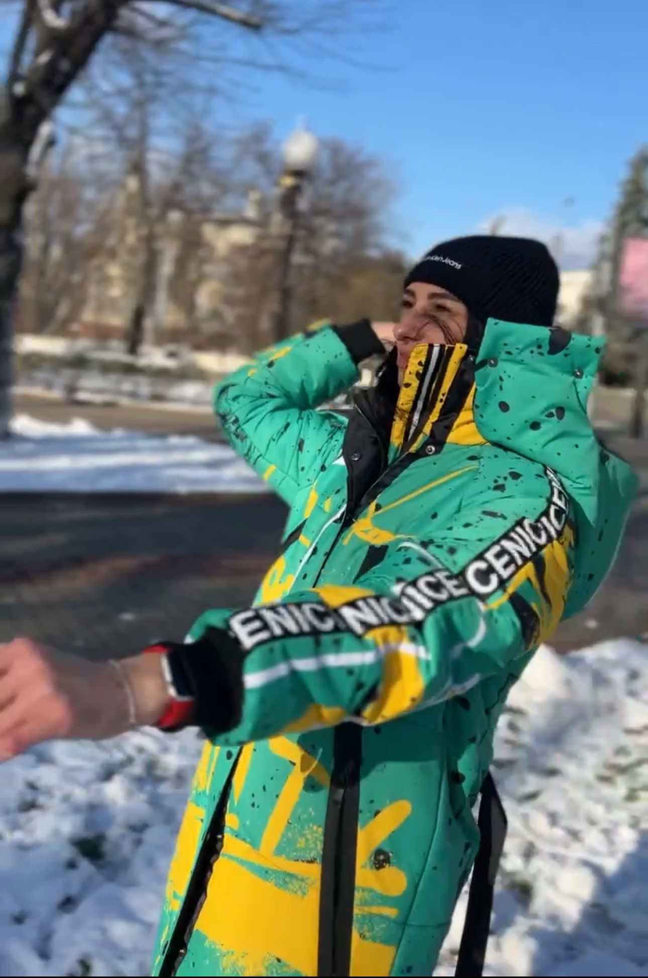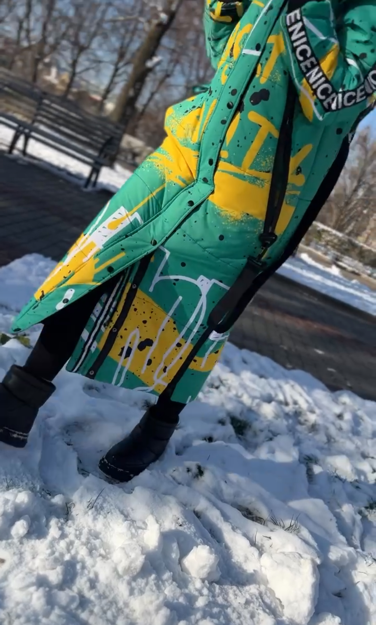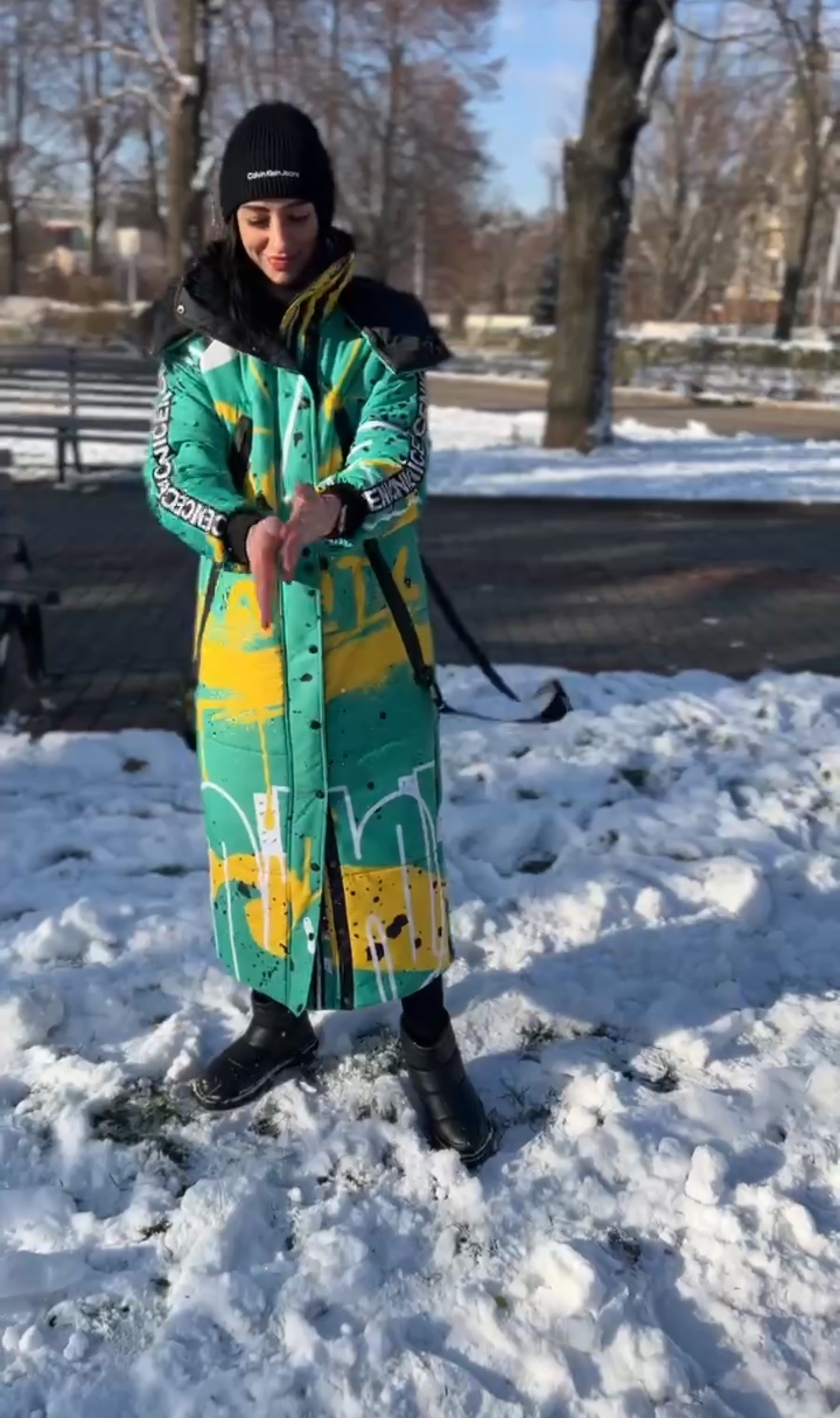 Damska kurtka zimowa o prostym kroju z kapturem to połączenie technologii, ciepła i designerskiego podejścia. Dzięki gumowanym zamkom, głębokim kieszeniom, ochronie przed wilgocią i izolacji 250-fill będzie to idealny wybór na chłodne zimy. A dzięki autorskiemu drukowi całość wygląda niepowtarzalnie, nietypowo i ekspresyjnie.