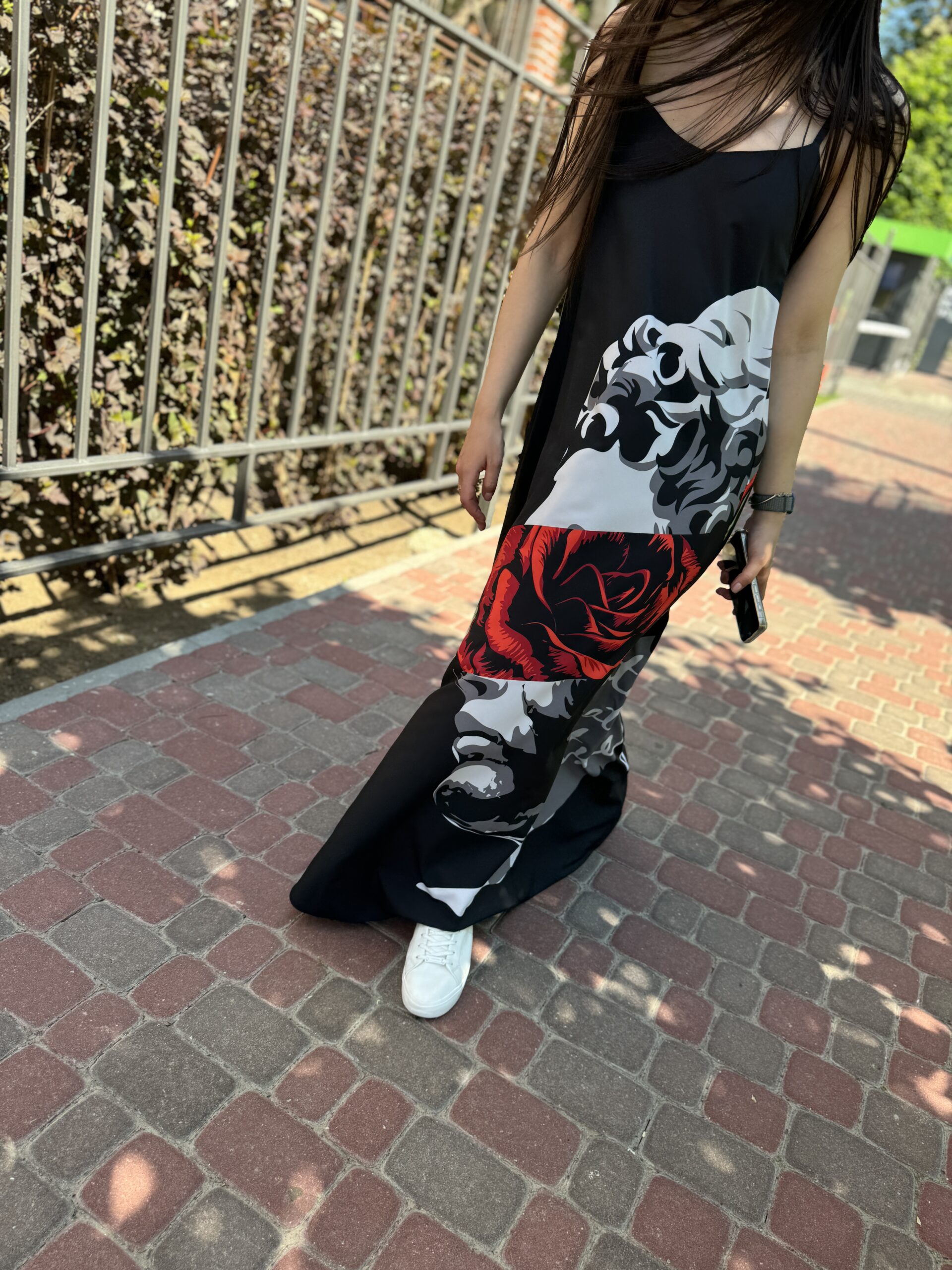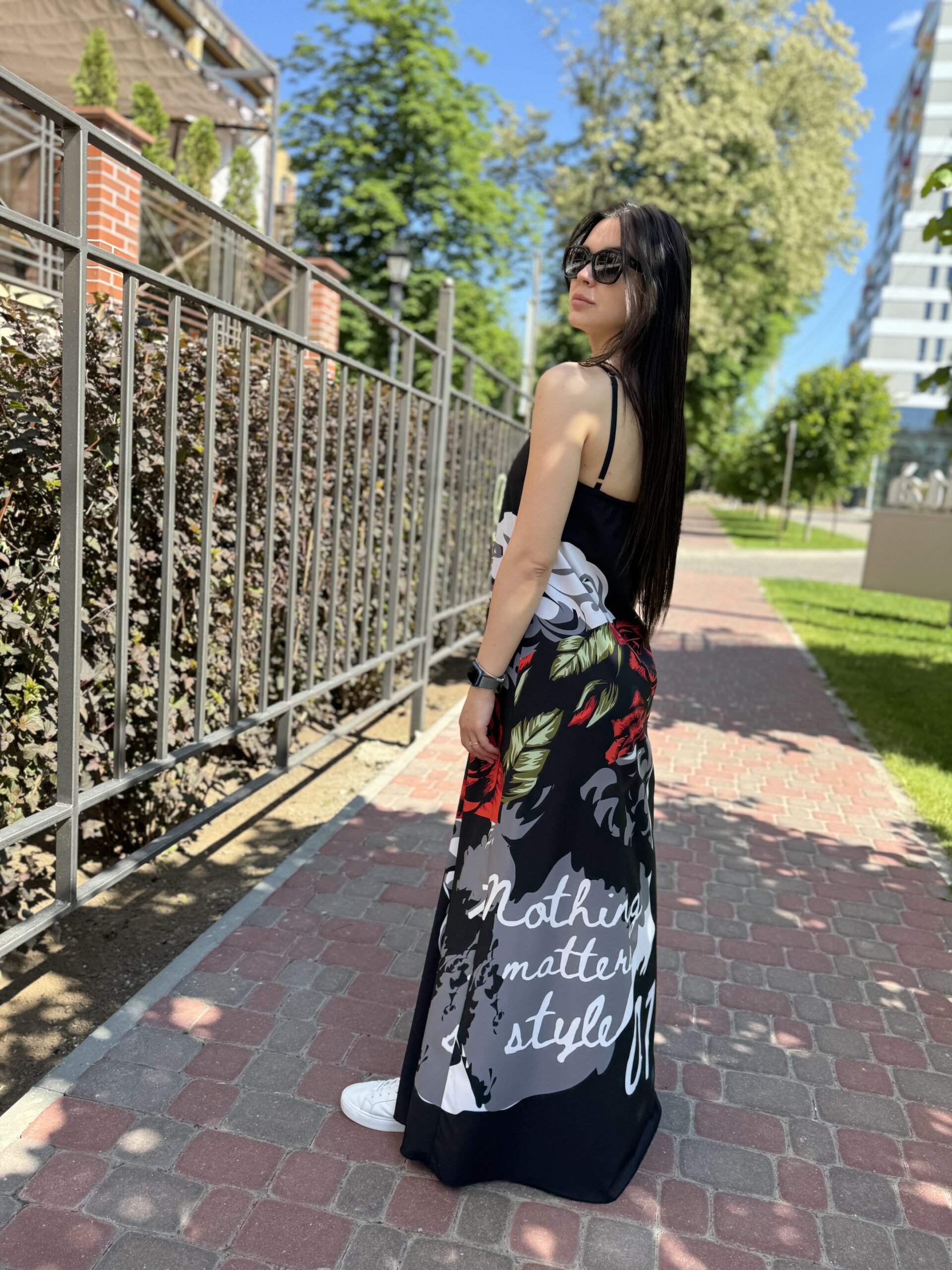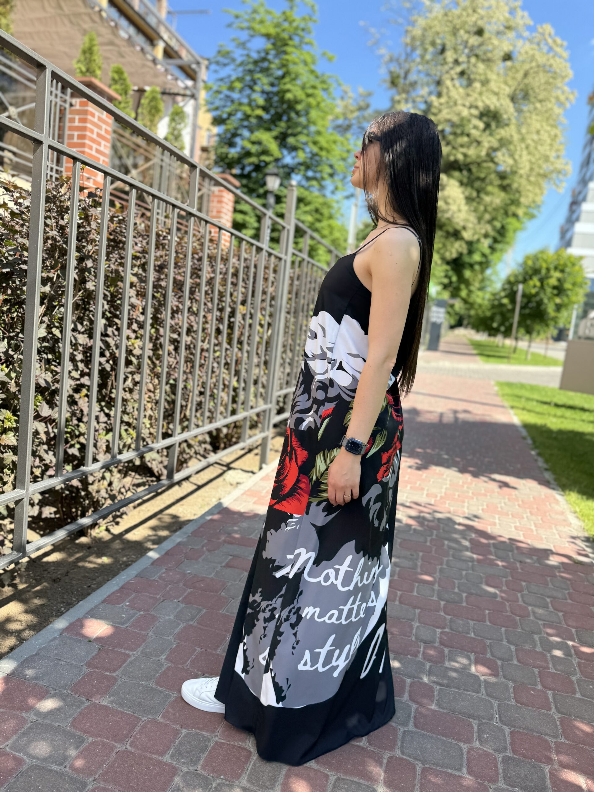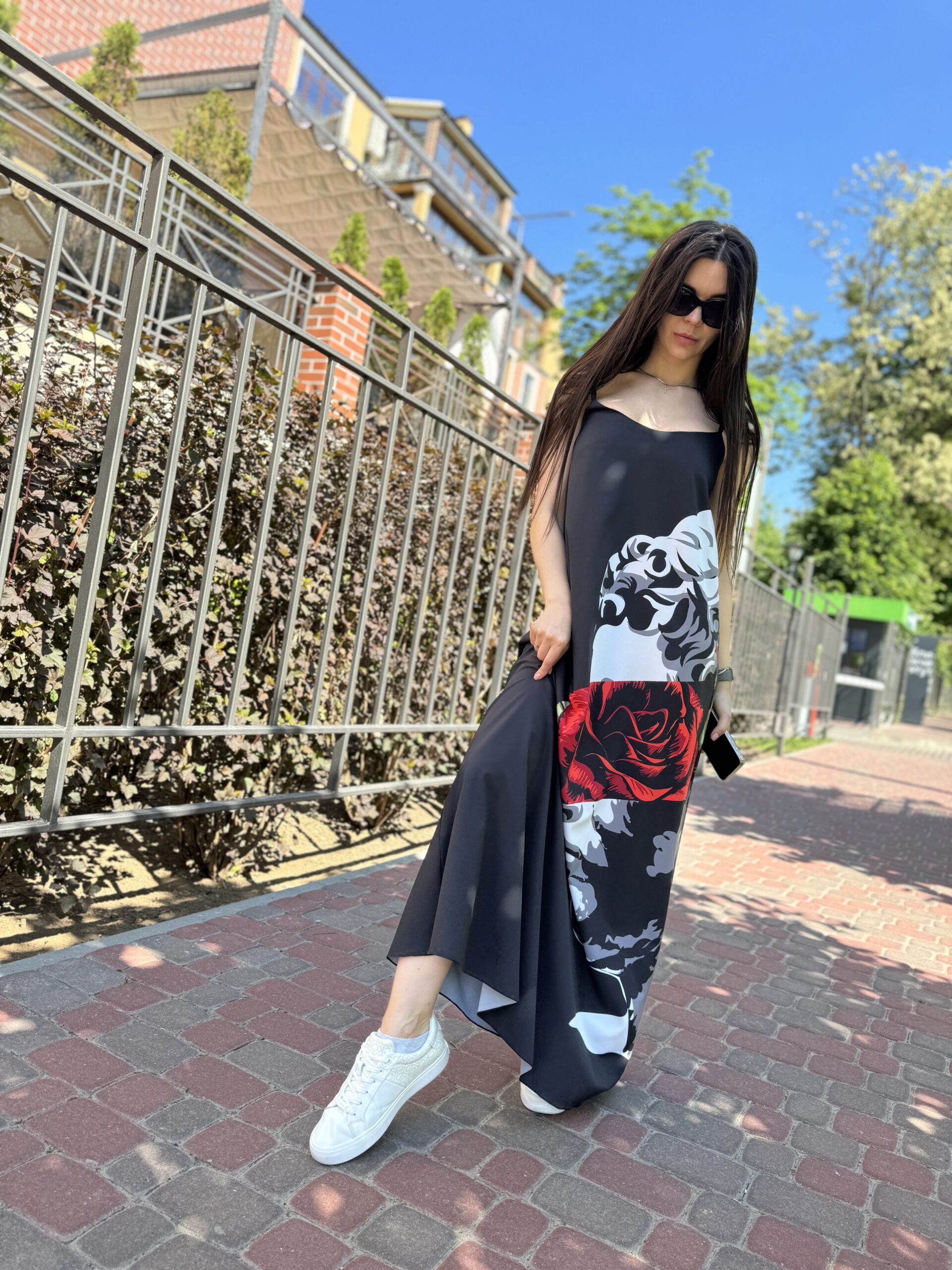 Kombinacja sukienka, maxi czarna z nadrukiem