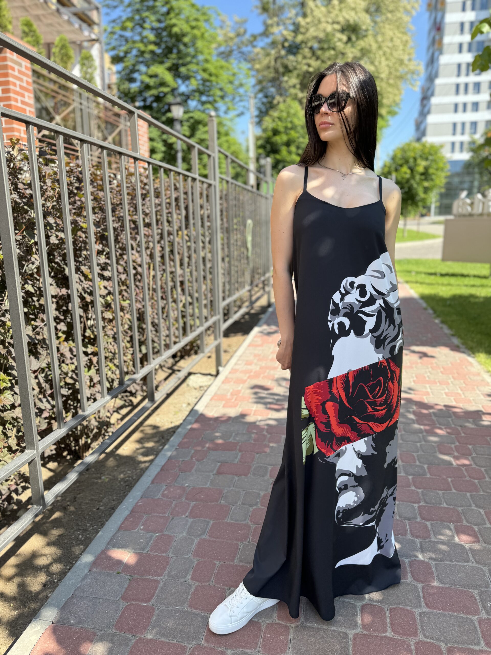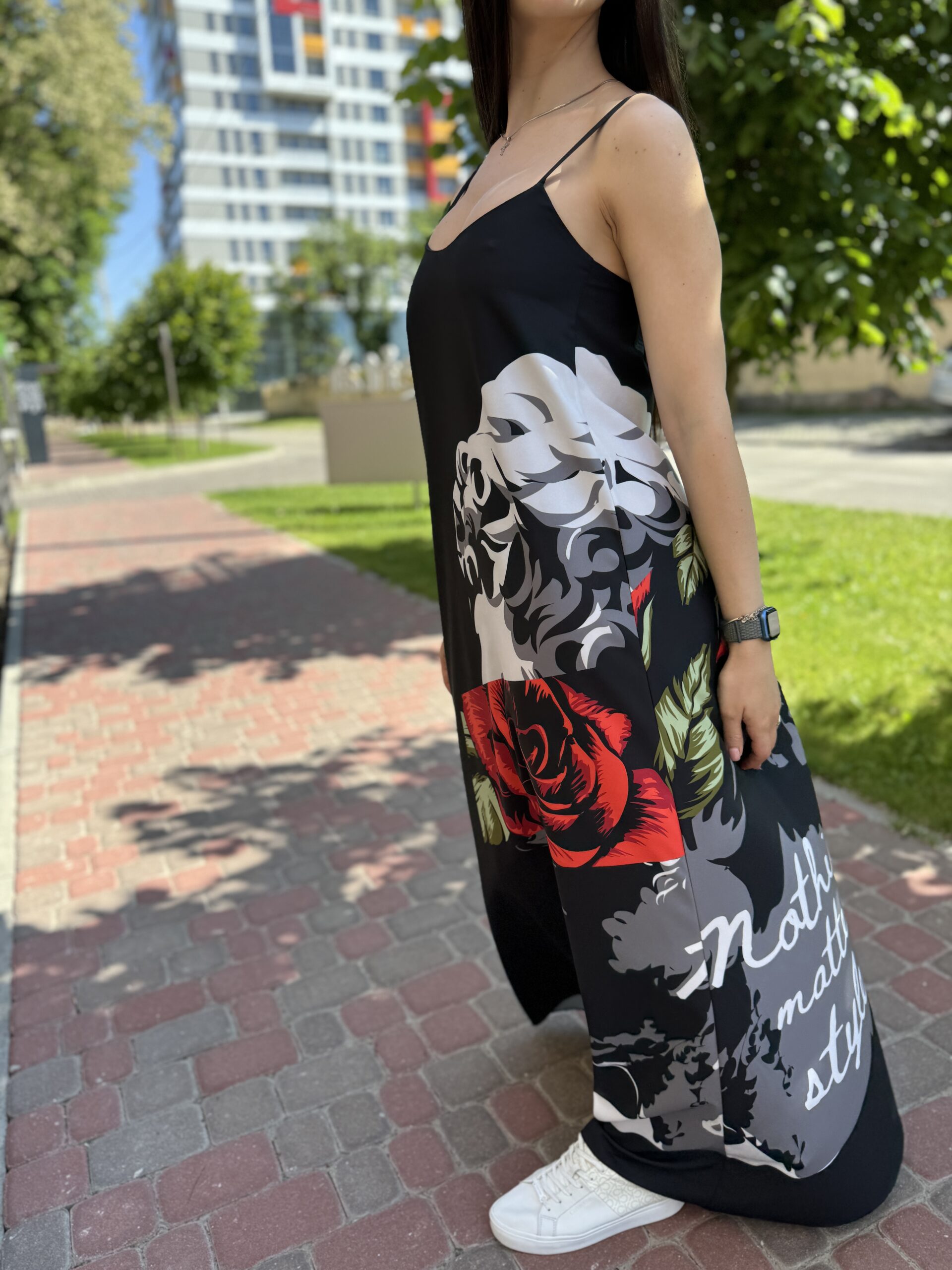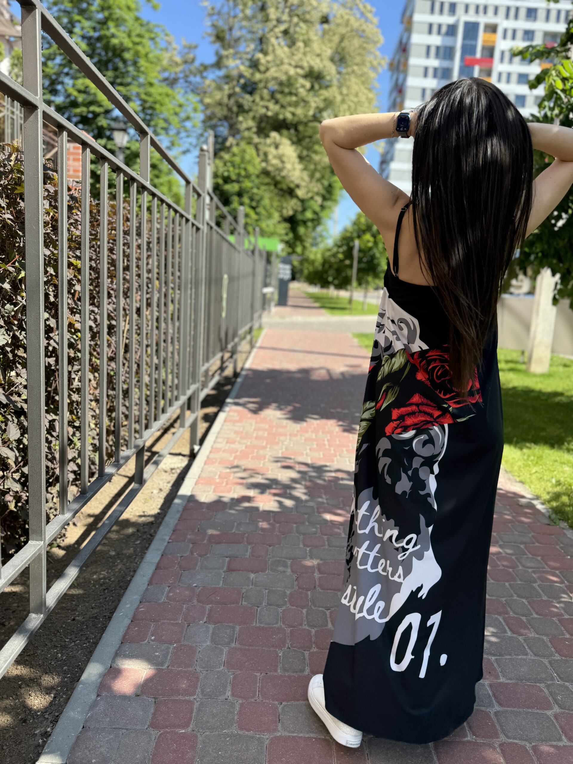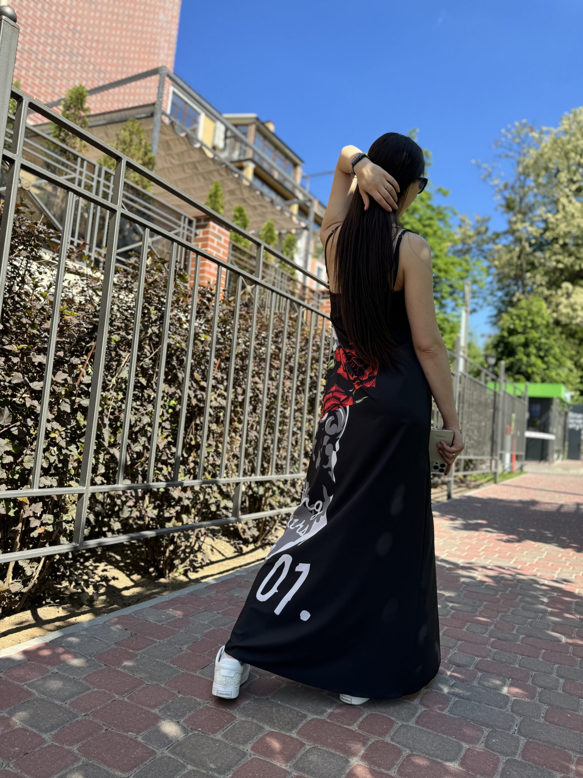 Kombinacja sukienka, maxi czarna z nadrukiem