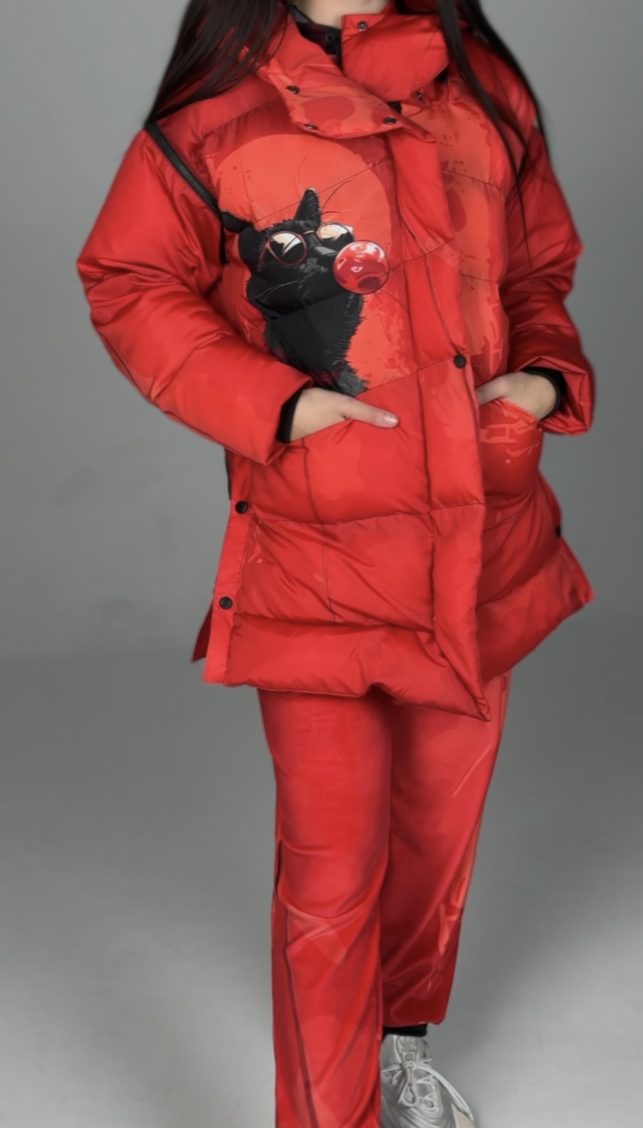 You are probably looking for: insulated coat, winter jacket, hooded jacket, jacket with slits, coat with belt, women’s parka, transformer with detachable sleeves, jacket with synthetic fur, designer coat, outerwear with an original print