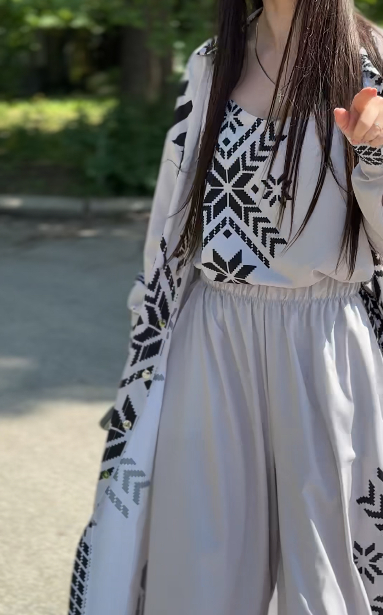 Ten trzyczęściowy komplet to styl, wygoda i wszechstronność, wszystko zamknięte w przemyślanym looku. Składa się z trzech niezależnych elementów, z których każdy można nosić osobno lub tworzyć codziennie nowe kombinacje.