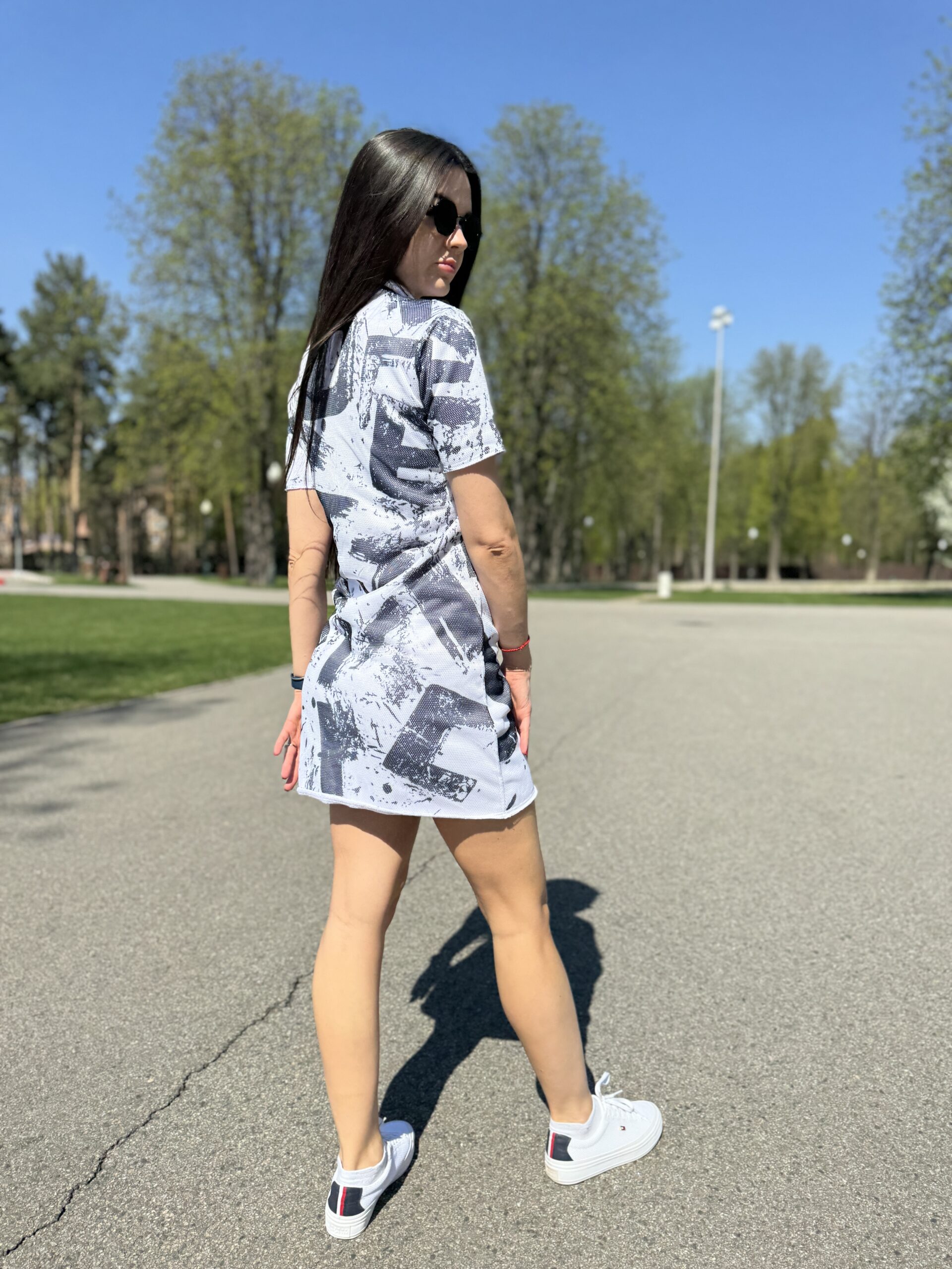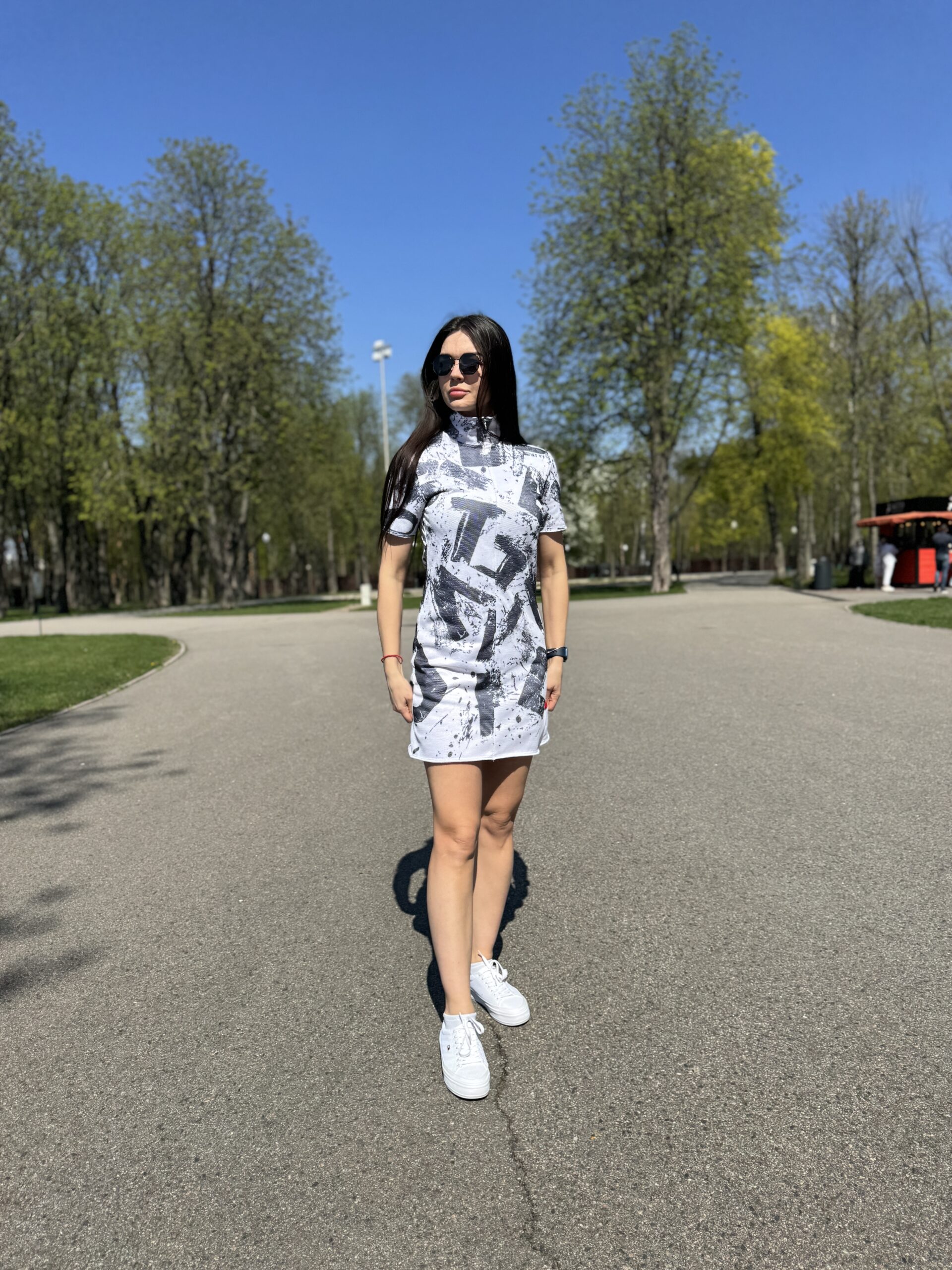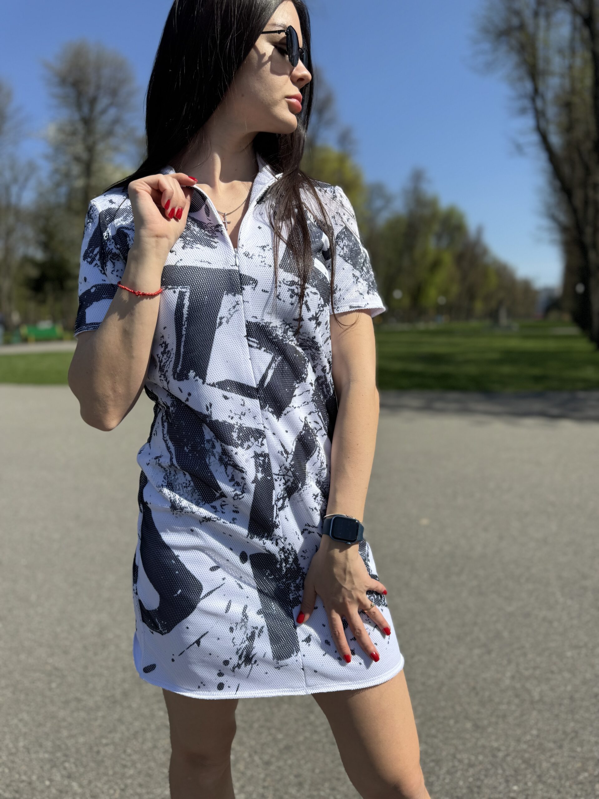 Ta dopasowana sukienka to udane połączenie naturalnego materiału, wygodnego kroju i nowoczesnego designu. Idealne do aktywnego życia w mieście, do pracy lub na stylowe spacery w ciepłym sezonie.