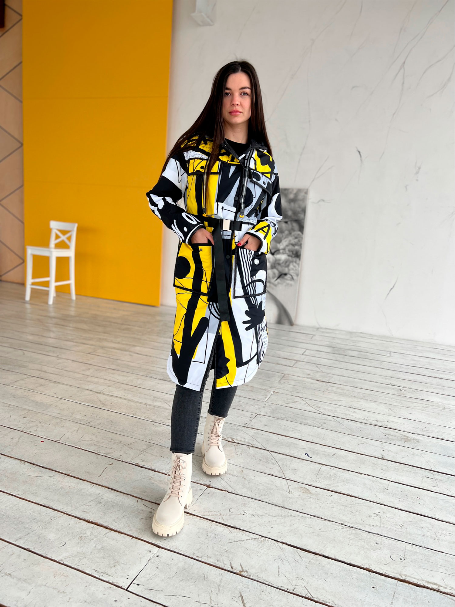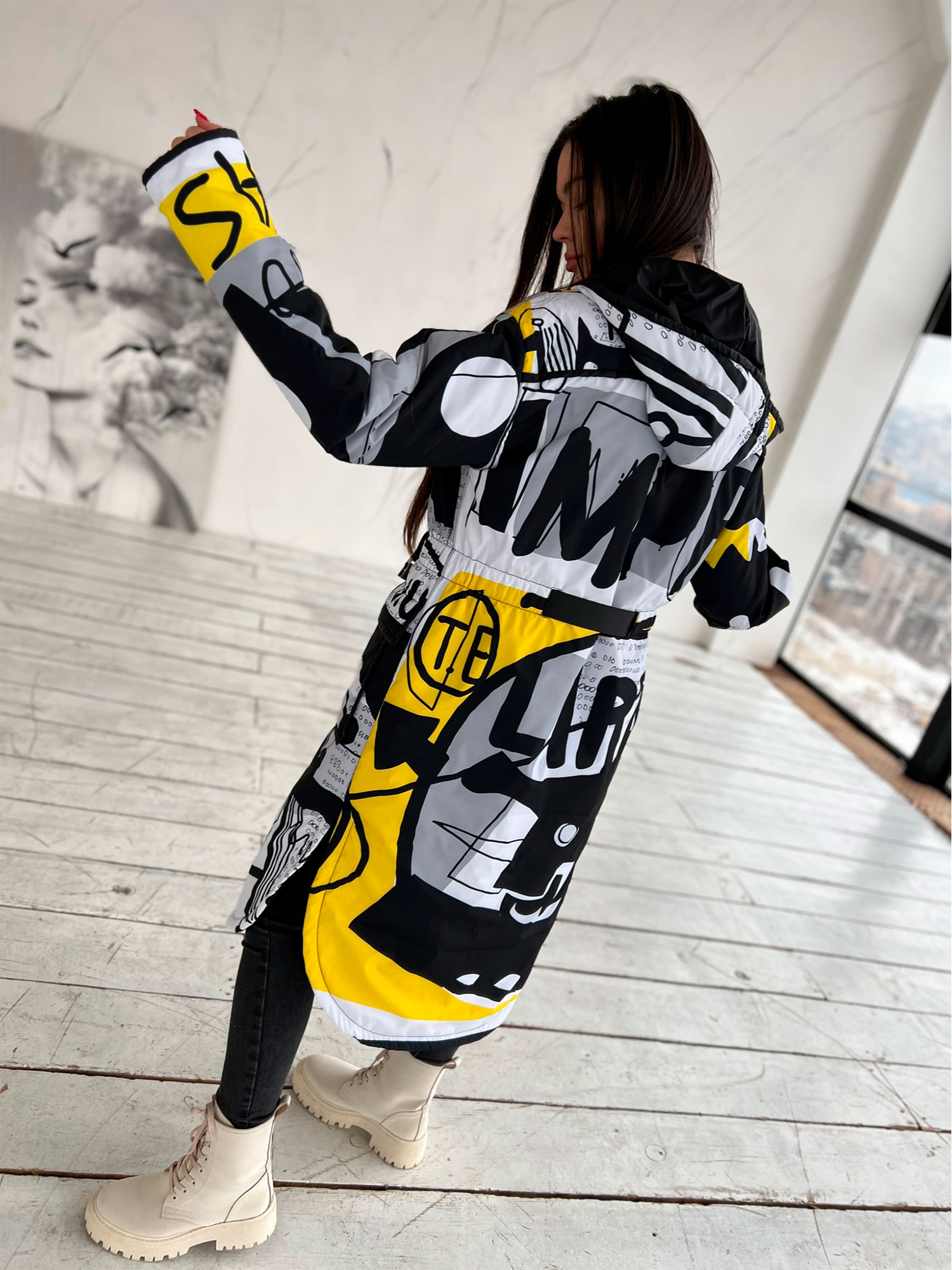 • Wydruk jest własnością autora. Tworzymy je ręcznie – każdy płaszcz jest unikalnym, designerskim produktem, niepodobnym do niczego, co można kupić na masową skalę.