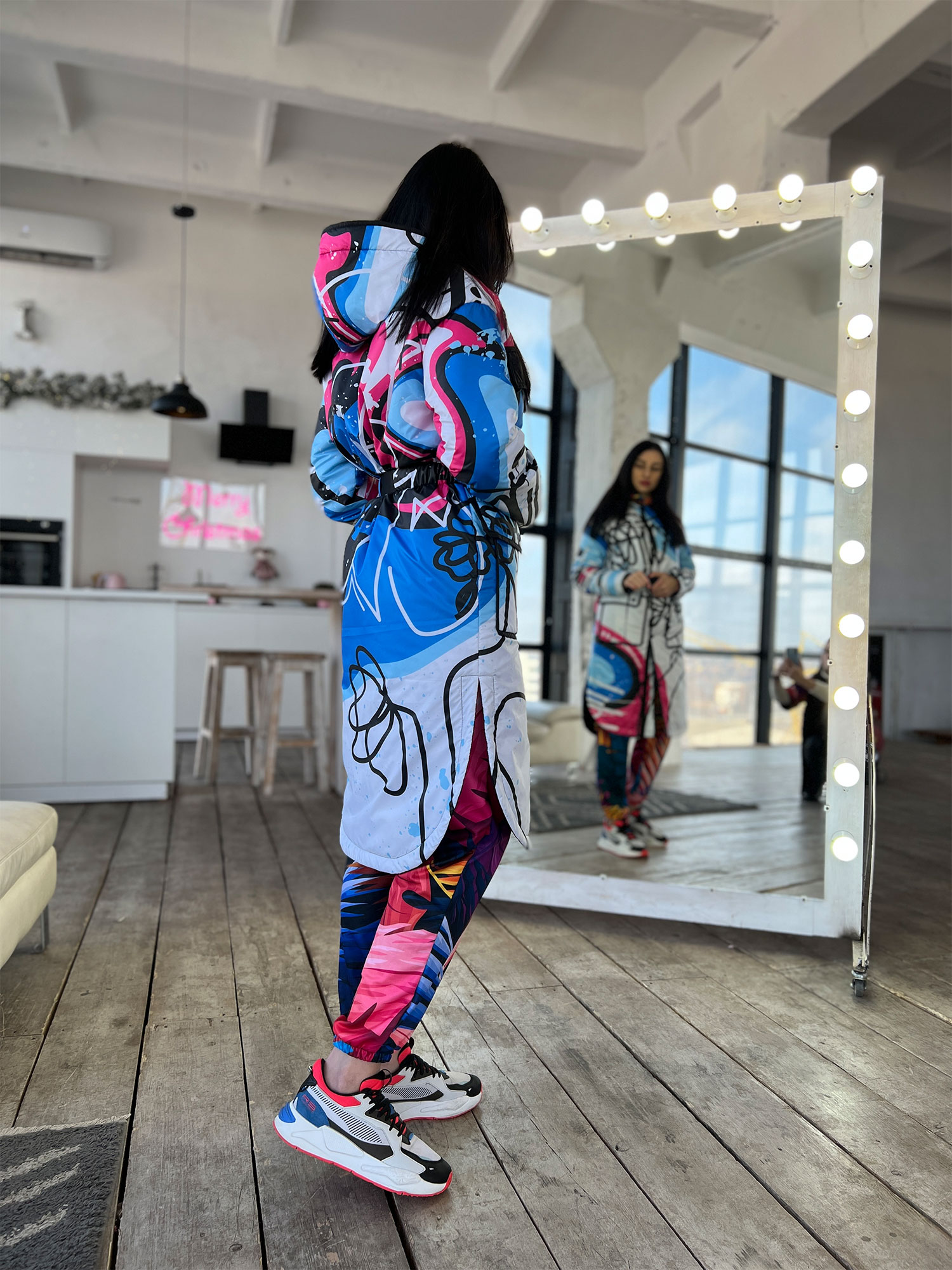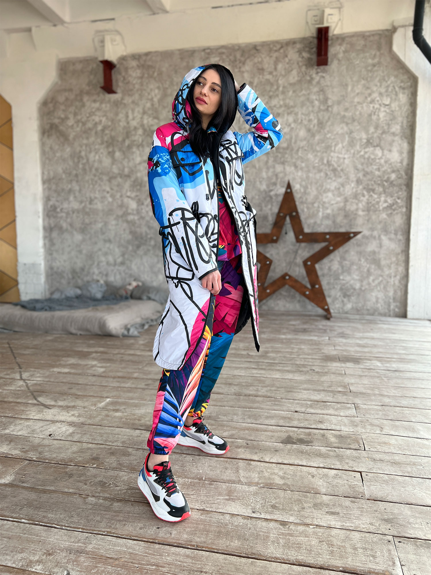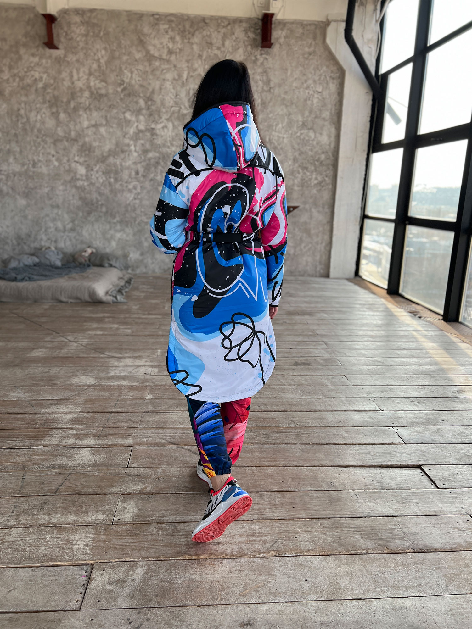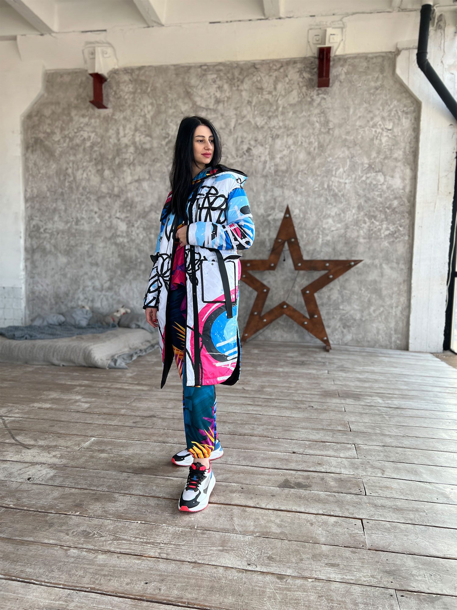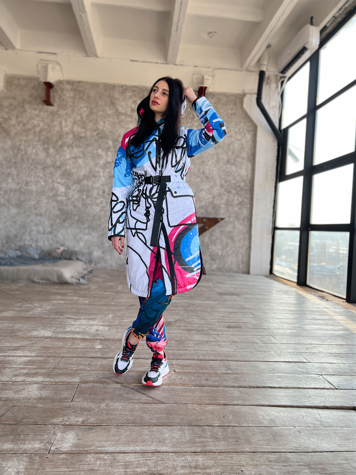 • Wydruk jest własnością autora. Tworzymy je ręcznie – każdy płaszcz jest unikalnym, designerskim produktem, niepodobnym do niczego, co można kupić na masową skalę.