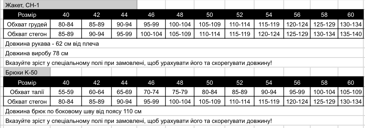 розмірний ряд від 40 до 60 р.