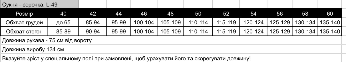 розмірний ряд від 40 до 60 р.