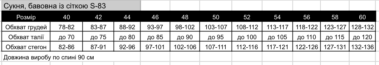 розмірний ряд від 40 до 60 р.