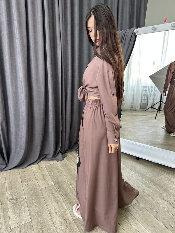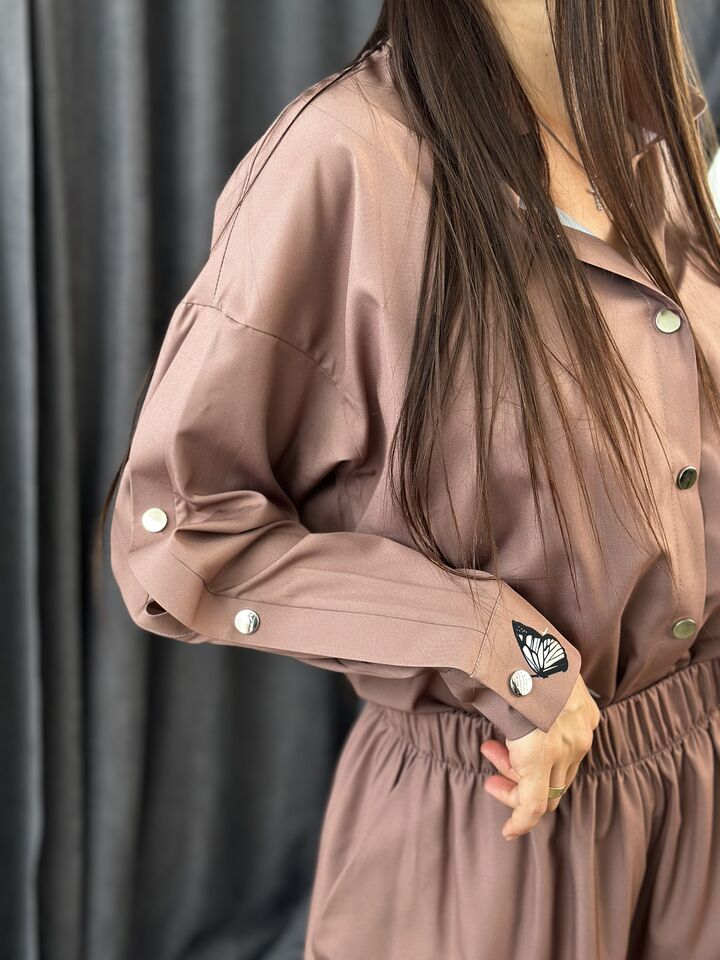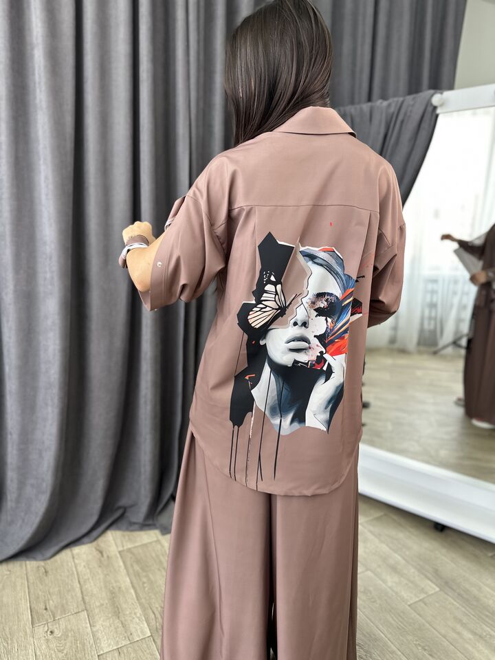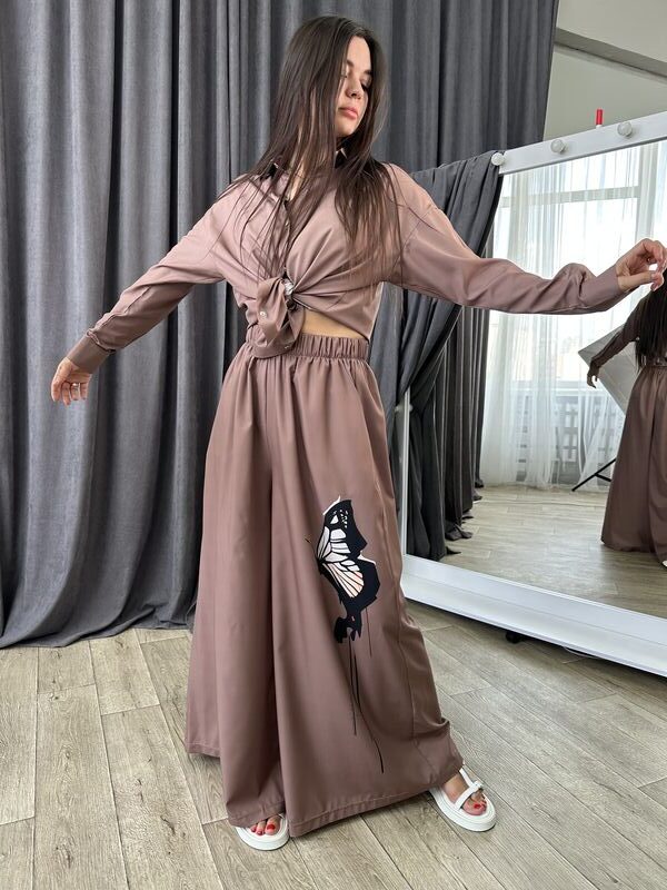 Костюм — це стиль, комфорт і універсальність, зібрані в одному продуманому образі. Він складається з сорочки та широких штанів, кожен з яких можна носити окремо або одягти разом.
