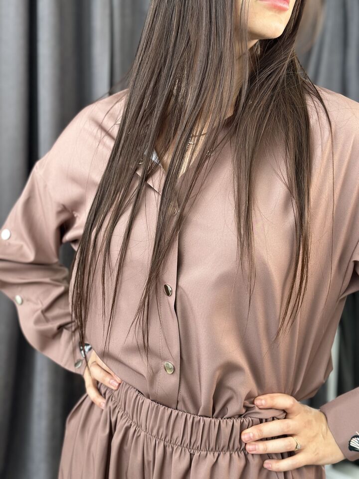 Жіночий костюм із сорочкою, колір шоколад, коричневий