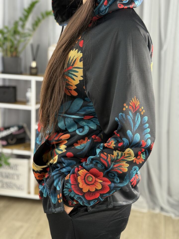 • Комплект: худі-кенгуру + штани джогери • Сезон: весна/осінь • Матеріал: бавовна 100% та зверху сітка (поліестр) • Капюшон на худі: є • Пояс: резинка • Посадка: oversize • Догляд: прання 30°