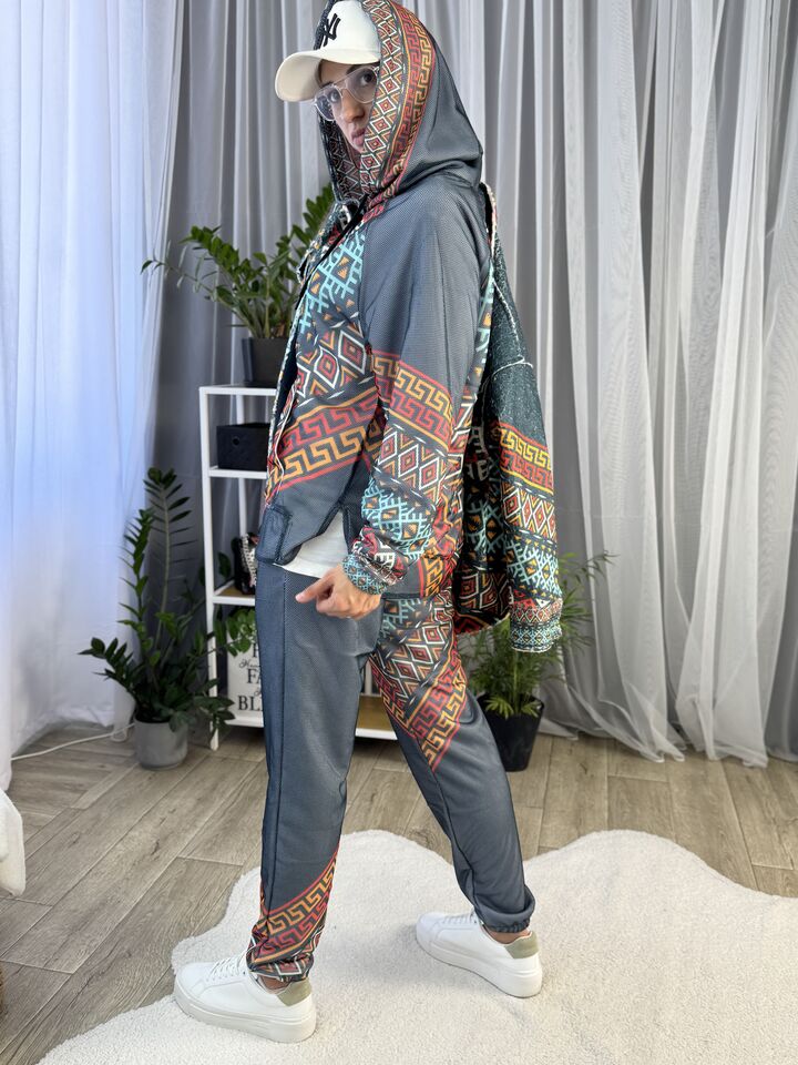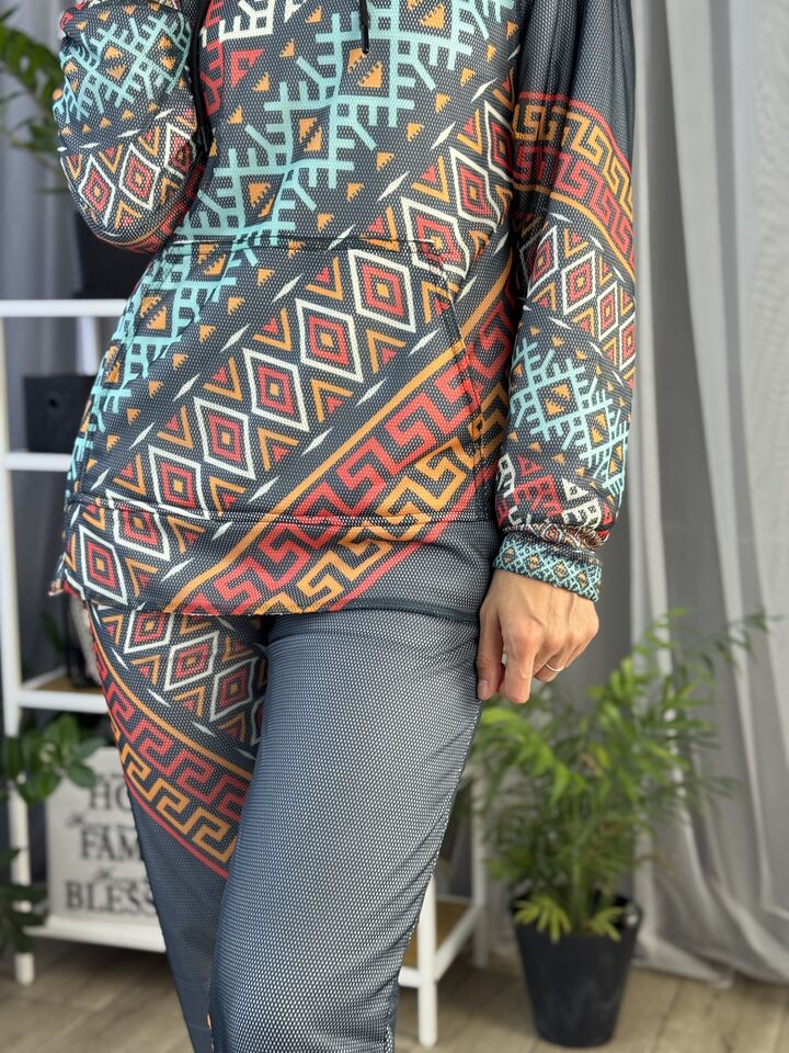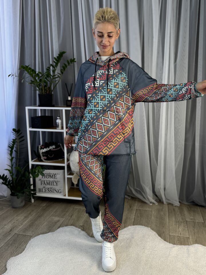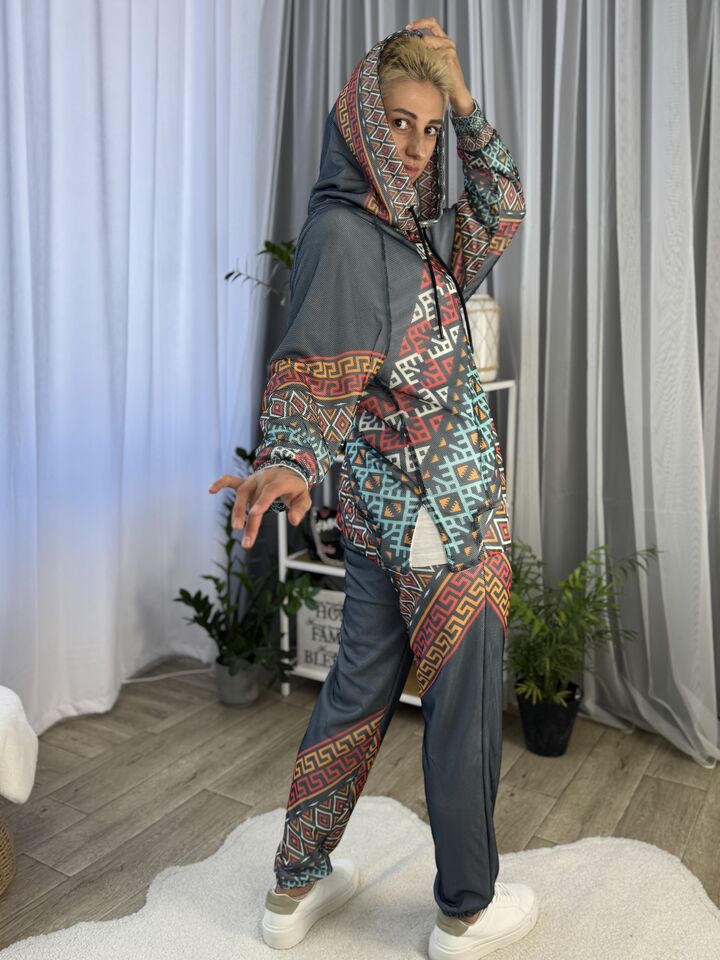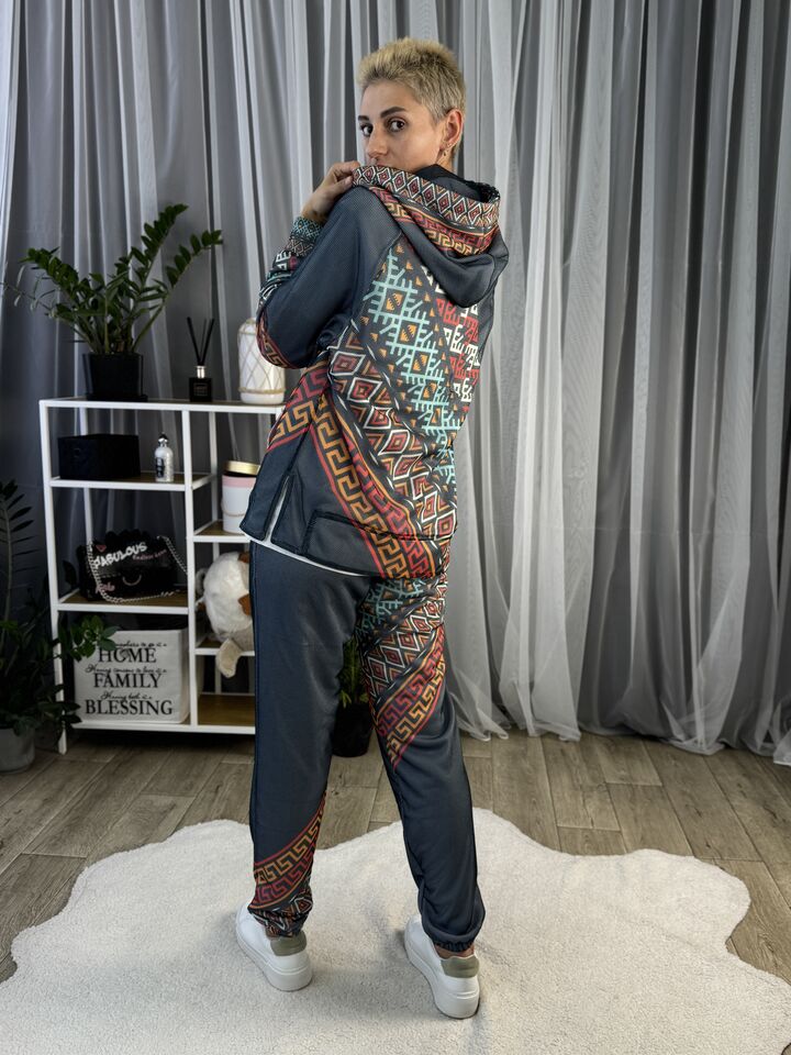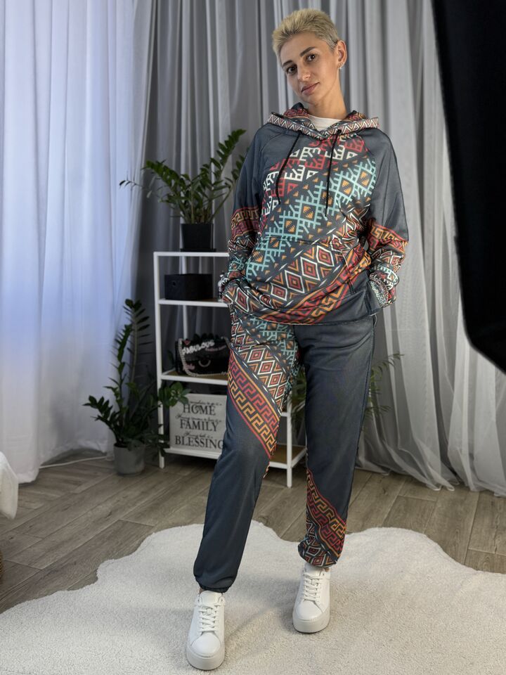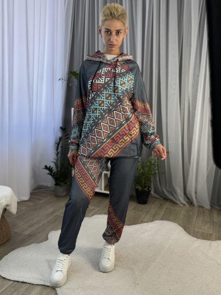 Жіночий спортивний костюм, кенгуру, весна/осінь, зелений із орнаментом
