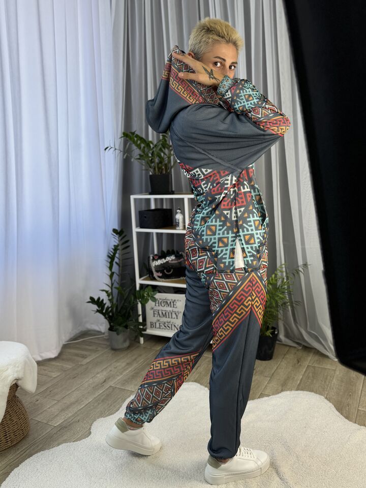 Жіночий бавовняний костюм Barva Lab – ідеальний вибір для тих, хто цінує зручність у повсякденному житті, але не готовий поступитися стилем, він поєднує у собі комфорт, свободу рухів і натуральність, а унікальний принт, в будь-якому випадку, наділить тебе особливою увагою від оточуючих!