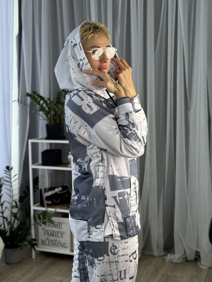 • Комплект: худі-кенгуру + штани джогери • Сезон: весна/осінь • Матеріал: бавовна 100% та зверху сітка (поліестр) • Капюшон на худі: є • Пояс: резинка • Посадка: oversize • Догляд: прання 30°
