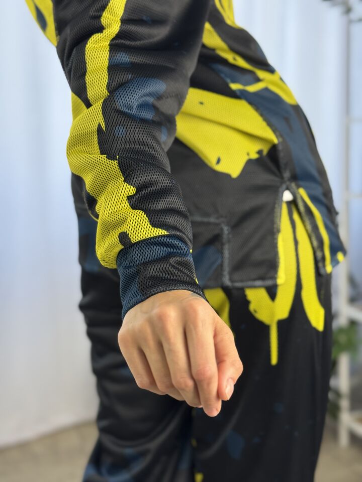 Костюм виготовлений із 100% бавовни, доповненої сіткою. Це означає, що до тіла прилягає м’яка, дихаюча, приємна на дотик тканина, а зверху сітка, ця комбінація дає наступний результат: костюм не витягується на колінах, локітках, попі, не кошлатиться і зберігає свій вигляд навіть після багаторазового прання, поєднання текстур створює ефектний зовнішній вигляд і водночас зберігає практичність!