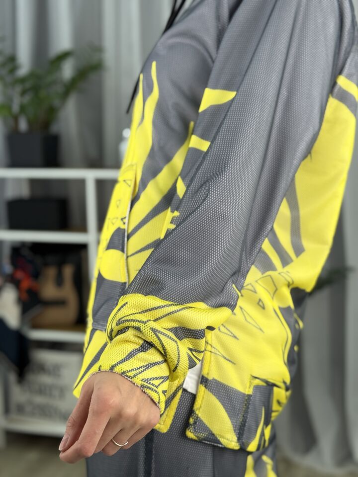Костюм виготовлений із 100% бавовни, доповненої сіткою. Це означає, що до тіла прилягає м’яка, дихаюча, приємна на дотик тканина, а зверху сітка, ця комбінація дає наступний результат: костюм не витягується на колінах, локітках, попі, не кошлатиться і зберігає свій вигляд навіть після багаторазового прання, поєднання текстур створює ефектний зовнішній вигляд і водночас зберігає практичність!