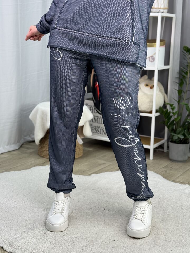 • Комплект: худі-кенгуру + штани джогери • Сезон: весна/осінь • Матеріал: бавовна 100% та зверху сітка (поліестр) • Капюшон на худі: є • Пояс: резинка • Посадка: oversize • Догляд: прання 30°