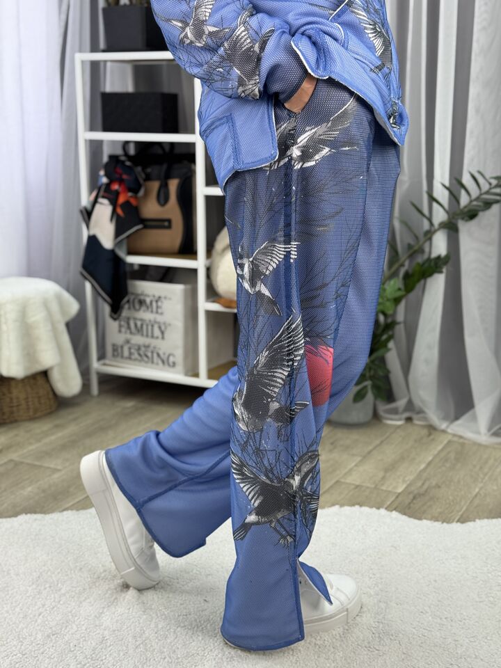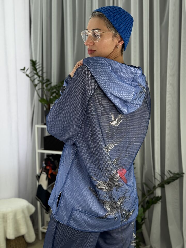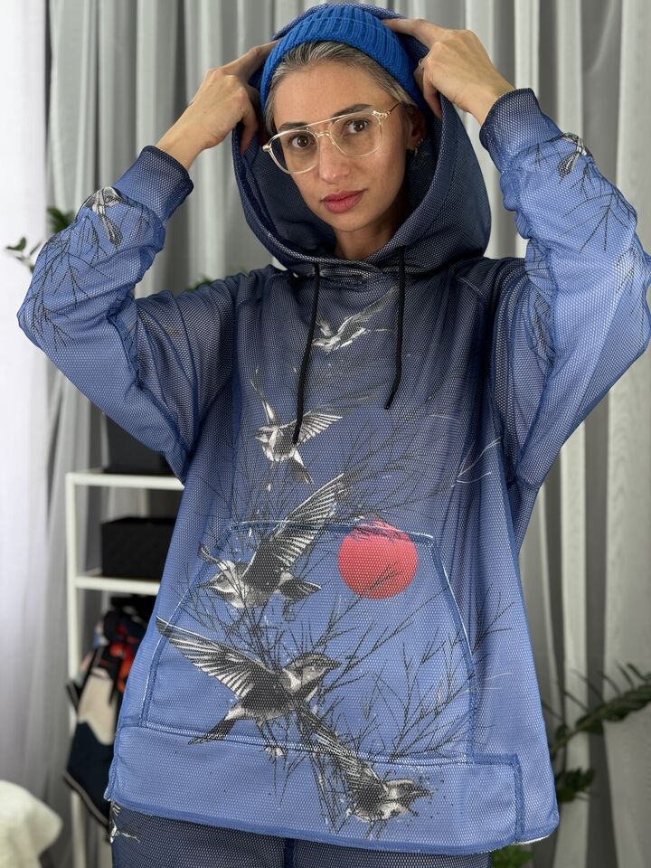 • Комплект: худі-кенгуру + прямі штани із розрізом • Сезон: весна/осінь • Матеріал: бавовна 100% та зверху сітка (поліестр) • Капюшон на худі: є • Пояс: резинка • Посадка: oversize • Догляд: прання 30°