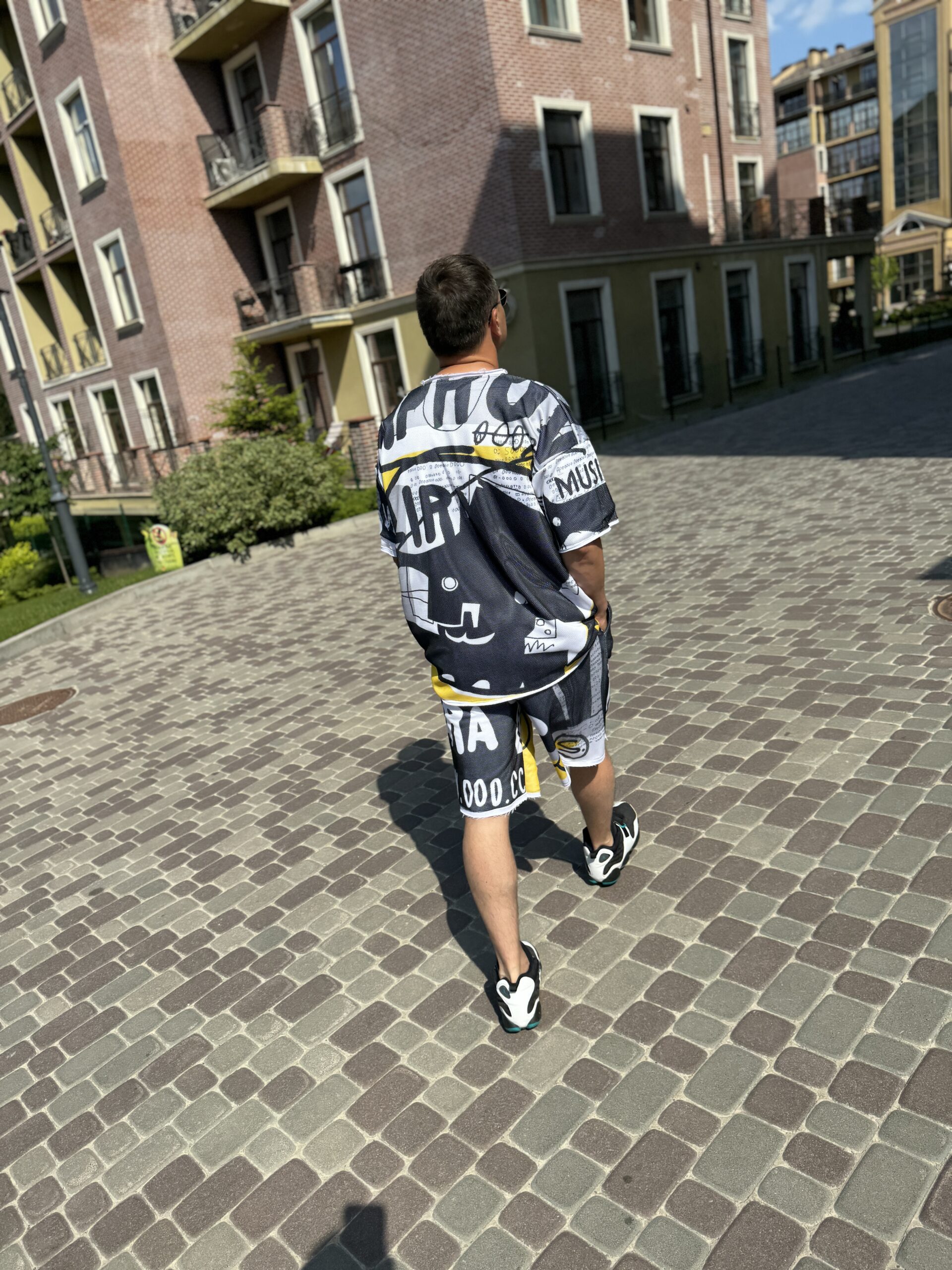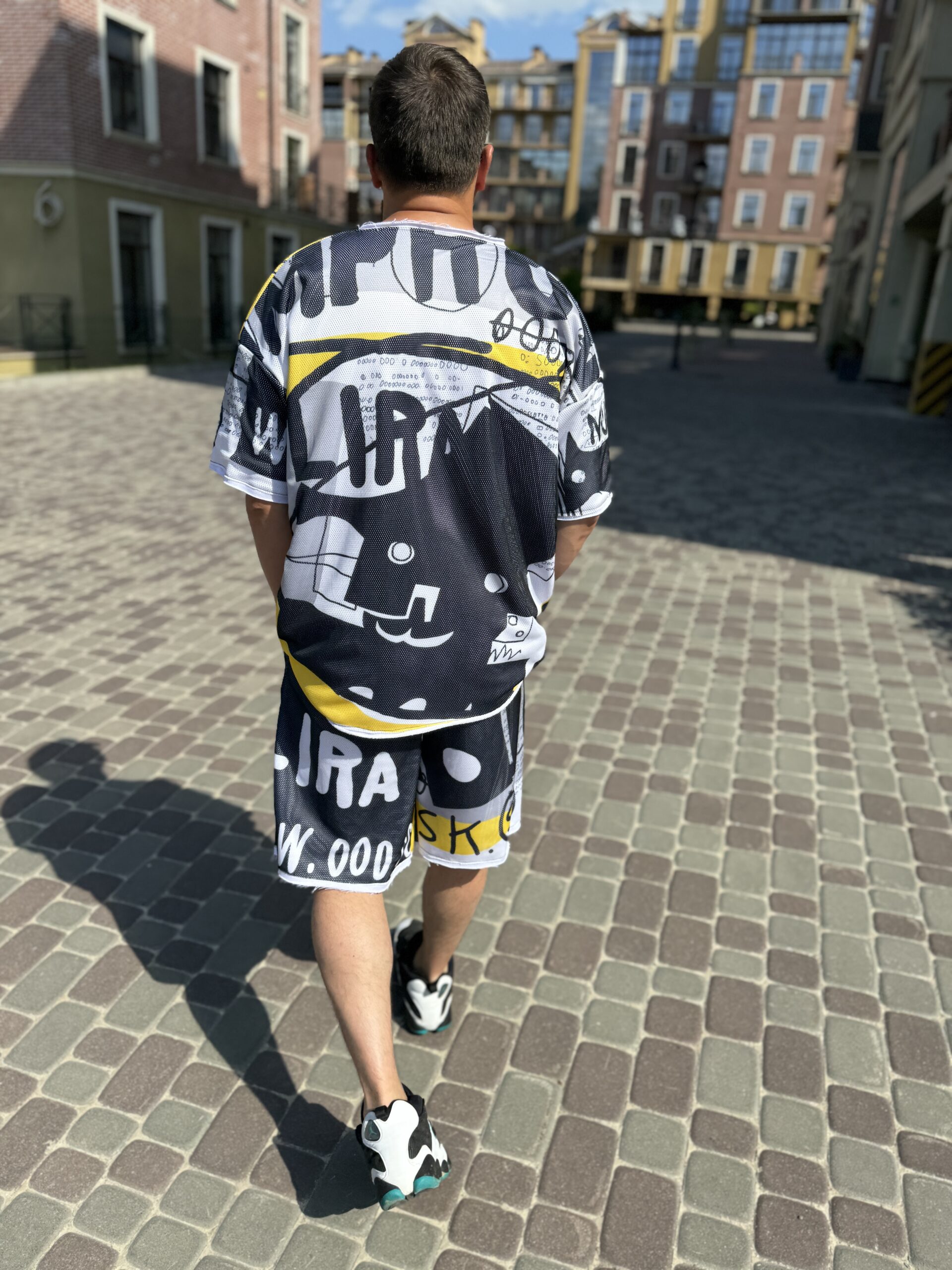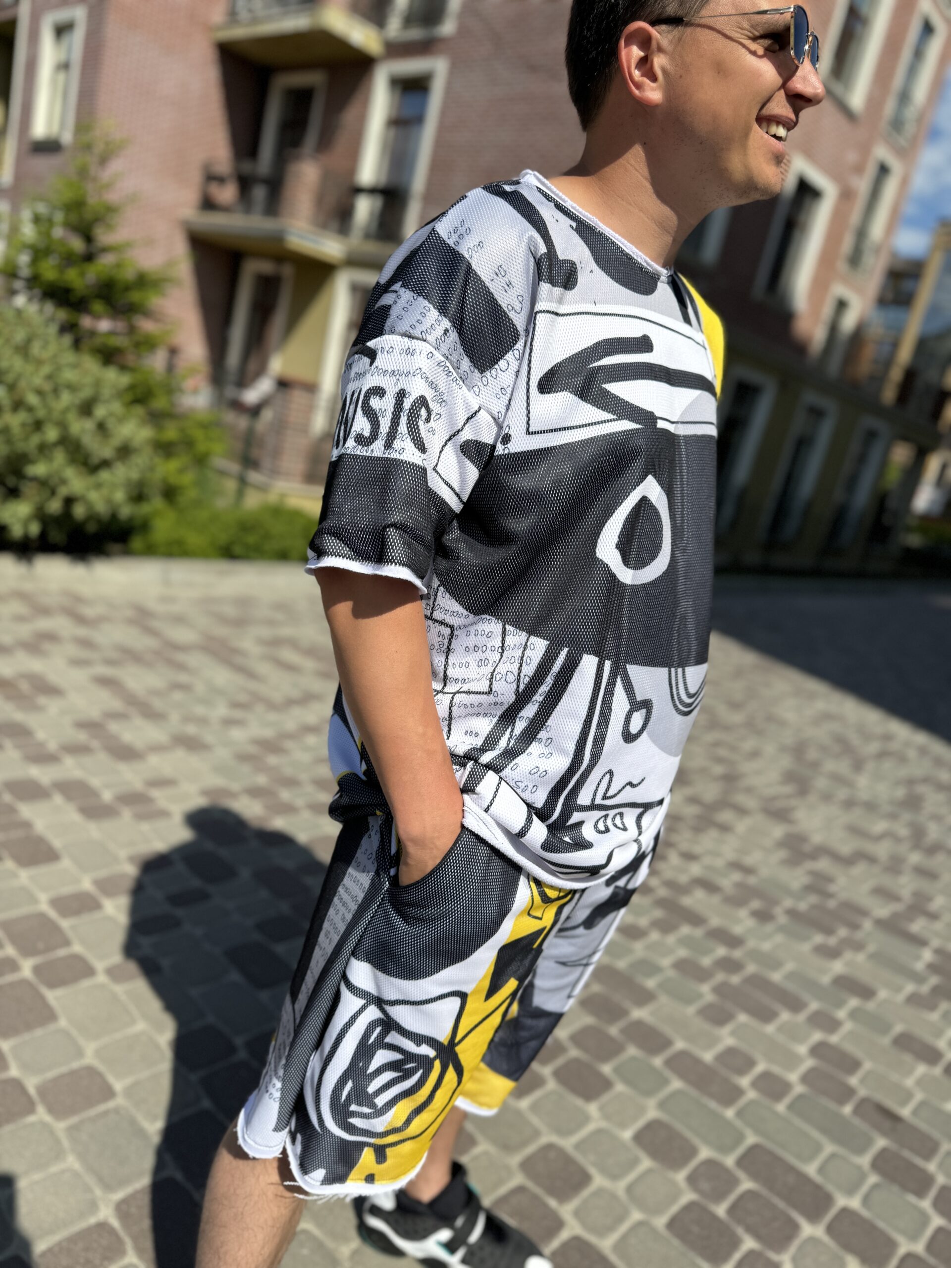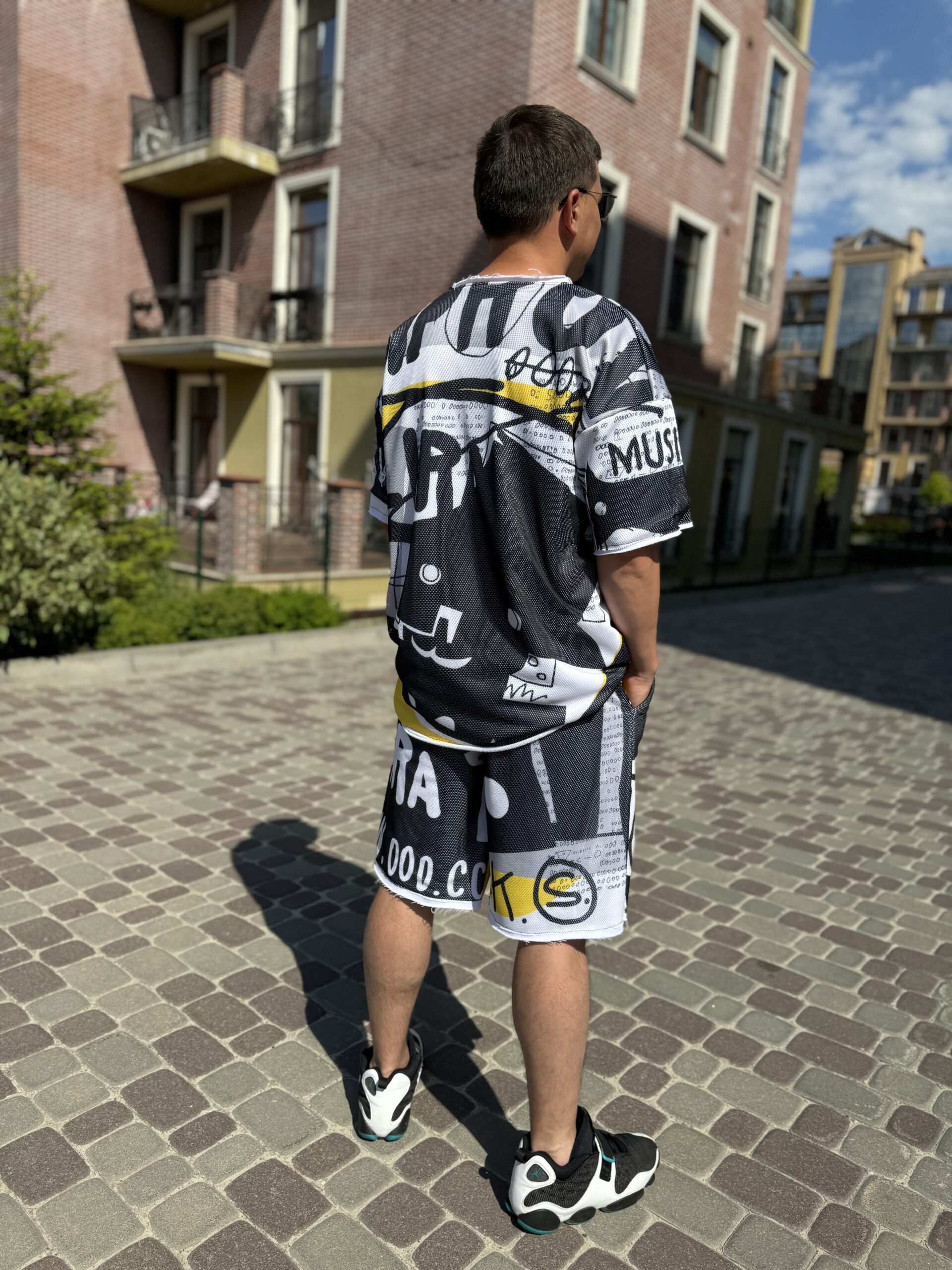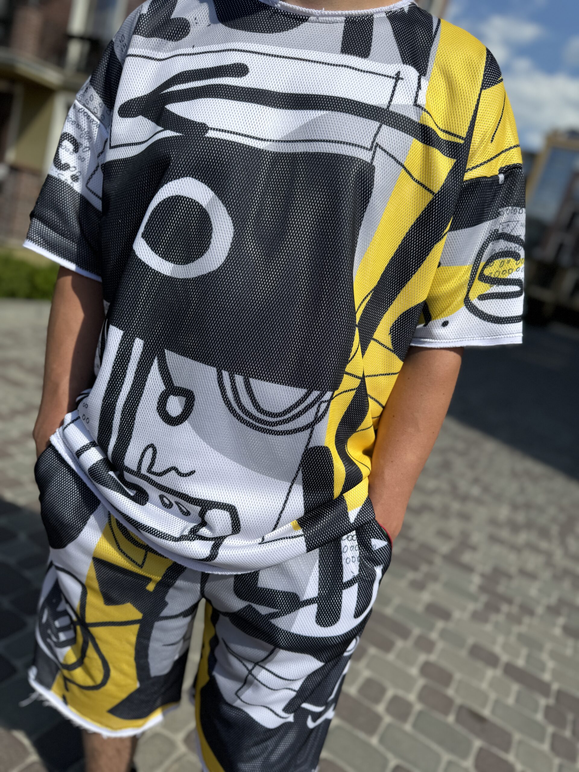 Чоловічий костюм, шорти та футболка, чорний із жовтим
