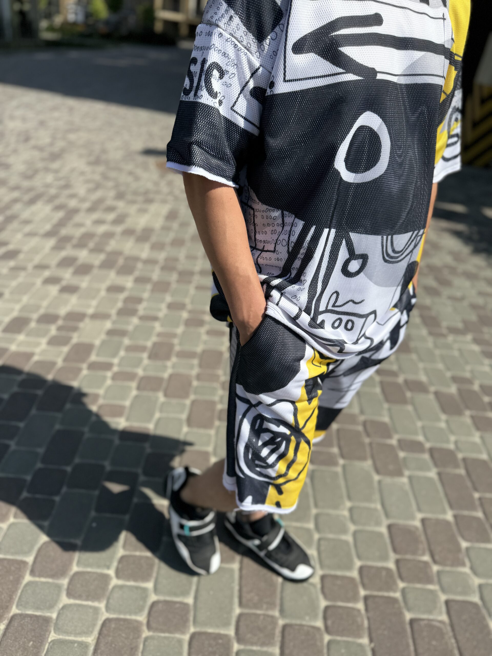 Футболка вільного крою, довжина  75 см, шорти із кишенями, вільний крій, на резинці, довжина від поясу 60 см