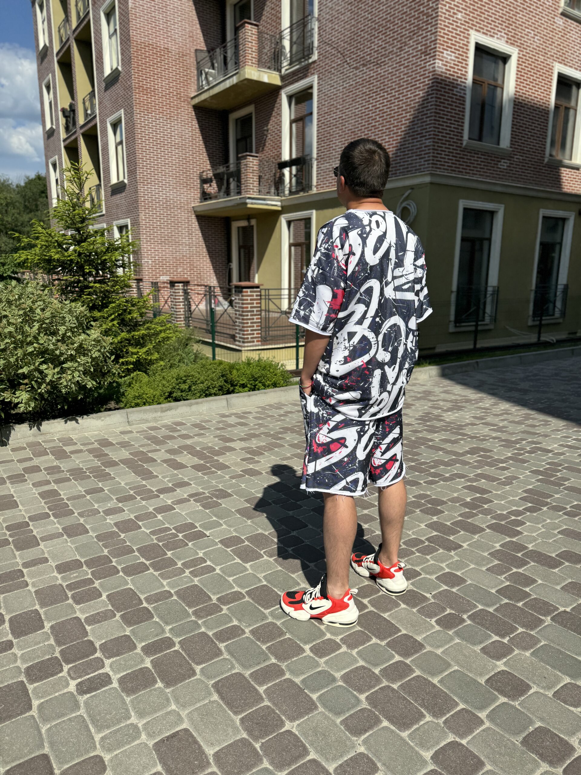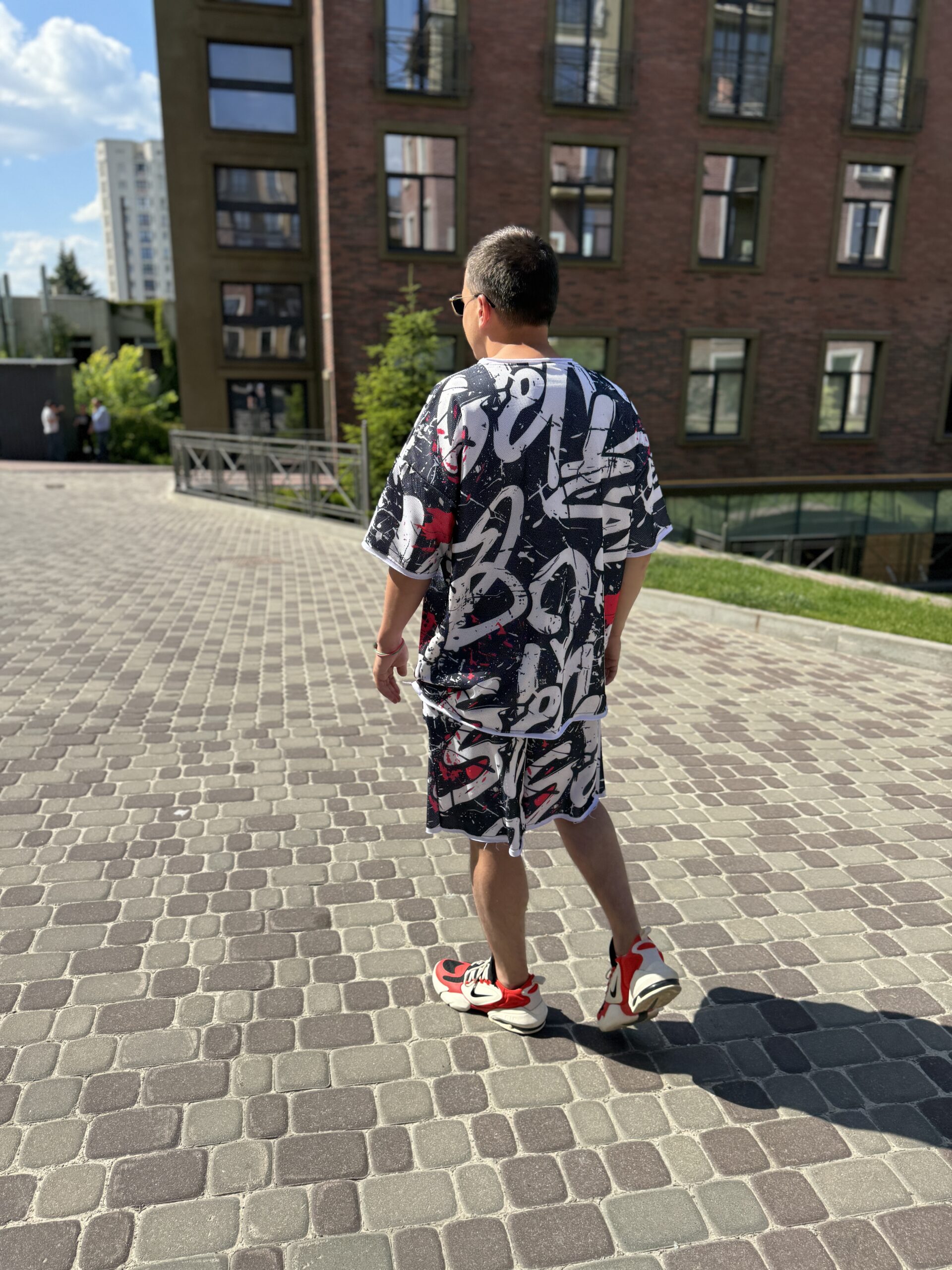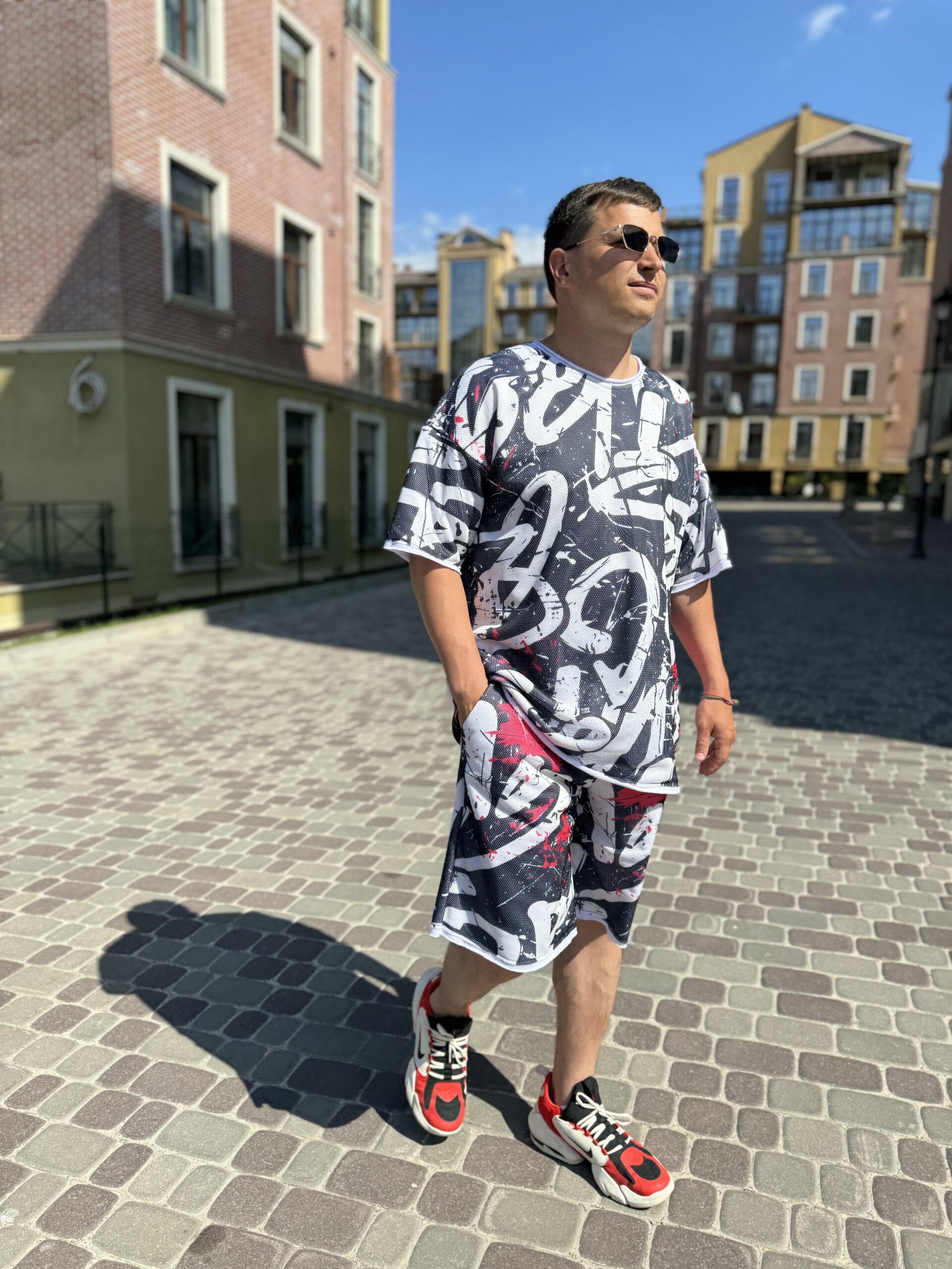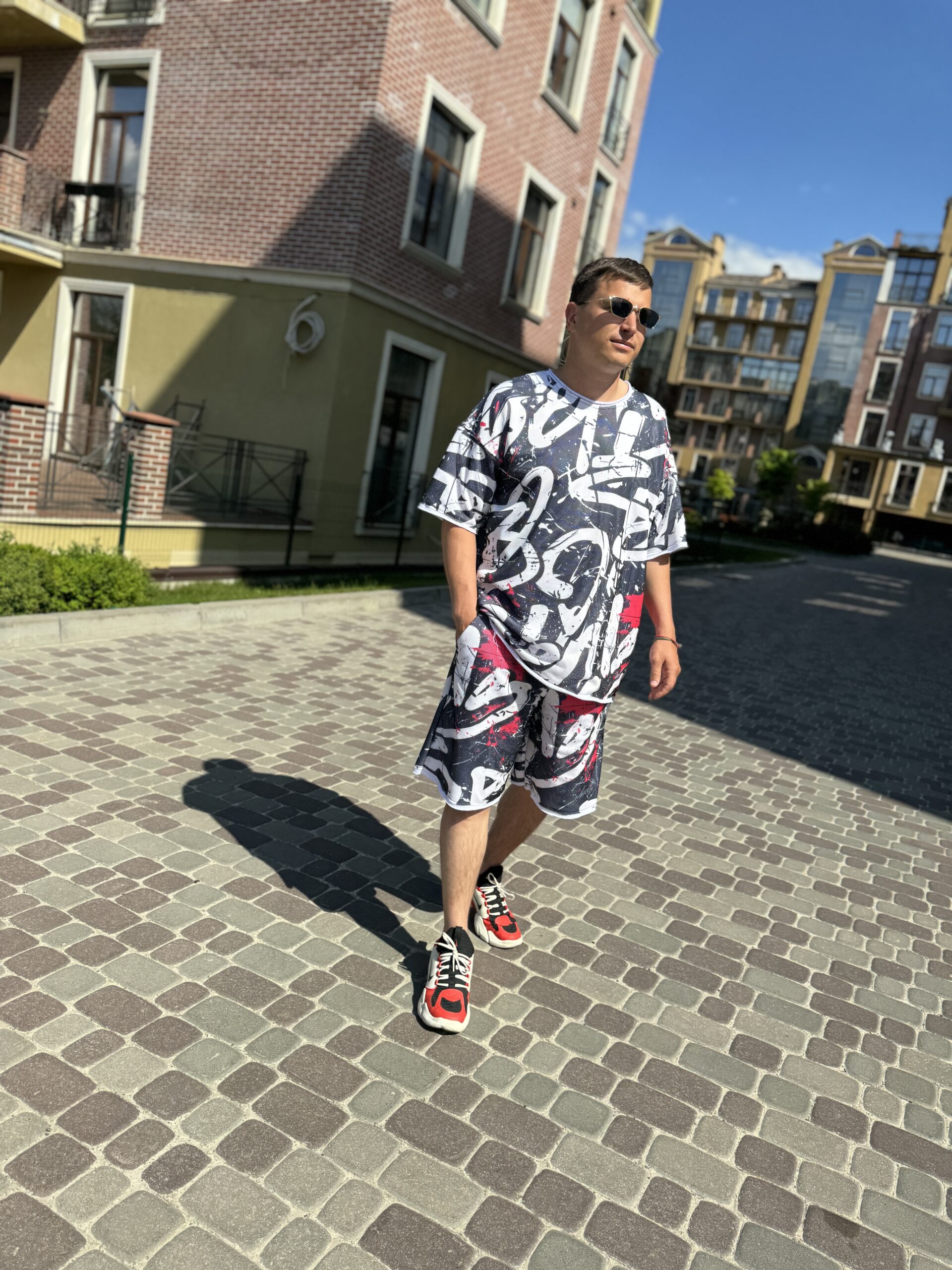 Футболка вільного крою, довжина 75 см, шорти із кишенями, вільний крій, на резинці, довжина від поясу 60 см