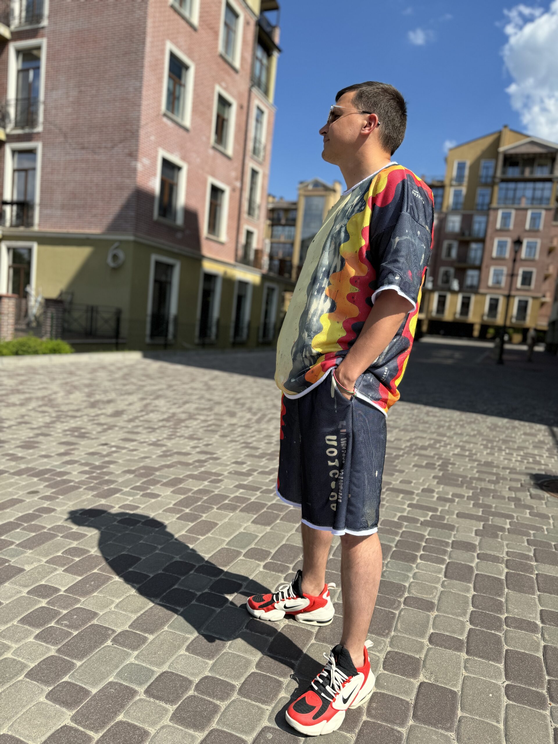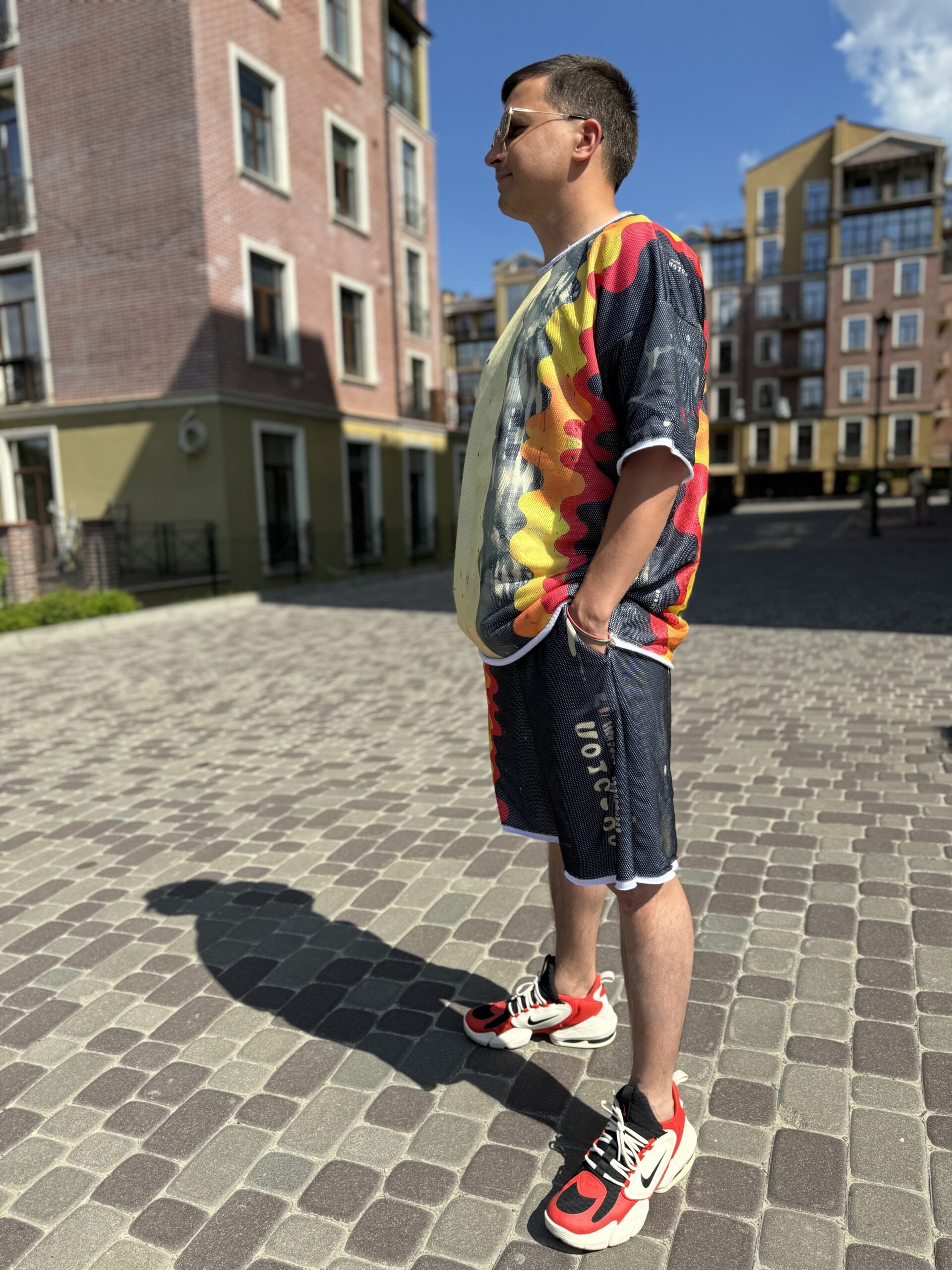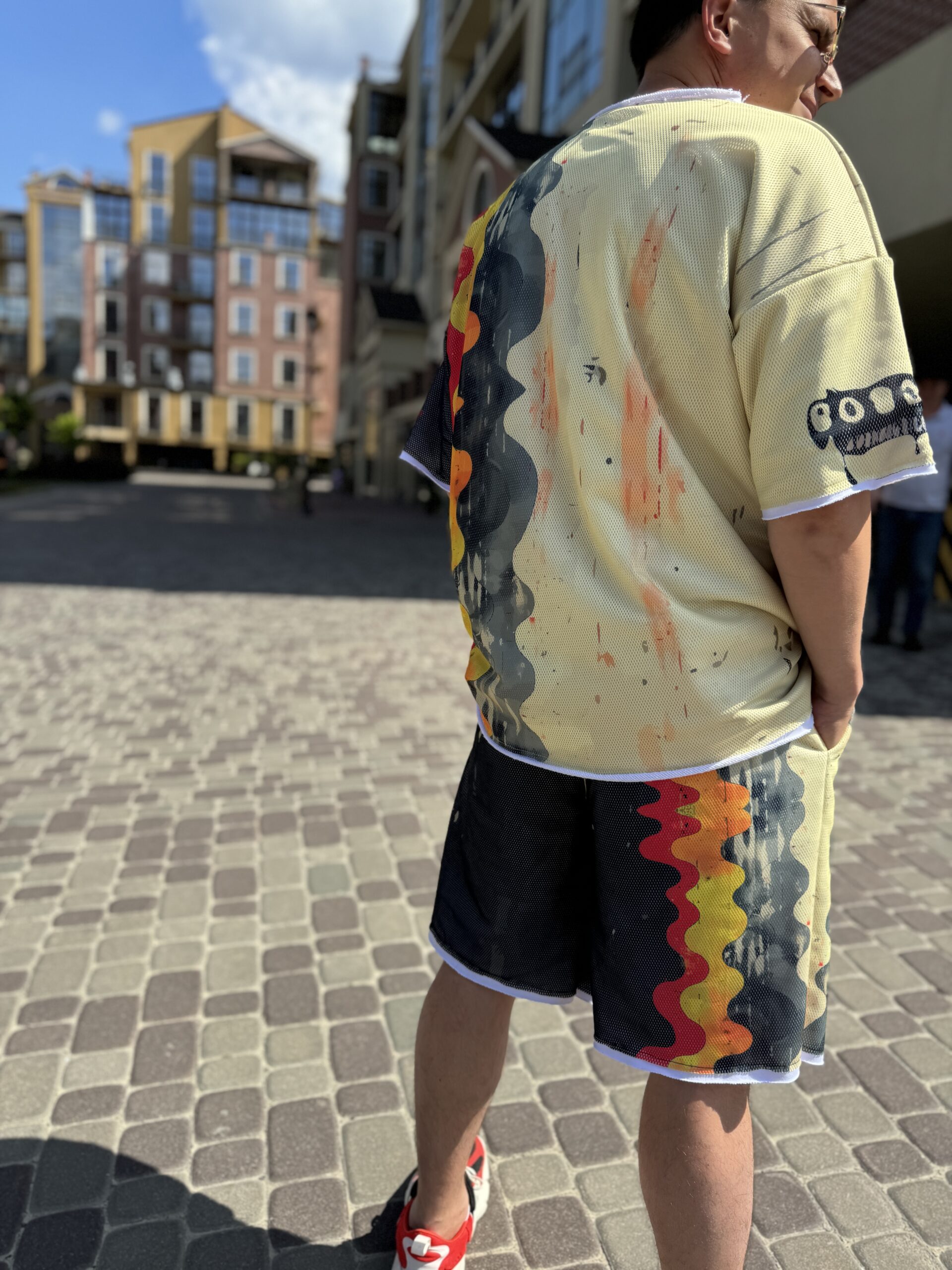 Футболка вільного крою, довжина  75 см, шорти із кишенями, вільний крій, на резинці, довжина від поясу 60 см