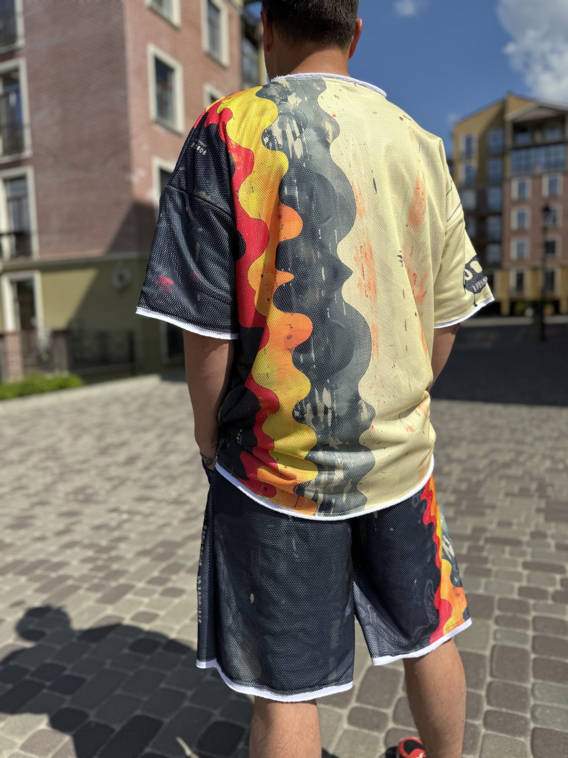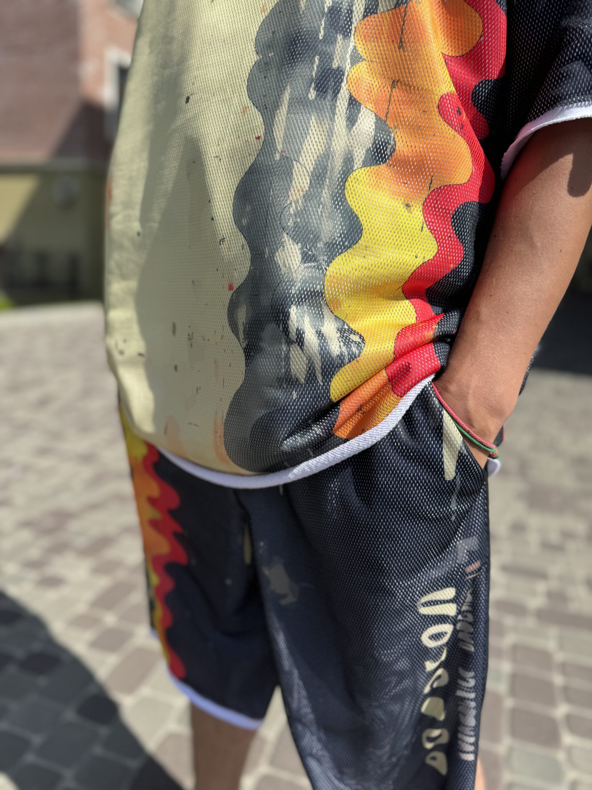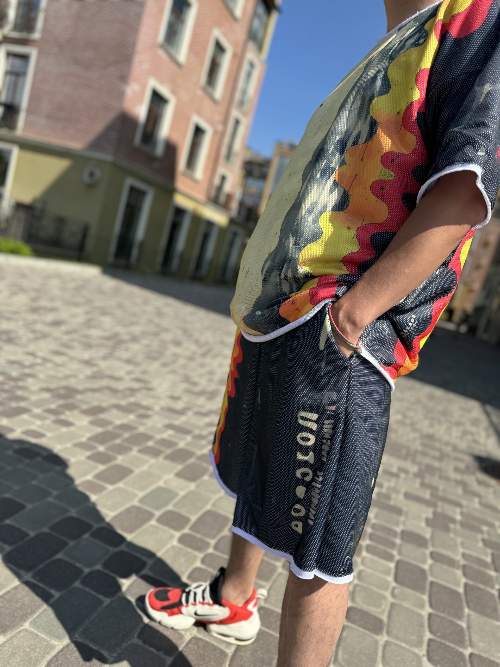 Футболка вільного крою, довжина  75 см, шорти із кишенями, вільний крій, на резинці, довжина від поясу 60 см