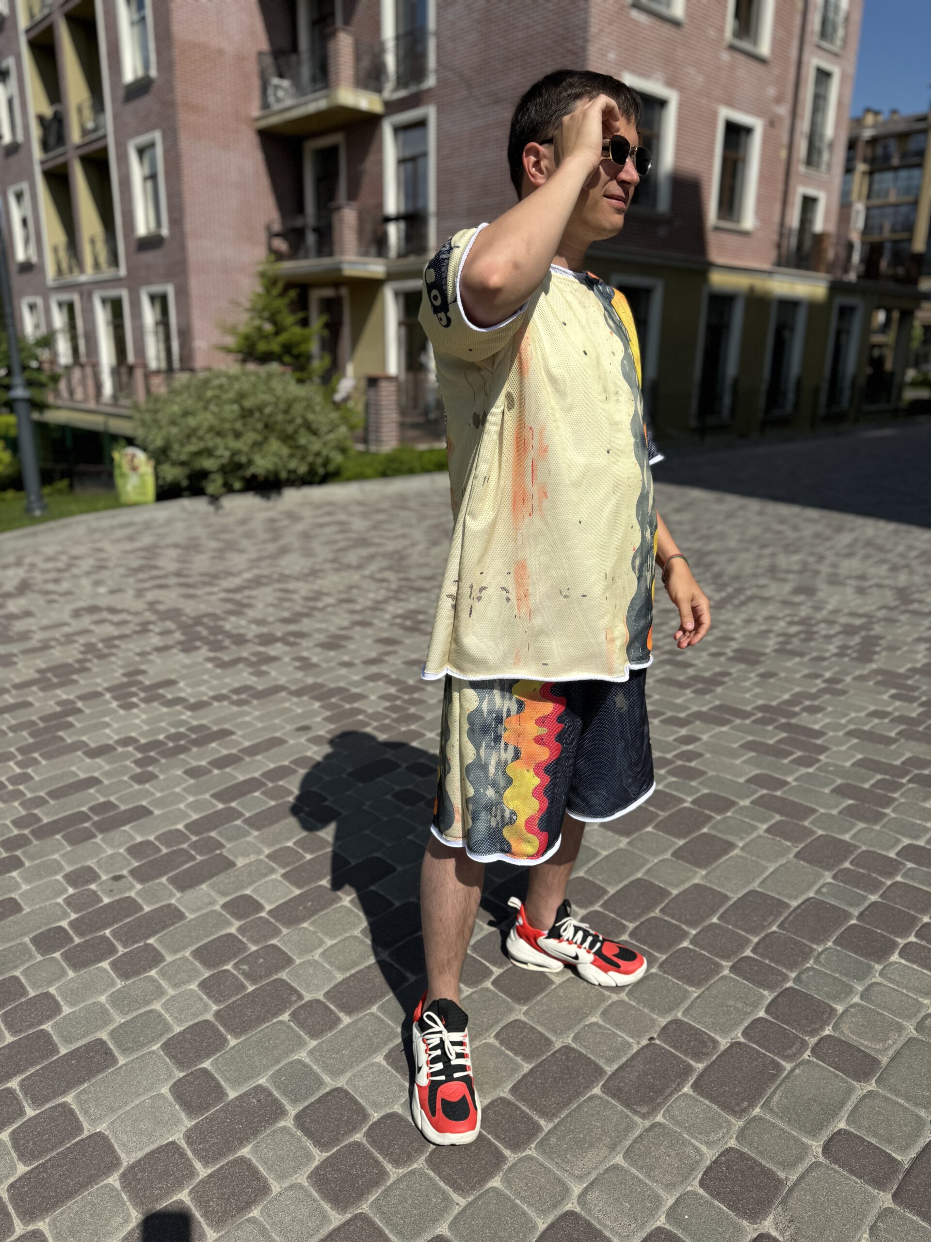 Костюм із бавовняної тканини в поєднанні із сіткою, це означає, що до тіла натуральна тканина, приємна, мʼяка, дихає, але коліна не витягнуться, костюм не буде кошлатитись і всі інші неприємностей які повʼязані із натуральними тканинами – НЕ БУДЕ