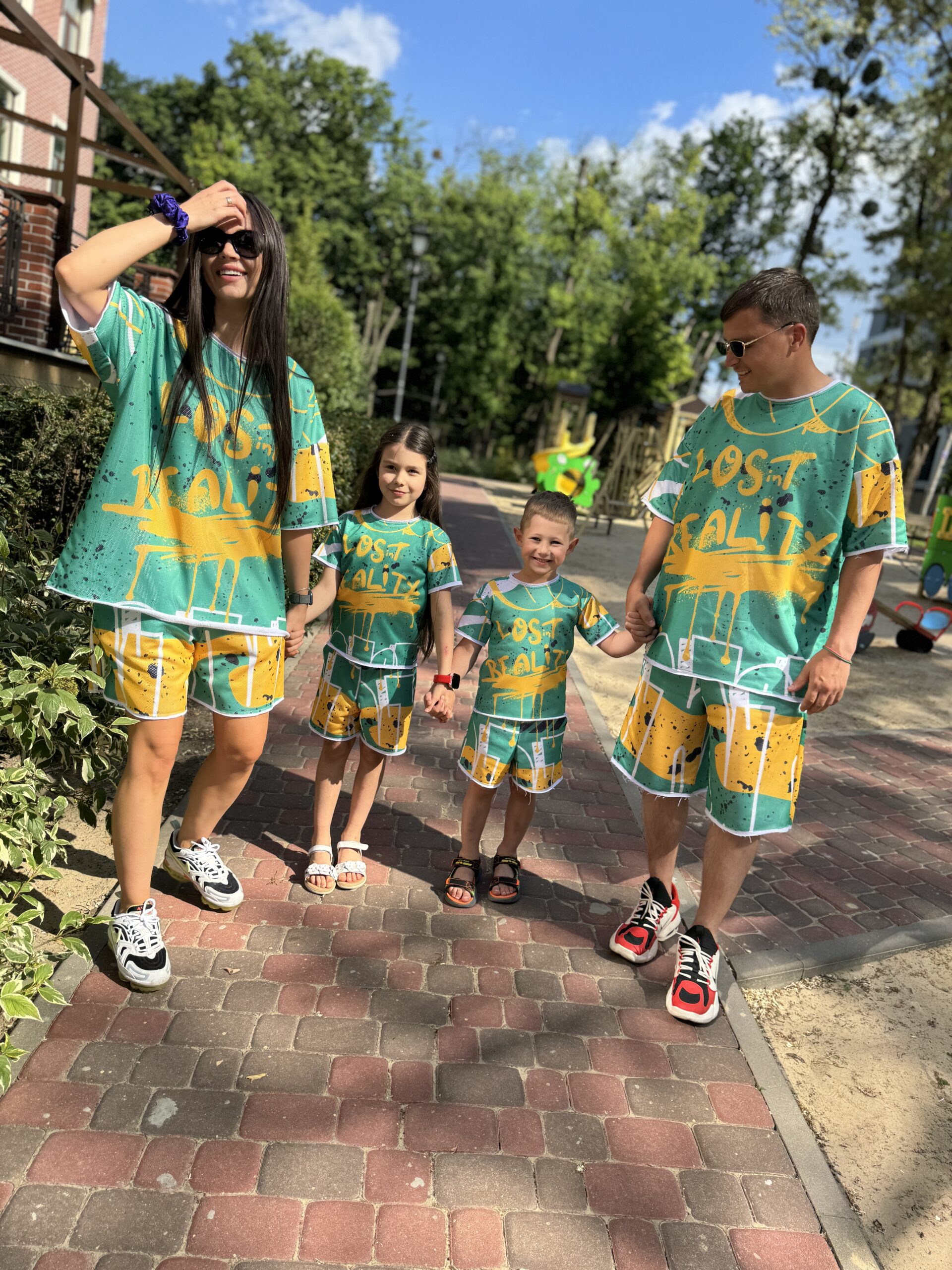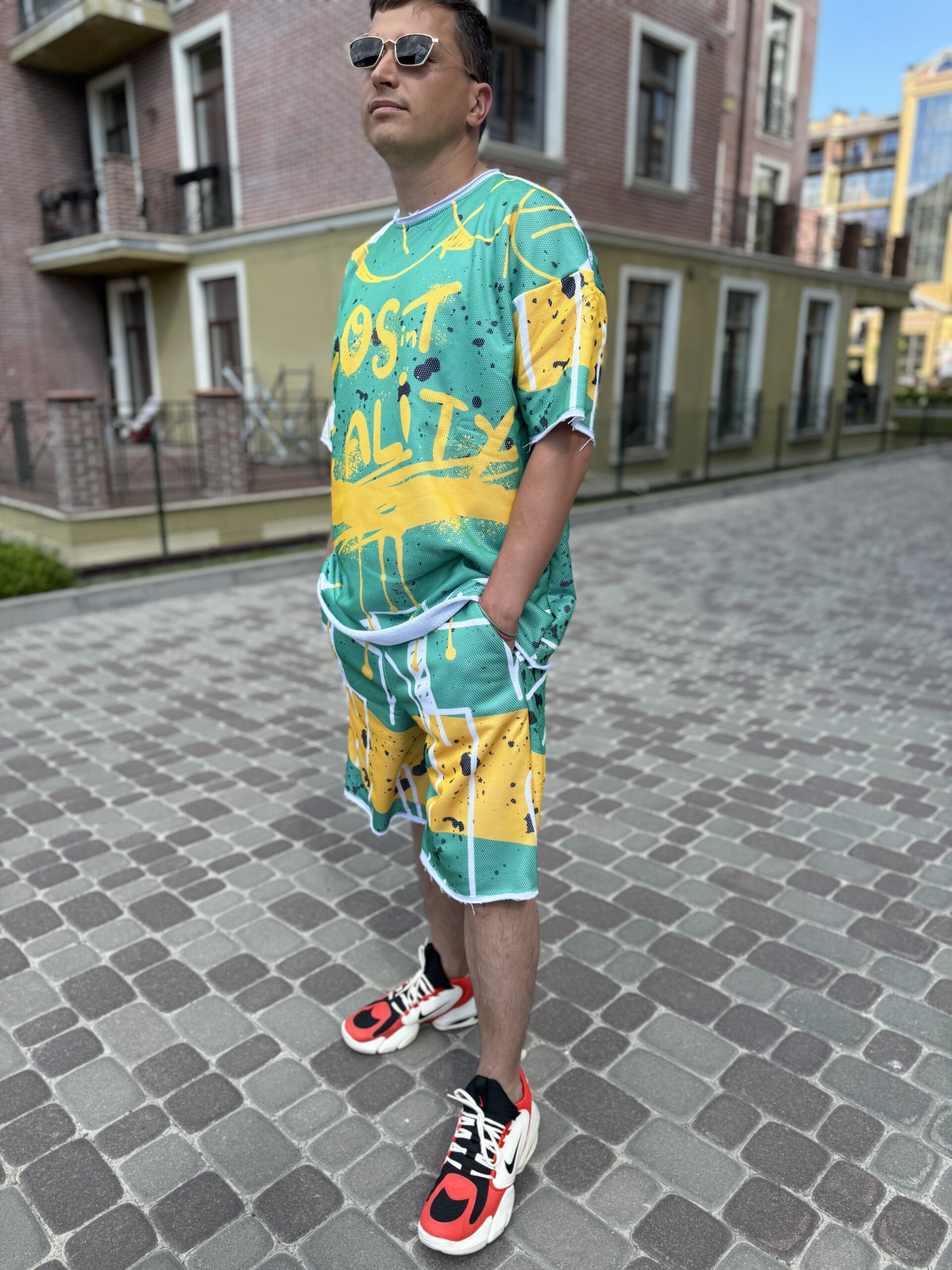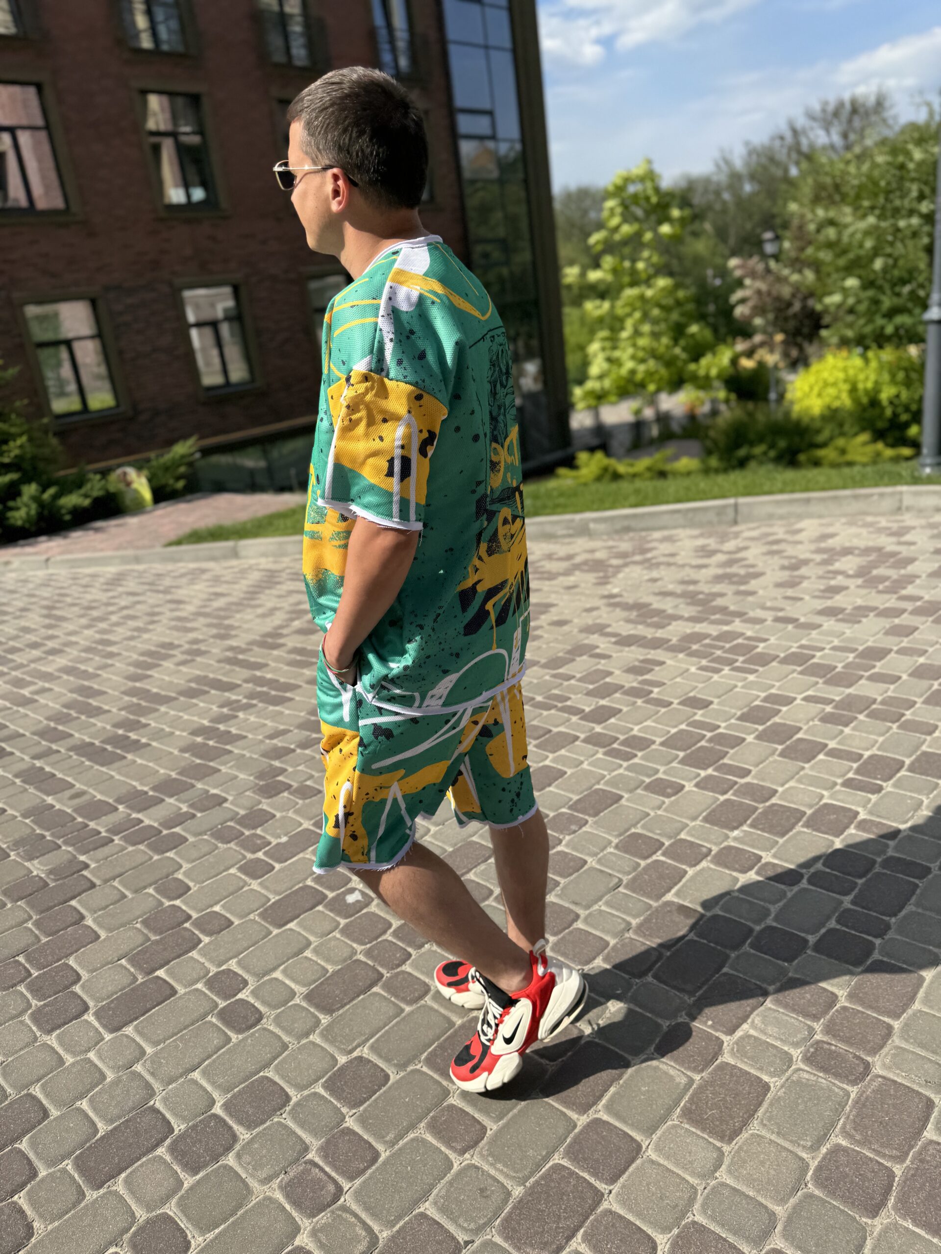 Футболка вільного крою, довжина 75 см, шорти із кишенями, вільний крій, на резинці, довжина від поясу 60 см