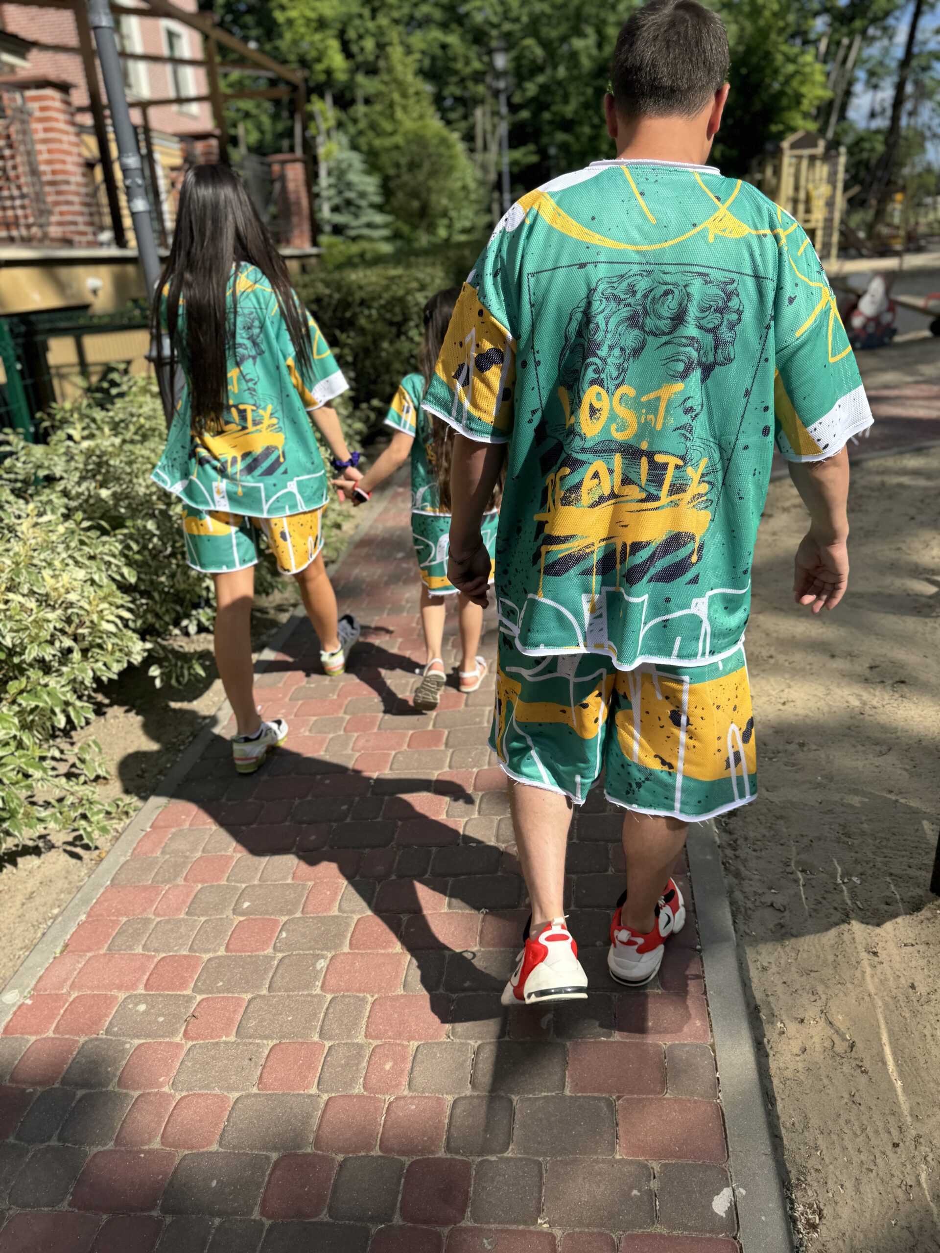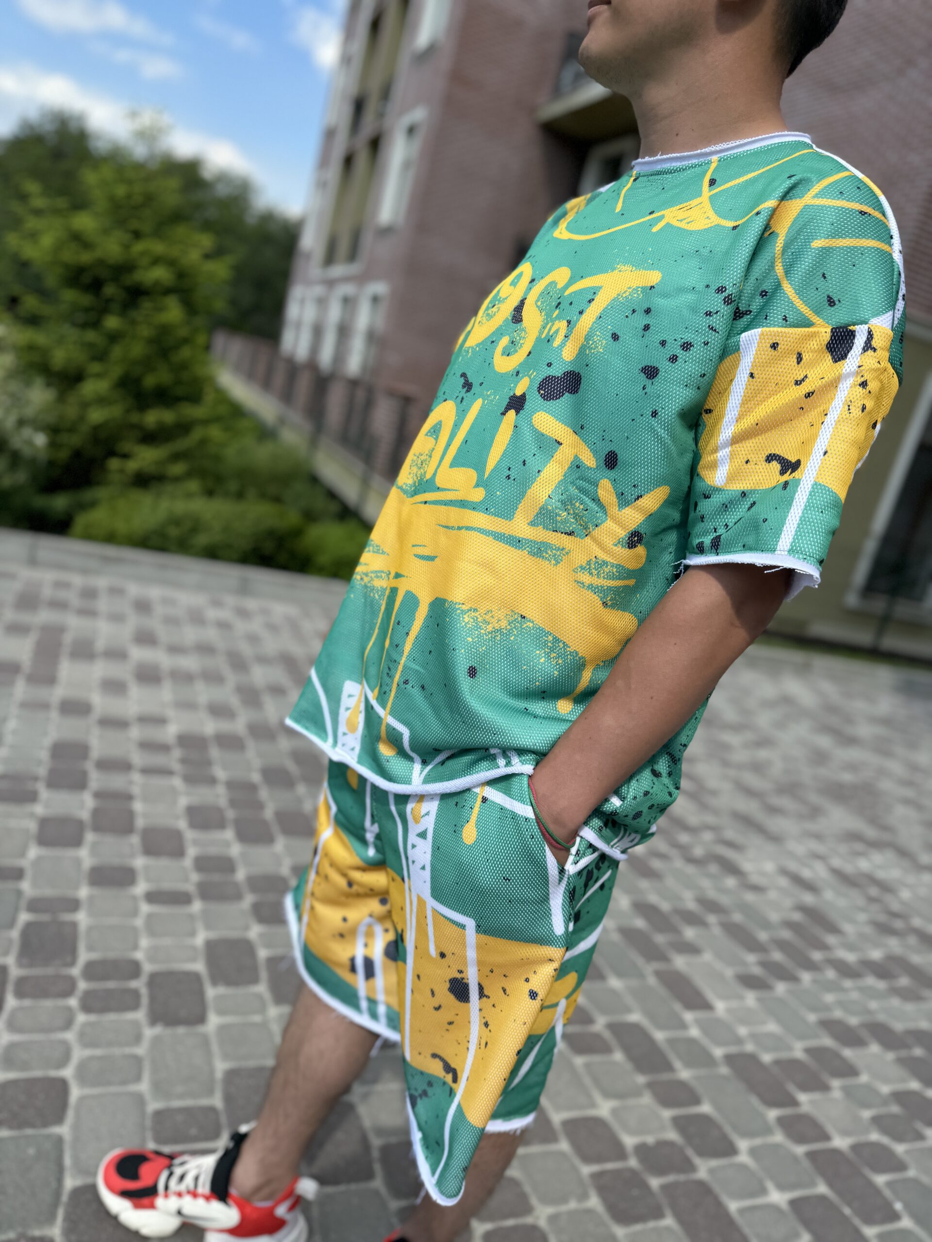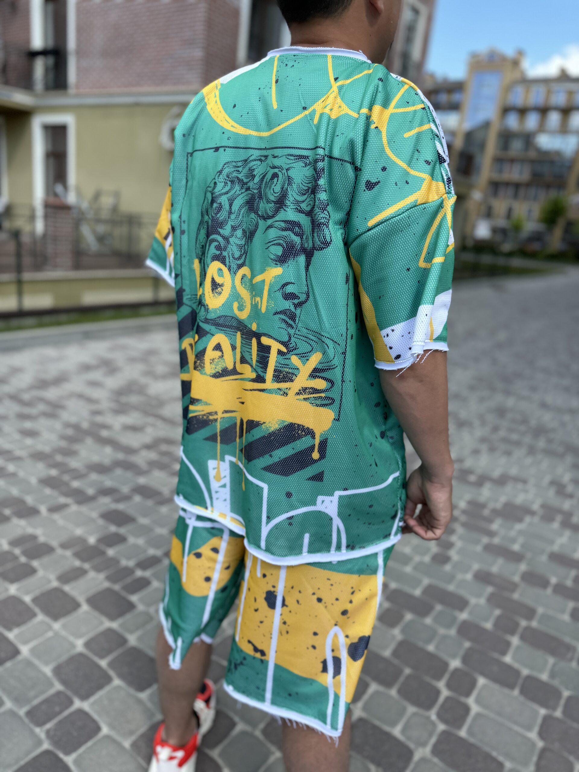 Футболка вільного крою, довжина 75 см, шорти із кишенями, вільний крій, на резинці, довжина від поясу 60 см