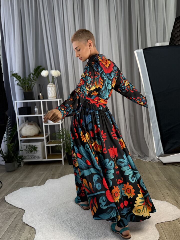 Мабуть ти шукаєш: довга сукня, сукня зі шлейфом, літня сукня максі, елегантна сукня, сукня з поясом, легка сукня, дизайнерська сукня, жіноча сукня з рукавом, сукня з авторським принтом, сукня для прогулянок і подій