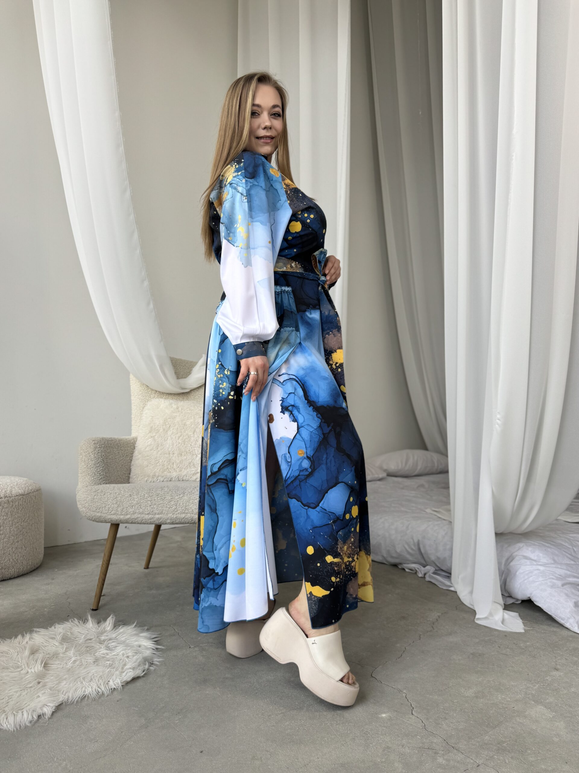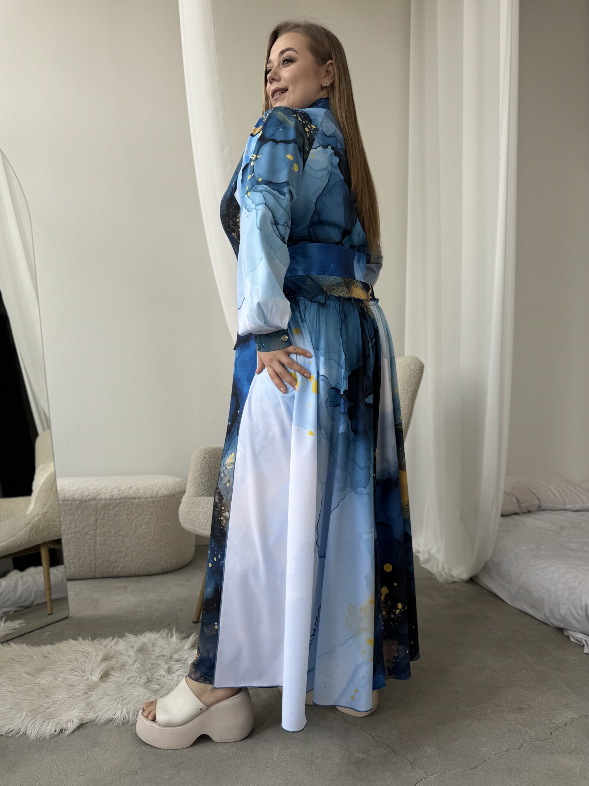 Мабуть ти шукаєш: довга сукня, сукня зі шлейфом, літня сукня максі, елегантна сукня, сукня з поясом, легка сукня, дизайнерська сукня, жіноча сукня з рукавом, сукня з авторським принтом, сукня для прогулянок і подій