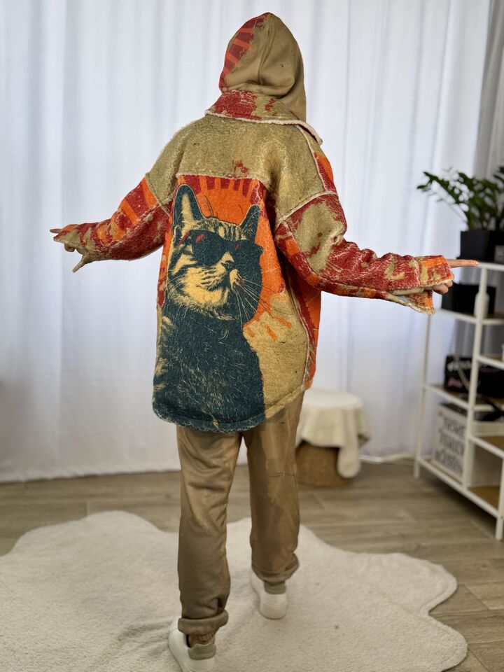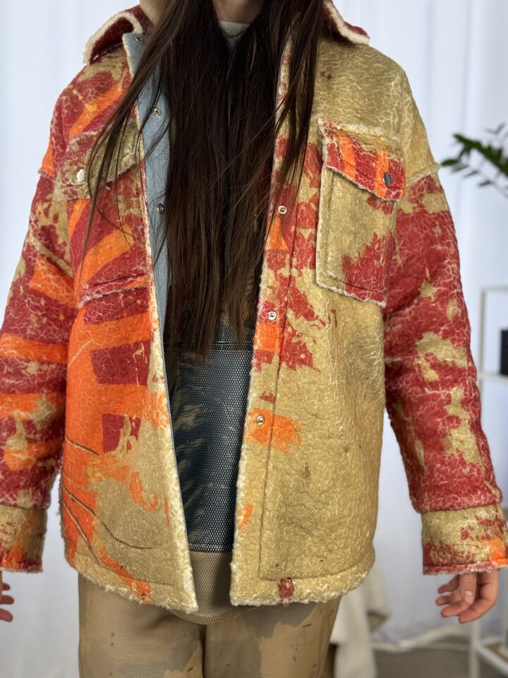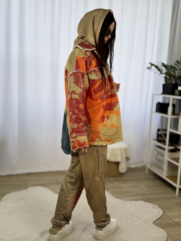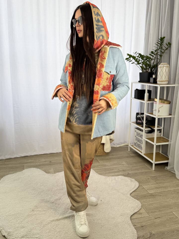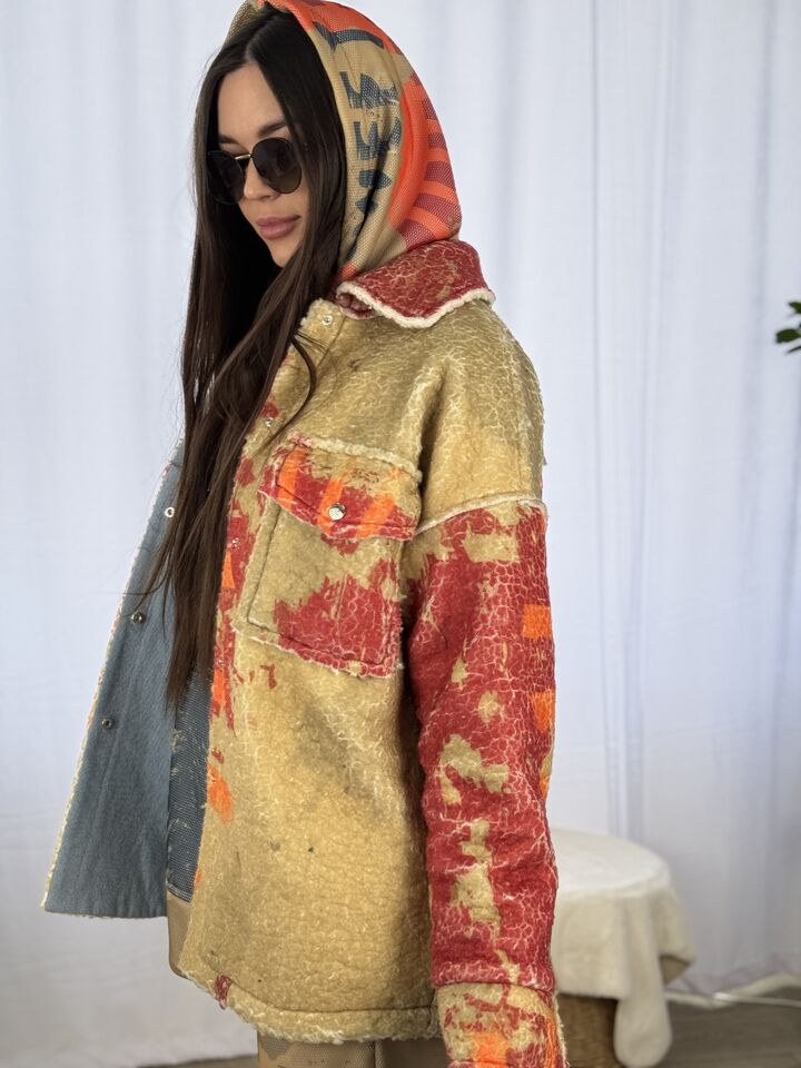 Прямий крій – комфортний, не сковує рухів, завдяки двосторонній конструкції Ви отримуєте дві речі в одній, одна сторона принтоване хутро тедді, яке виглядає неординарно, на фоні звичного одягу, інша сторона – практичний джинс, завжди потрібна річ у гардеробі, застібується на кнопки з обох сторін, є накладні кишені, довжина сорочки по спинці від вороту – 77 см, довжина рукава від горловини – 75 см, температурний режим: до +5°C — чудовий варіант на весну чи осінь!