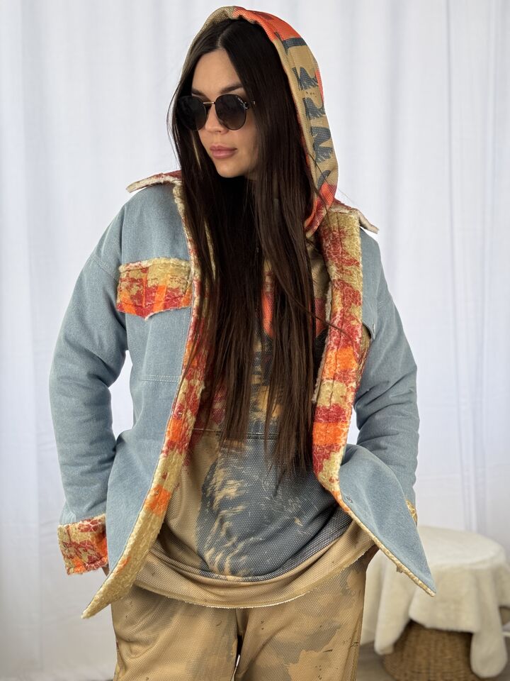 Двостороння джинсова сорочка Barva Lab — це стильна альтернатива куртці або жакету, з одного боку — мʼяке хутро Тедді з авторським принтом, з іншого — джинс у базовому кольорі. Функціональна, незвичайна, практична – вона стане улюбленецею у твоєму гардеробі!