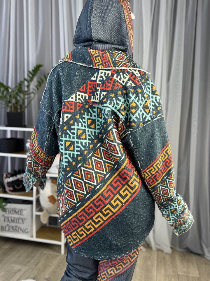 Прямий крій – комфортний, не сковує рухів, завдяки двосторонній конструкції Ви отримуєте дві речі в одній, одна сторона принтоване хутро тедді, яке виглядає неординарно, на фоні звичного одягу, інша сторона – практичний джинс, завжди потрібна річ у гардеробі, застібується на кнопки з обох сторін, є накладні кишені, довжина сорочки по спинці від вороту – 77 см, довжина рукава від горловини – 75 см, температурний режим: до +5°C — чудовий варіант на весну чи осінь!