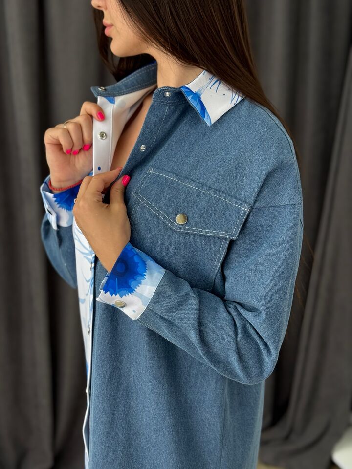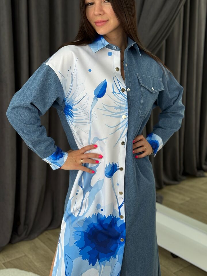 Мабуть ти шукаєш: джинсова сукня-сорочка, жіноча сукня з габардином, сукня з авторським принтом, стильна сорочка-сукня, сукня на кнопках, сукня весна осінь, дизайнерський одяг, унікальна сукня-сорочка, жіночий одяг з джинсу, сукня середньої довжини