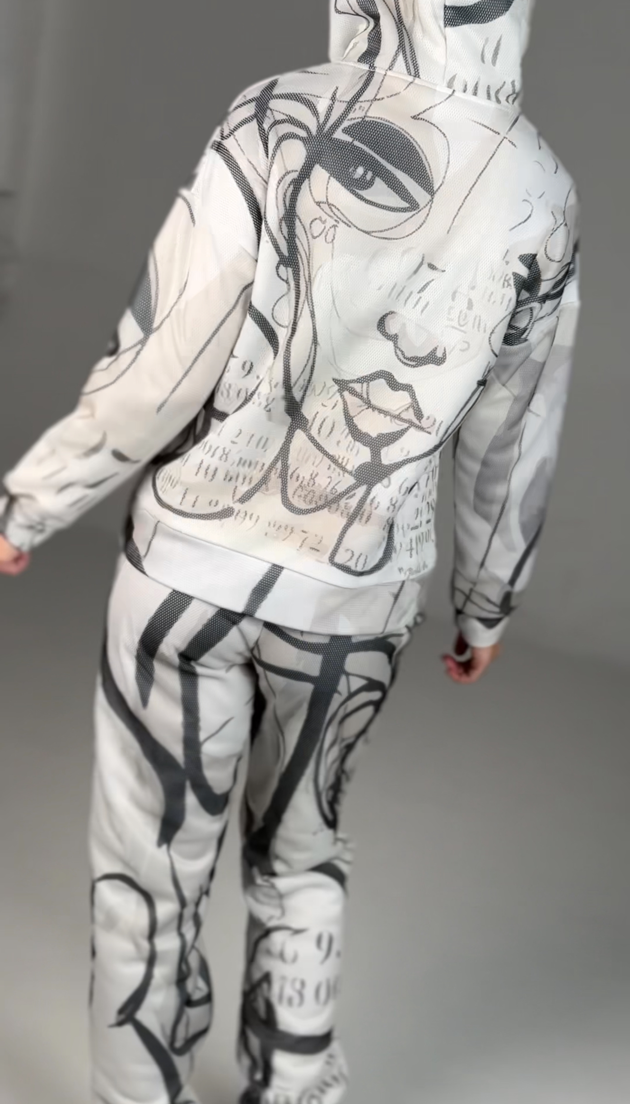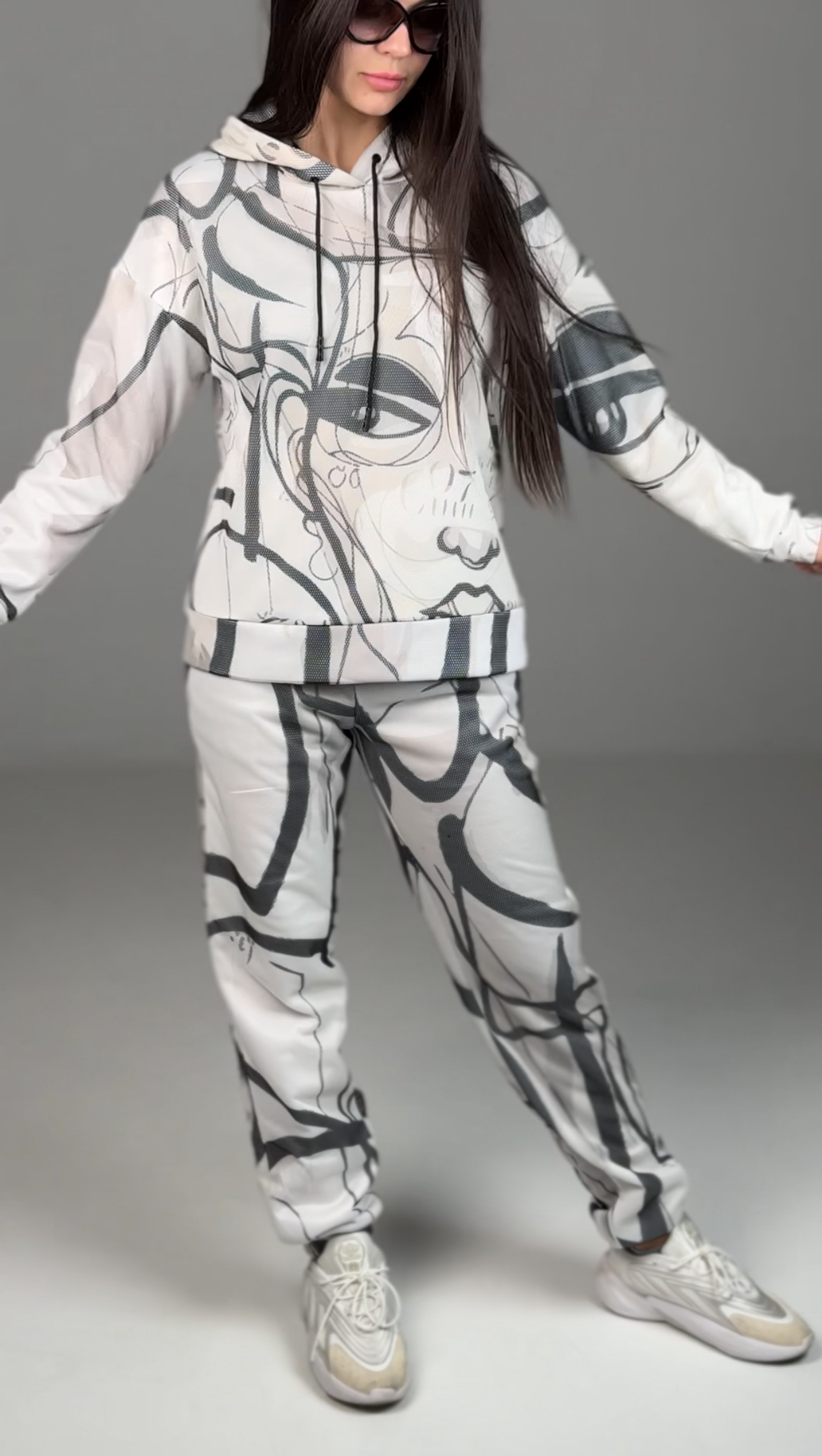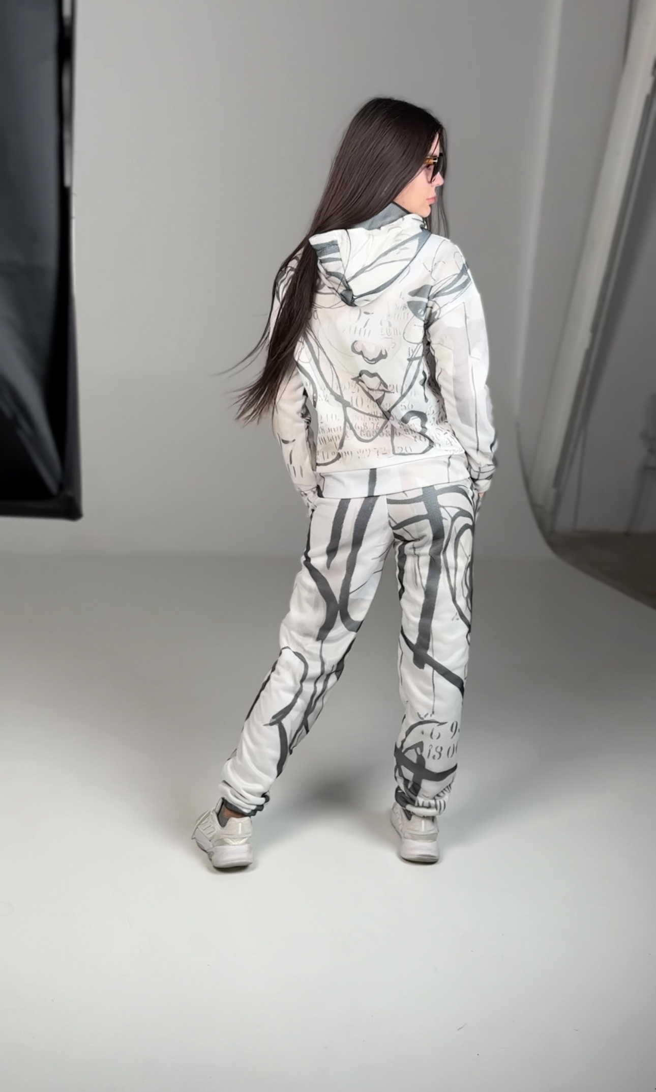 Жіночий флісовий костюм Barva Lab – ідеальний вибір для тих, хто цінує зручність у повсякденному житті, але не готовий поступитися стилем, він поєднує у собі комфорт, свободу рухів і теплоту, а унікальний принт, в будь-якому випадку, наділить тебе особливою увагою від оточуючих!