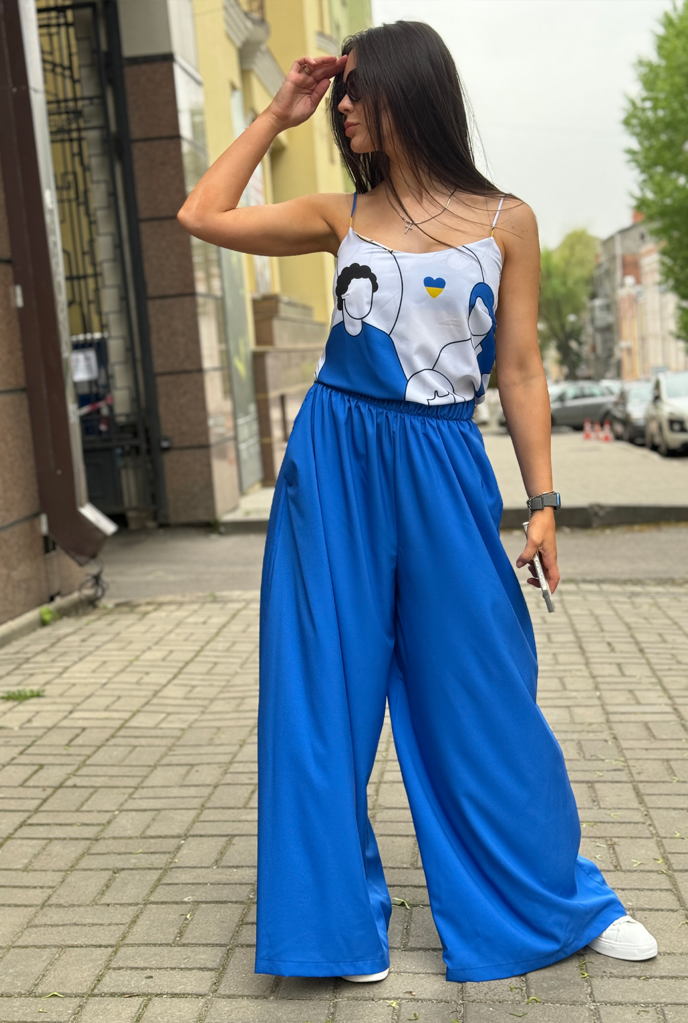 Унікальний жіночий комплект, що складається з брюк, майки на регульованих бретелях і довгої сорочки. Це не просто одяг — це три варіанти стильних образів в одному комплекті: