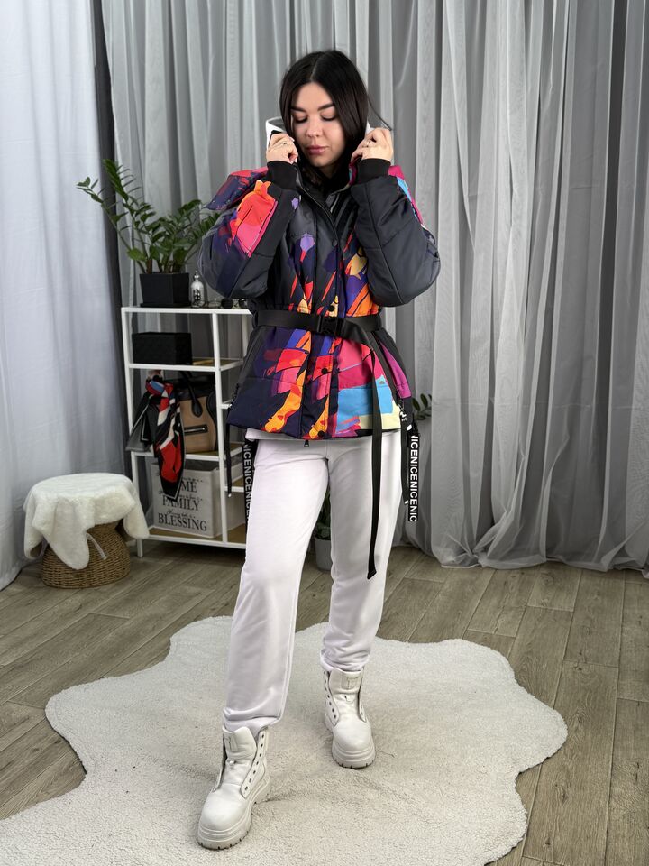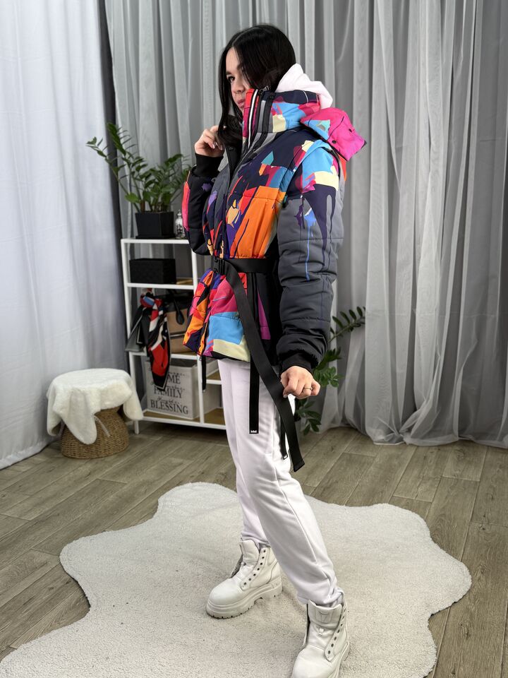 Прямий крій, блискавка двостороння – можна розстібати знизу, зверху планка із кнопками, рукава, на манжетах та відстібаються, капюшон – з’ємний, є бокові розрізи, на блискавках, можна розстібати для зручності при хотьбі, є кишені, пояс у комплекті, який підкреслює талію, всі блискавки прорезинені – захищають від дощу та снігу.  Довжина по переду 64 см, по спинці -74 см, довжина рукава 65 см по зовнішньому шву від плечового шву, це єврозима, температурний режим до -5 градусів.