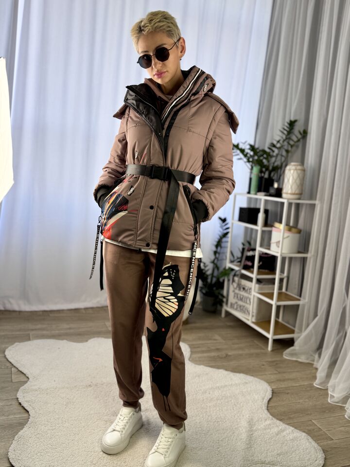 Коротка жіноча куртка-трансформер, єврозима,коричнева