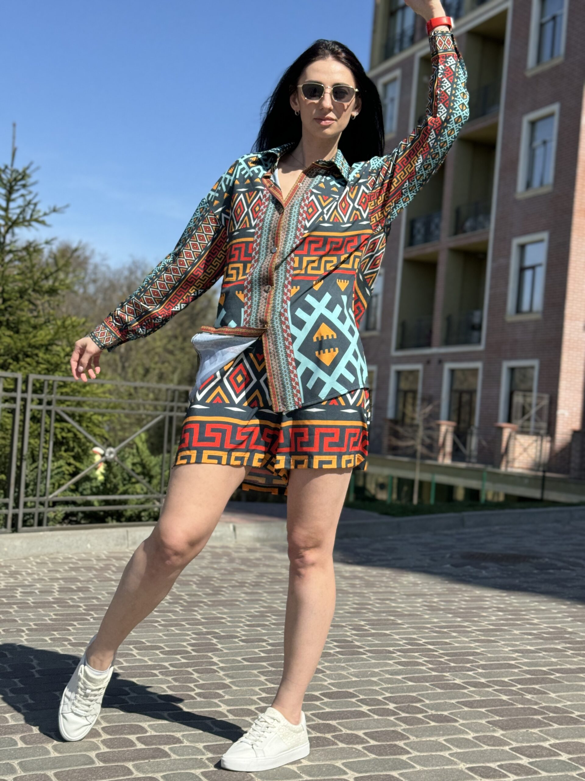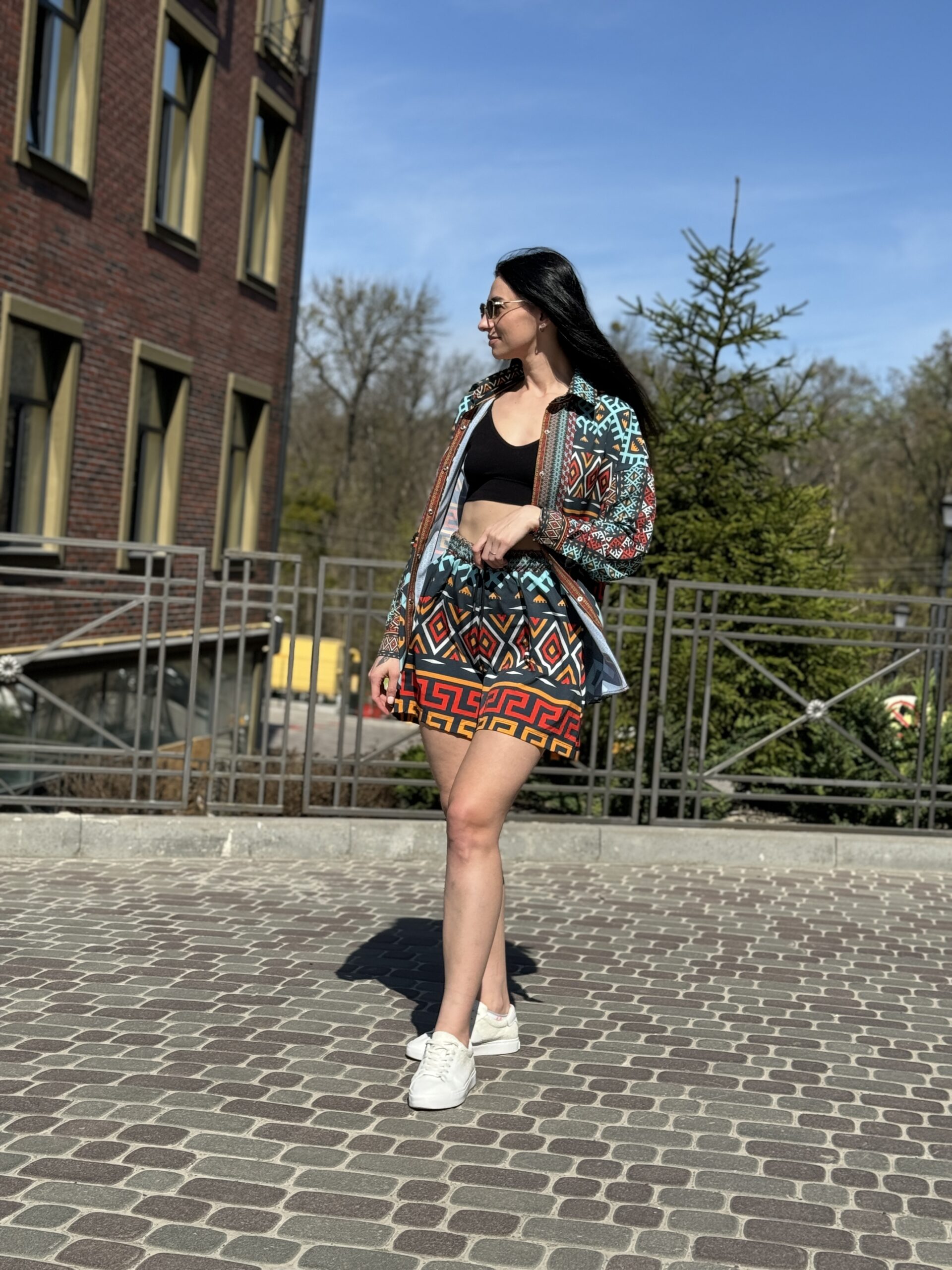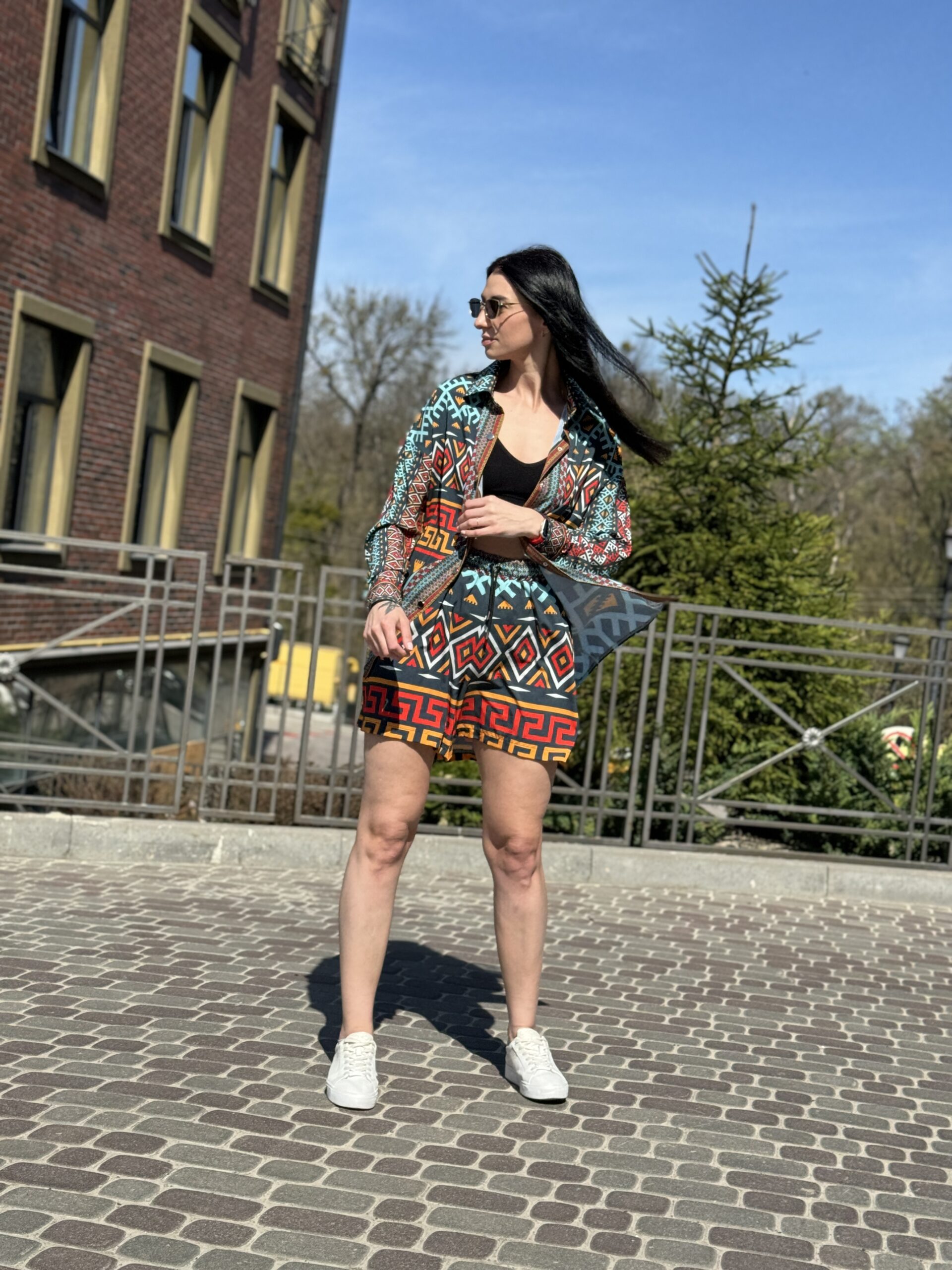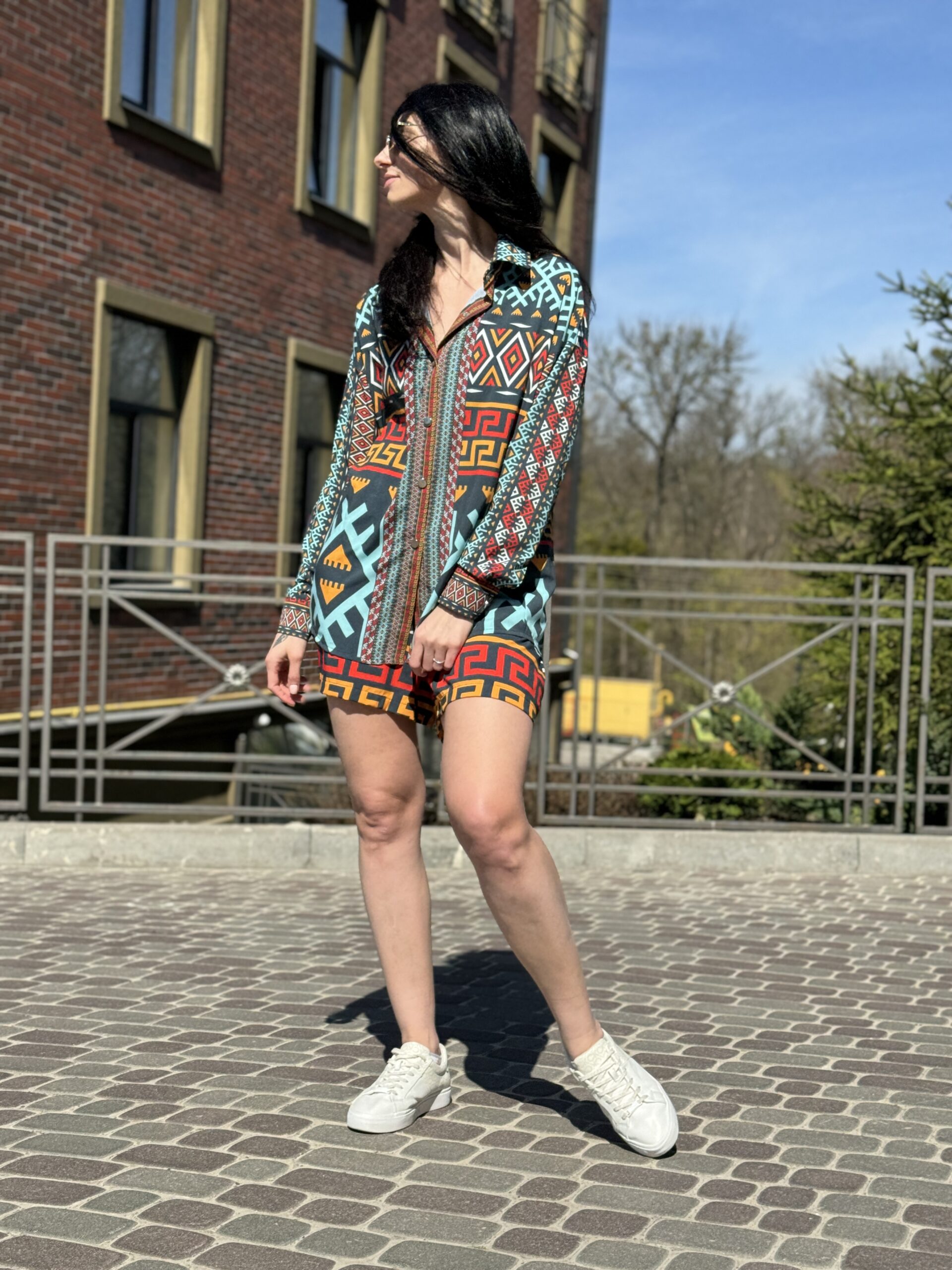 Літній костюм із сорочки та шортів — поєднання легкості, комфорту й актуального дизайну. Ідеально підходить для міських прогулянок, подорожей, відпочинку на природі або стильного повсякденного образу.