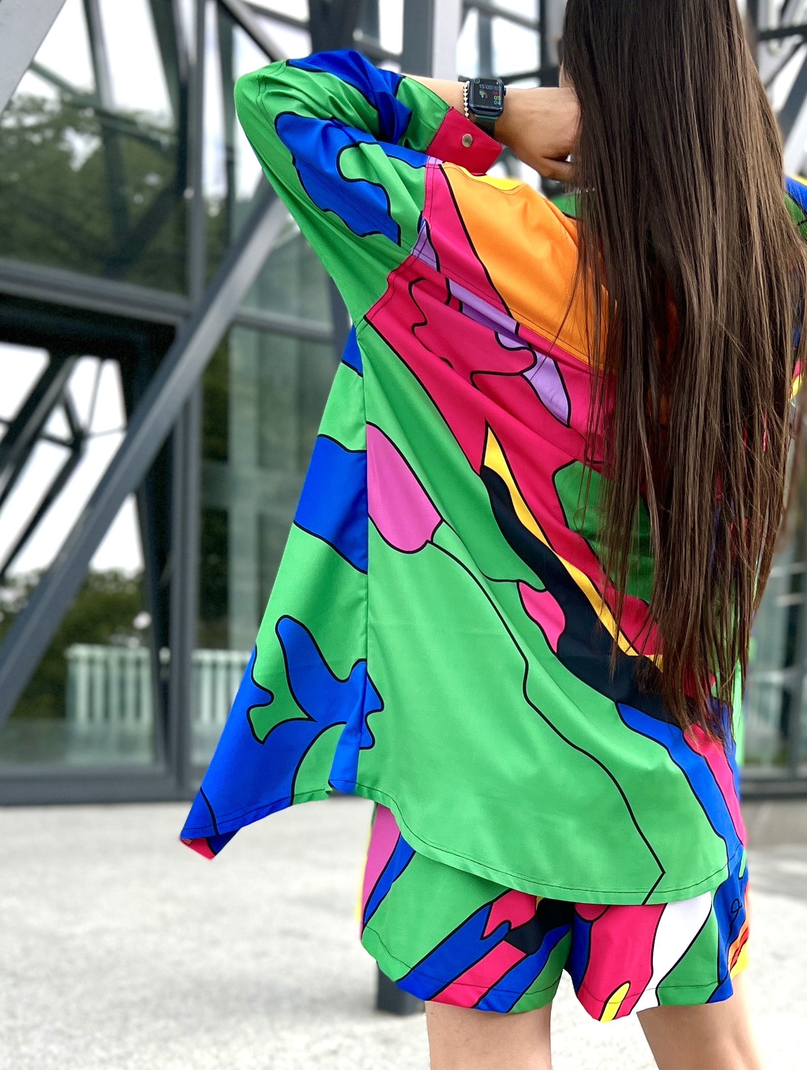 Мабуть ти шукаєш: літній костюм, жіночий костюм з шортами, сорочка з шортами, легкий костюм, віскозний костюм, костюм з авторським принтом, вільний крій, дизайнерський літній одяг, комфортний комплект, модний жіночий образ