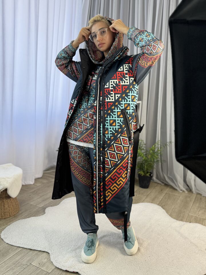 • Матеріал: плащівка • Сезон: єврозима (комфорт до −10°C) • Утеплювач: синтепух 150 г/м² • Капюшон/рукави: відстібаються • Довжина: 114/132 см (перед/спинка) • Догляд: прання 30°
