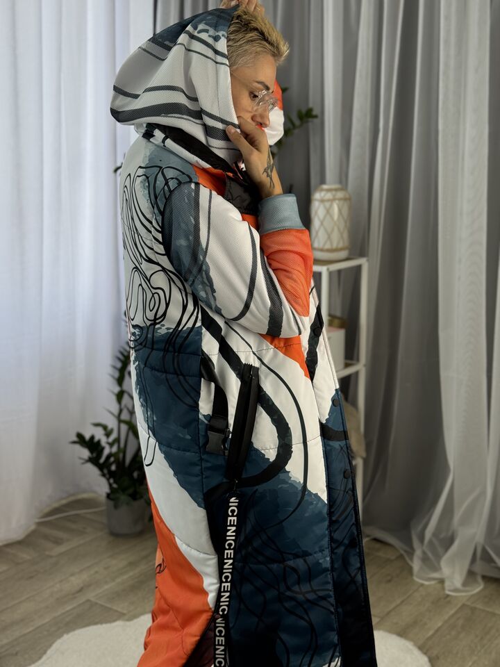 • Матеріал: плащівка • Сезон: єврозима (комфорт до −10°C) • Утеплювач: синтепух 150 г/м² • Капюшон/рукави: відстібаються • Довжина: 114/132 см (перед/спинка) • Догляд: прання 30°