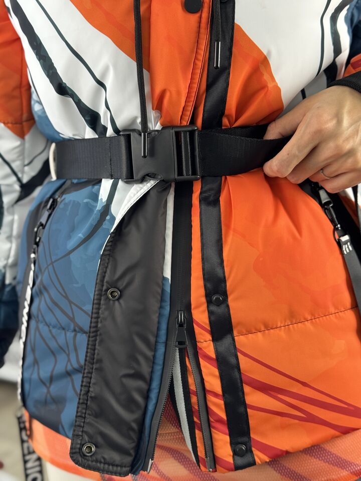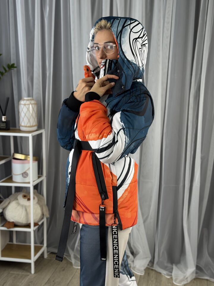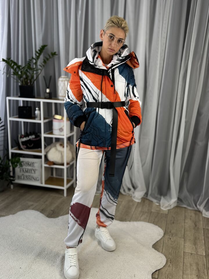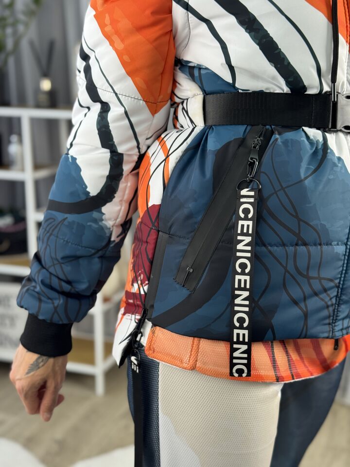 Прямий крій, блискавка двостороння – можна розстібати знизу, зверху планка із кнопками, рукава, на манжетах та відстібаються, капюшон – з’ємний, є бокові розрізи, на блискавках, можна розстібати для зручності при хотьбі, є кишені, пояс у комплекті, який підкреслює талію, всі блискавки прорезинені – захищають від дощу та снігу. Довжина по переду 64 см, по спинці -74 см, довжина рукава 65 см по зовнішньому шву від плечового шву, це єврозима, температурний режим до -5 градусів.