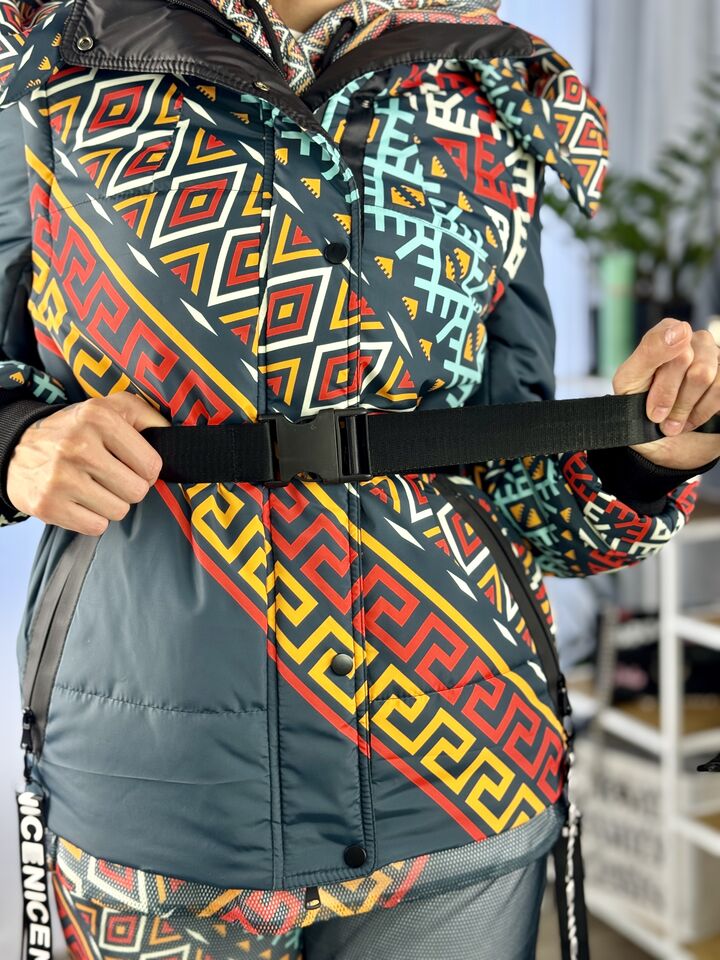 Прямий крій, блискавка двостороння – можна розстібати знизу, зверху планка із кнопками, рукава, на манжетах та відстібаються, капюшон – з’ємний, є бокові розрізи, на блискавках, можна розстібати для зручності при хотьбі, є кишені, пояс у комплекті, який підкреслює талію, всі блискавки прорезинені – захищають від дощу та снігу.  Довжина по переду 64 см, по спинці -74 см, довжина рукава 65 см по зовнішньому шву від плечового шву, це єврозима, температурний режим до -5 градусів.